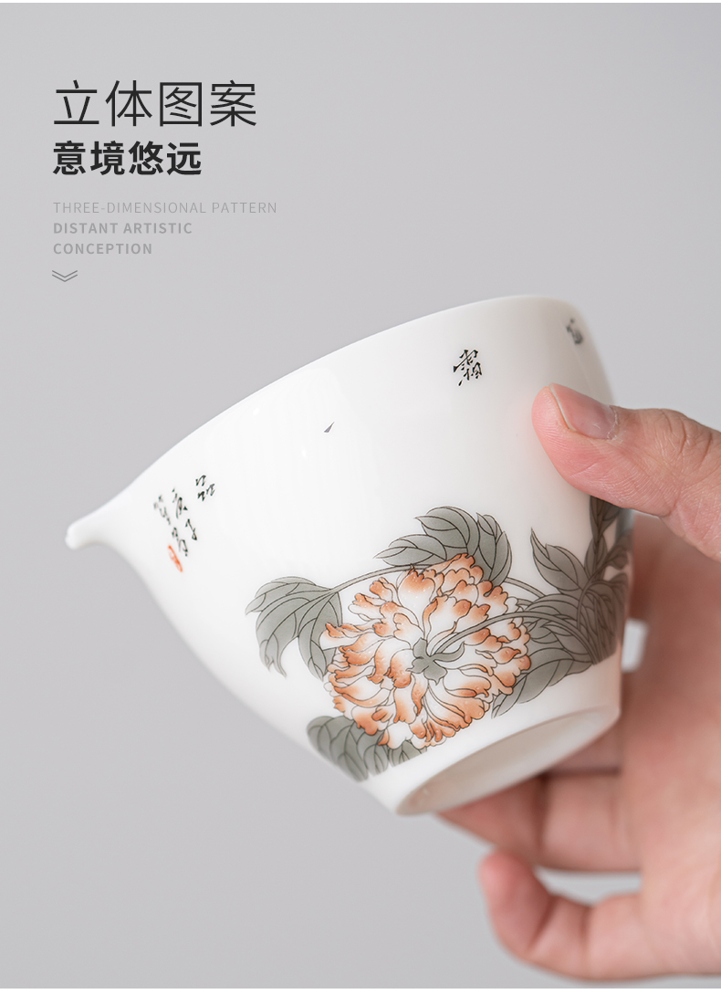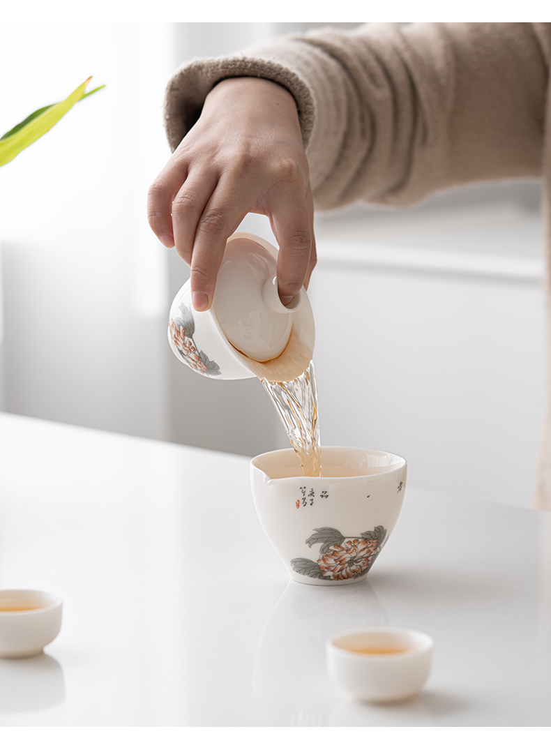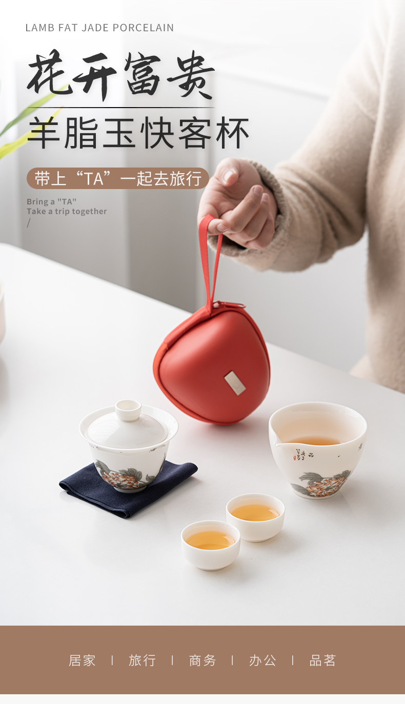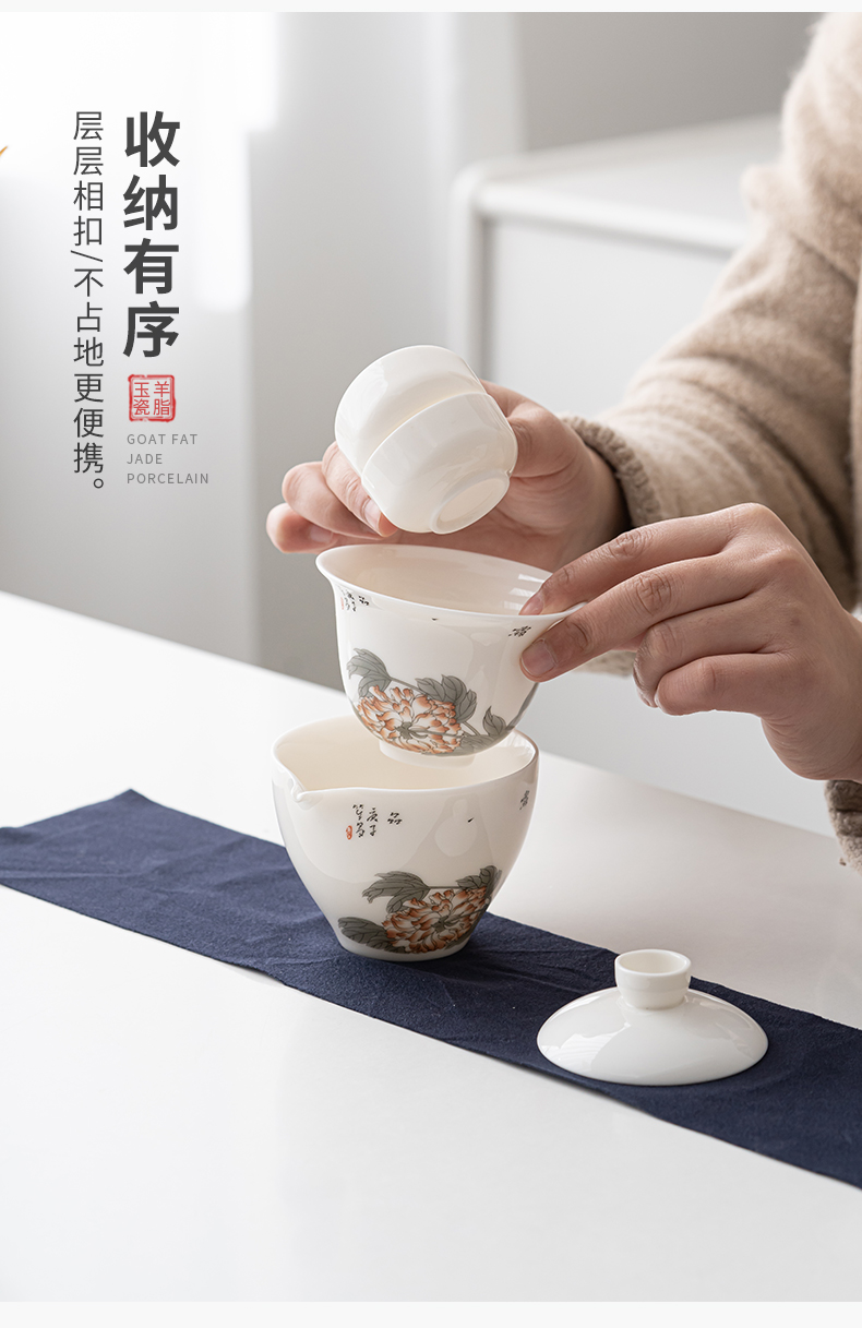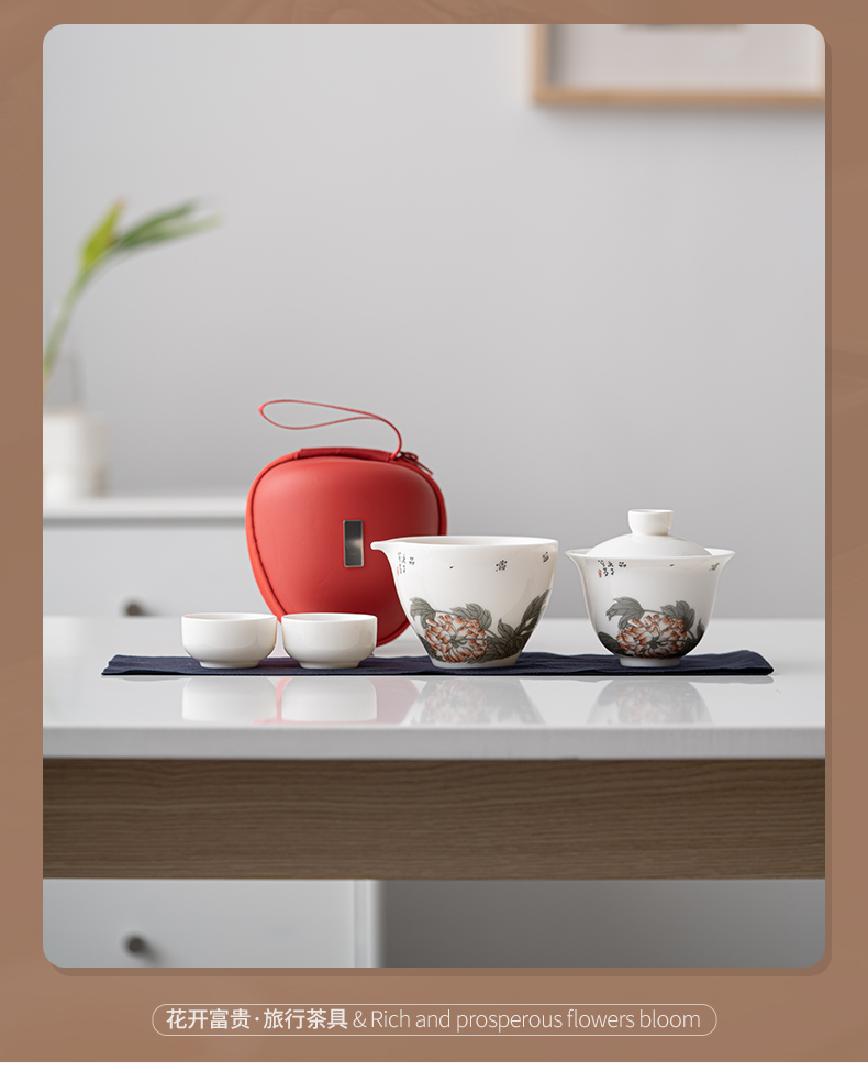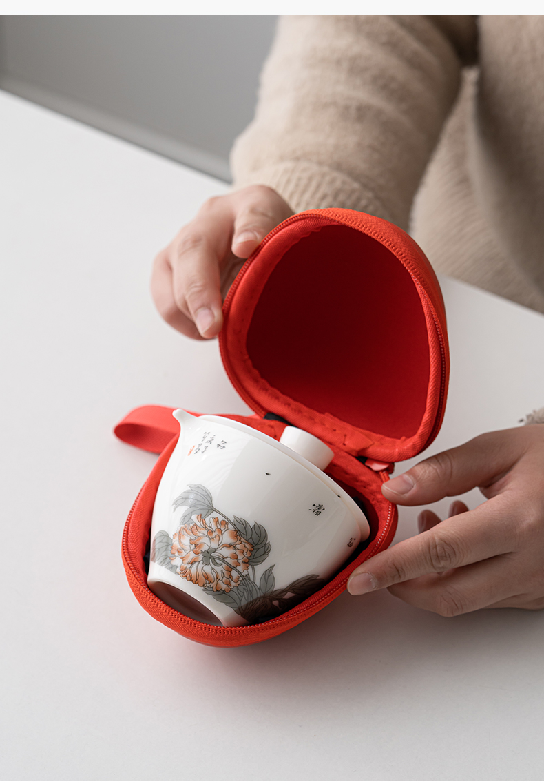 苏氏陶瓷(SUSHI CERAMICS)J0893羊脂玉瓷花开富贵快客杯旅行茶具(单位:套) 白色