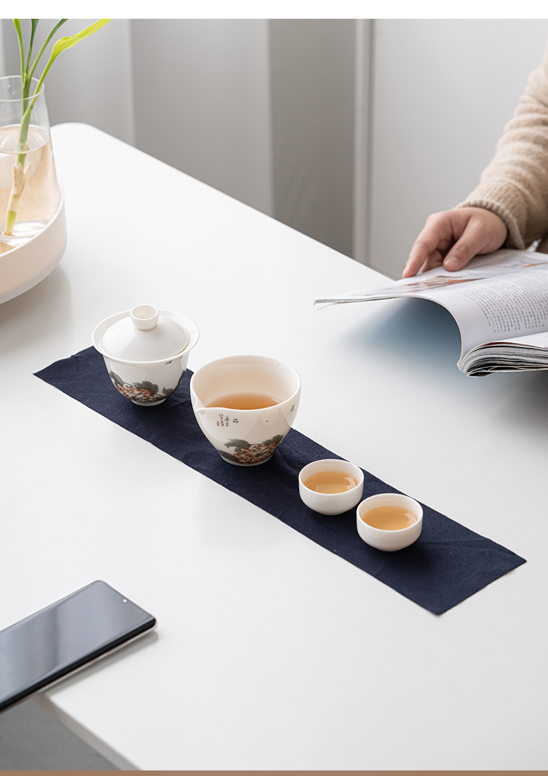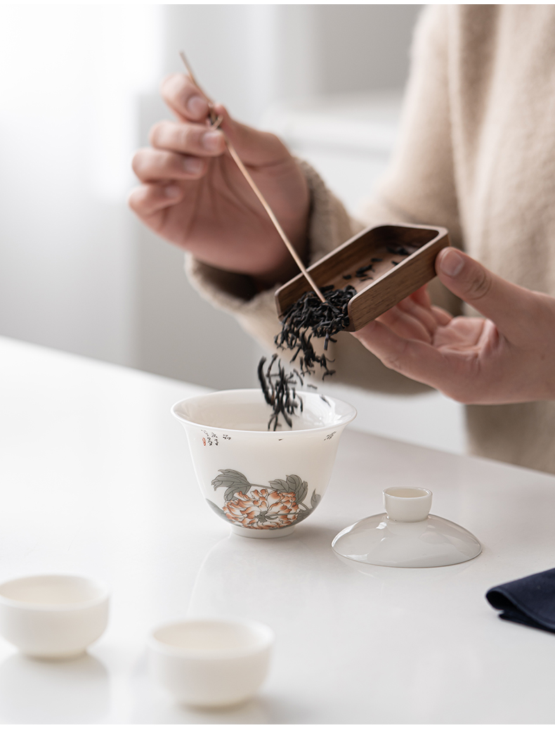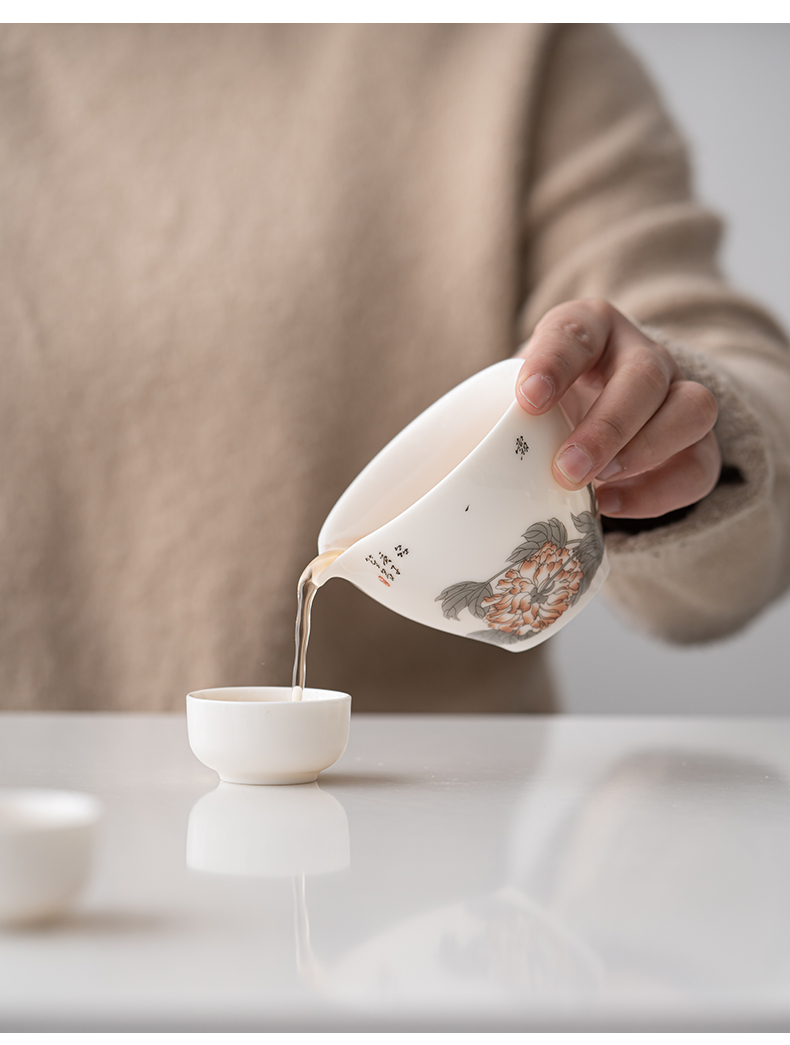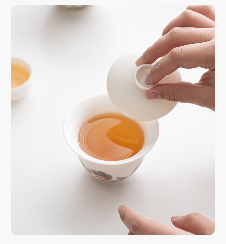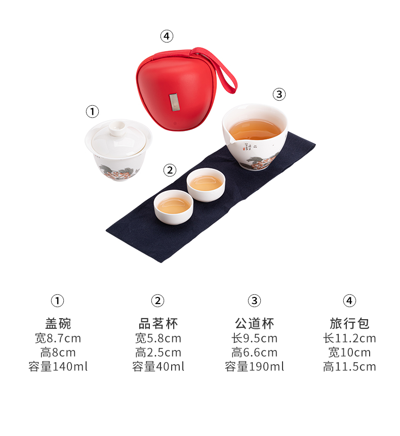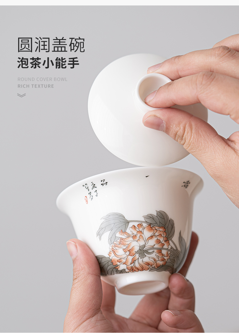 苏氏陶瓷(SUSHI CERAMICS)J0893羊脂玉瓷花开富贵快客杯旅行茶具(单位:套) 白色