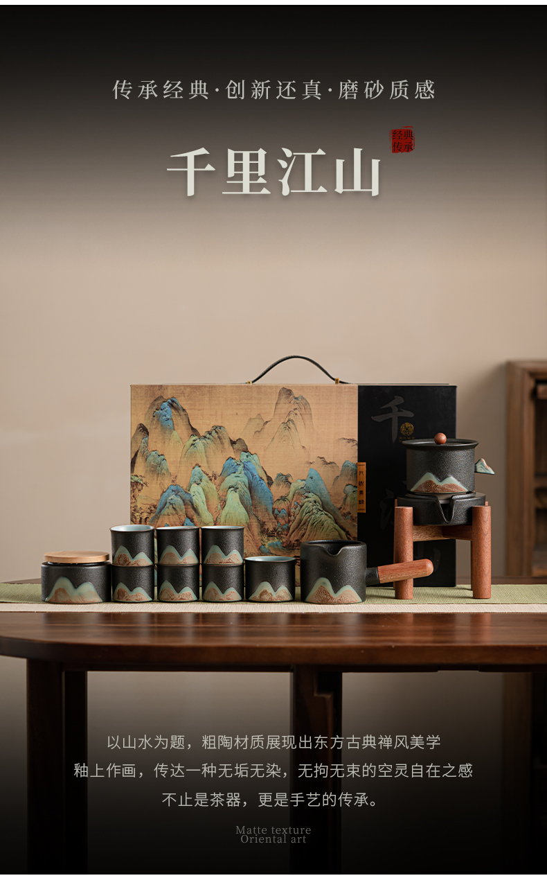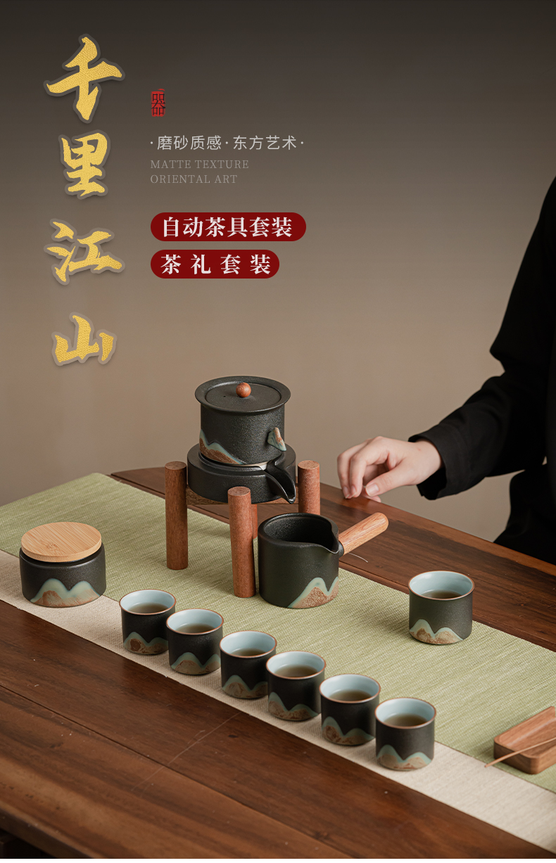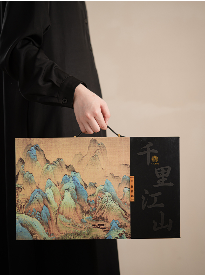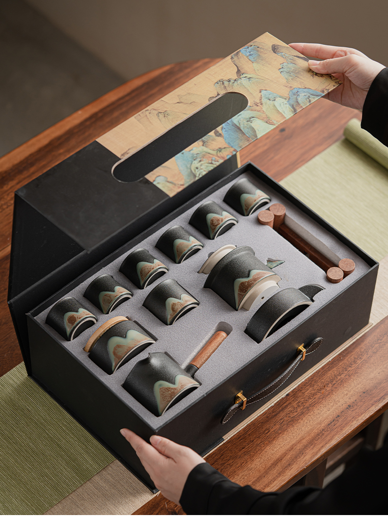 苏氏陶瓷(SUSHI CERAMICS)J0918整套茶具千里江山懒人茶具礼盒装(单位:套) 黑色