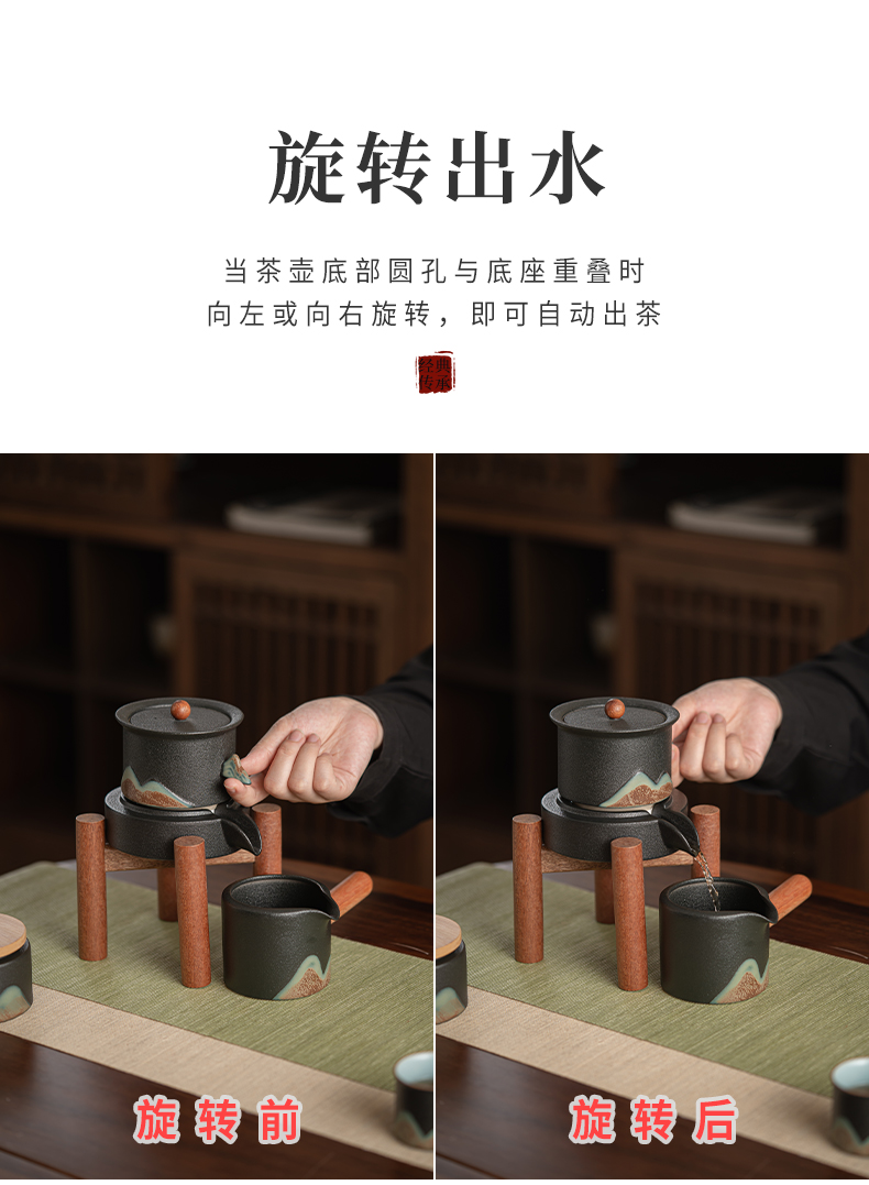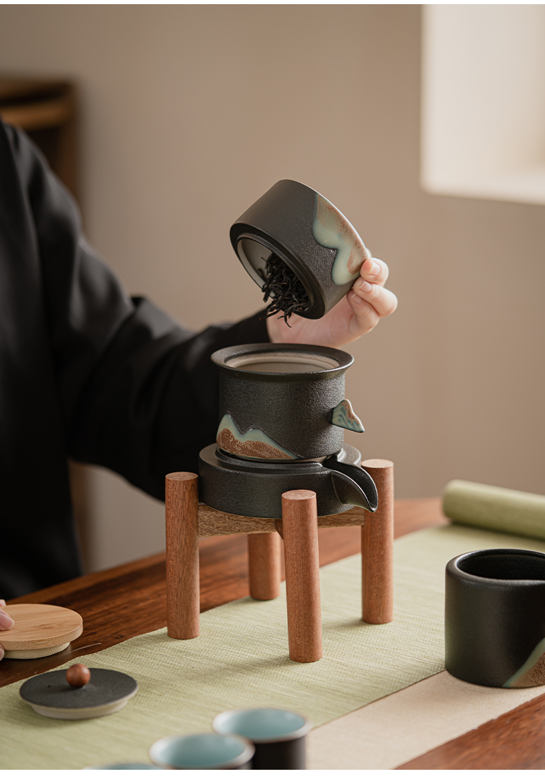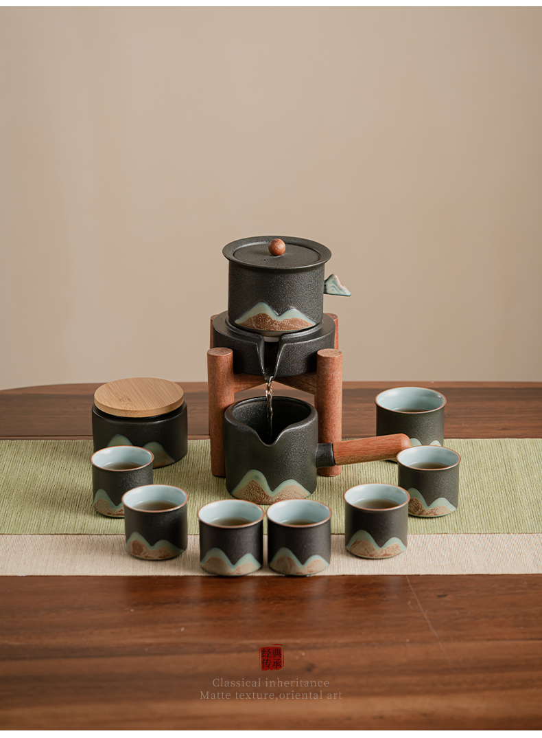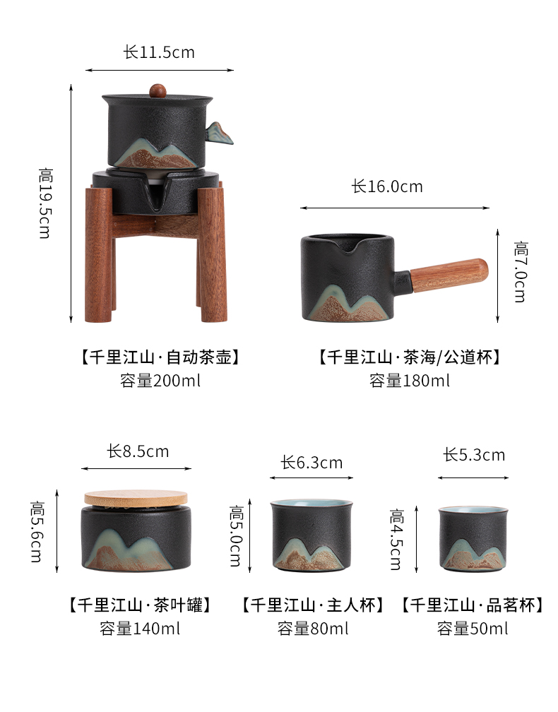 苏氏陶瓷(SUSHI CERAMICS)J0918整套茶具千里江山懒人茶具礼盒装(单位:套) 黑色