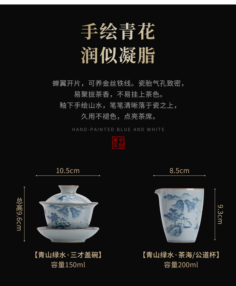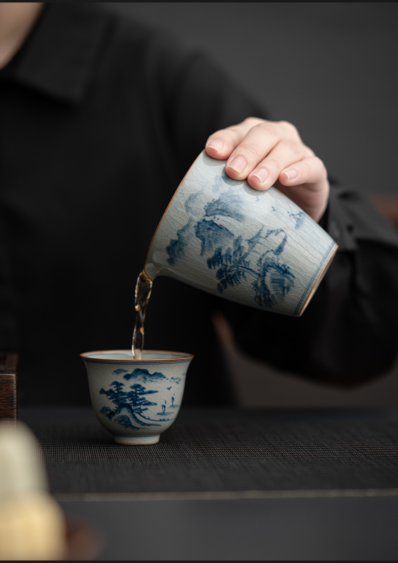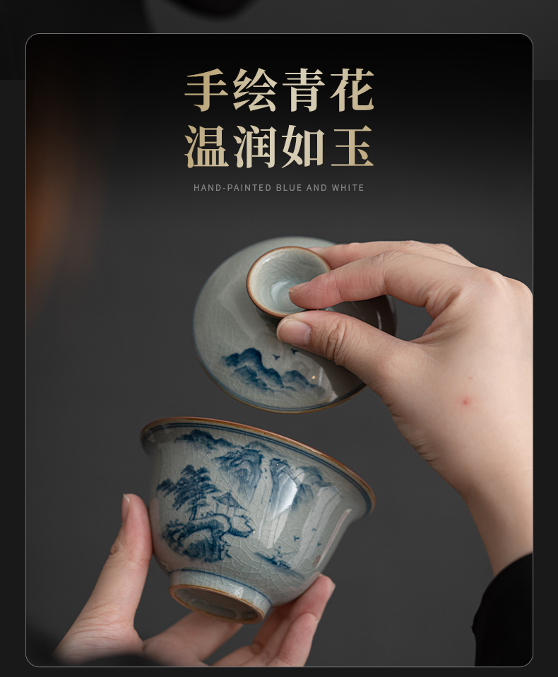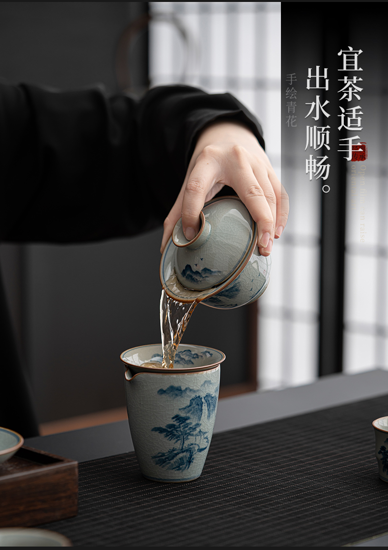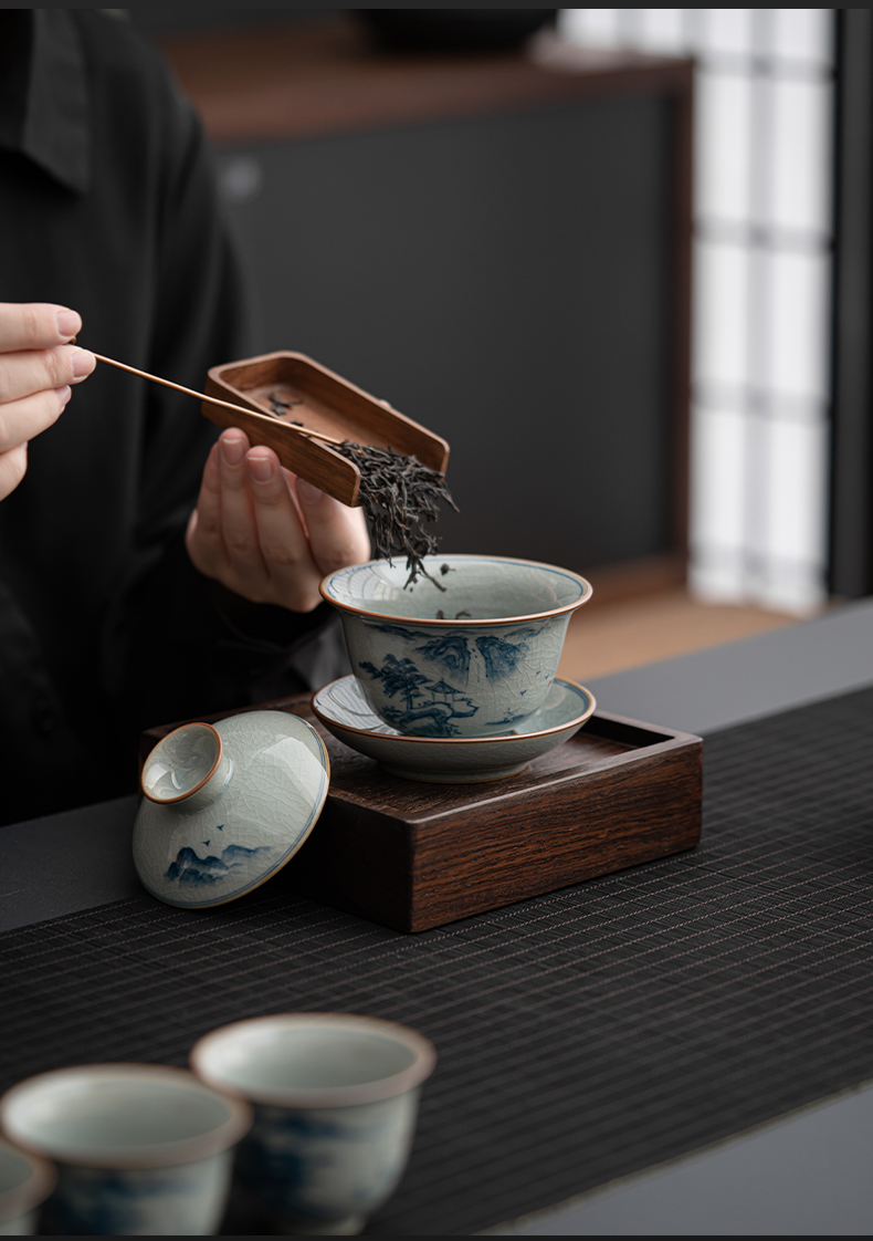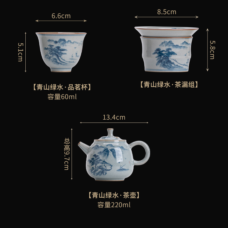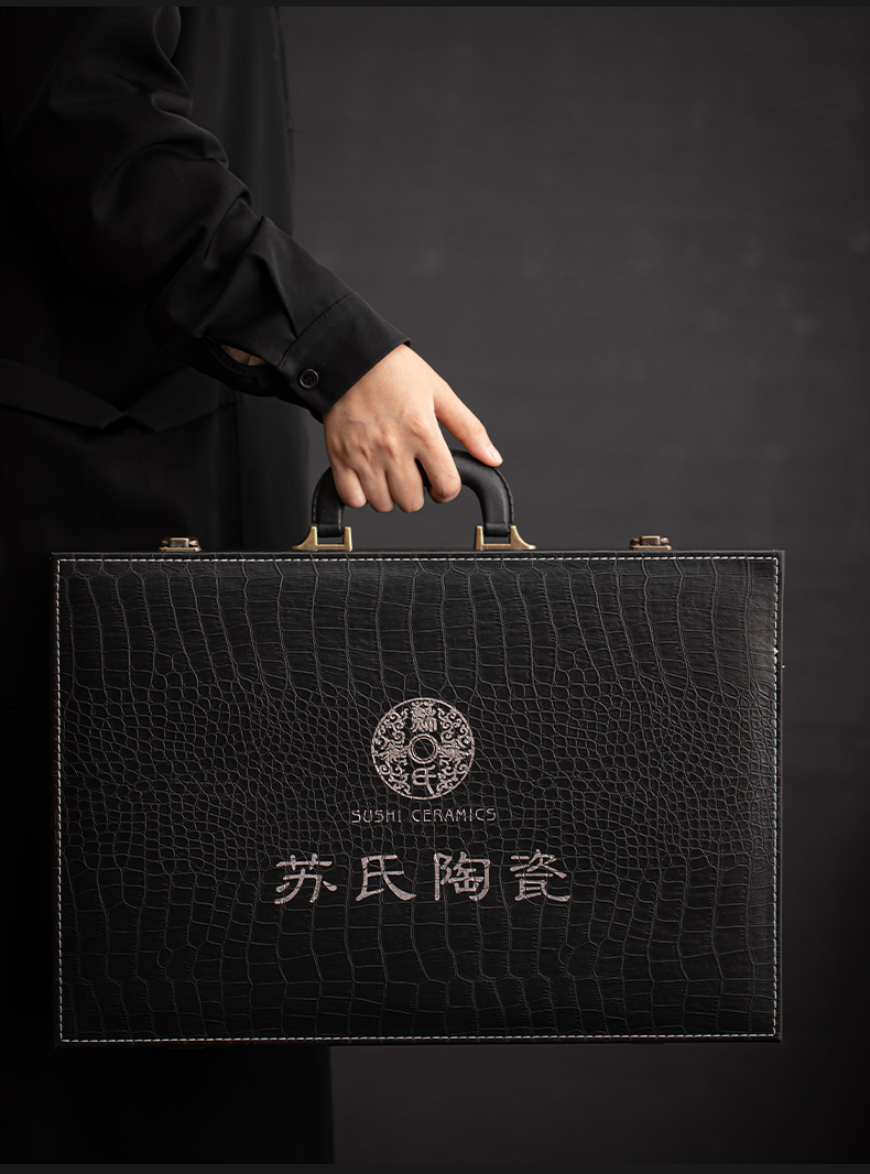 苏氏陶瓷(SUSHI CERAMICS)J0932整套茶具汝窑手绘山水泛舟大套组礼盒装(单位:套) 灰色