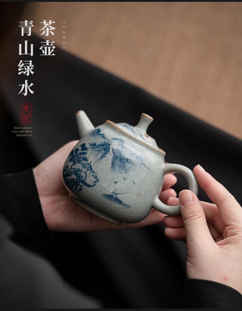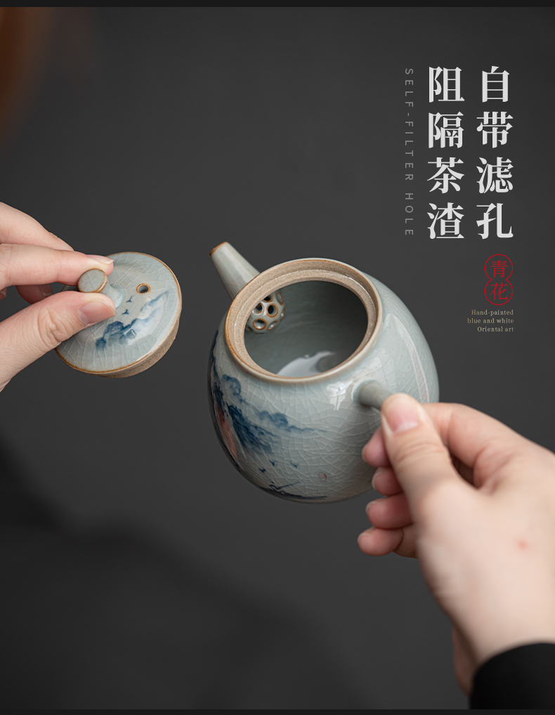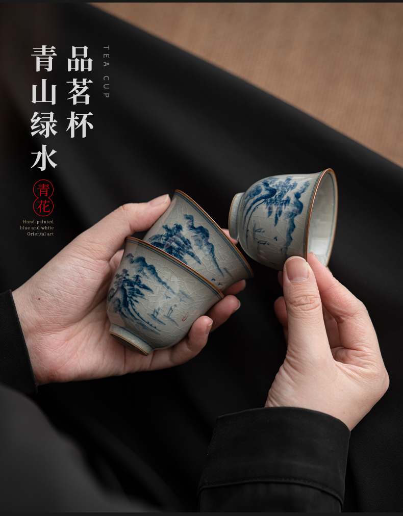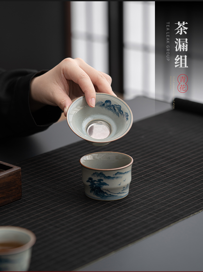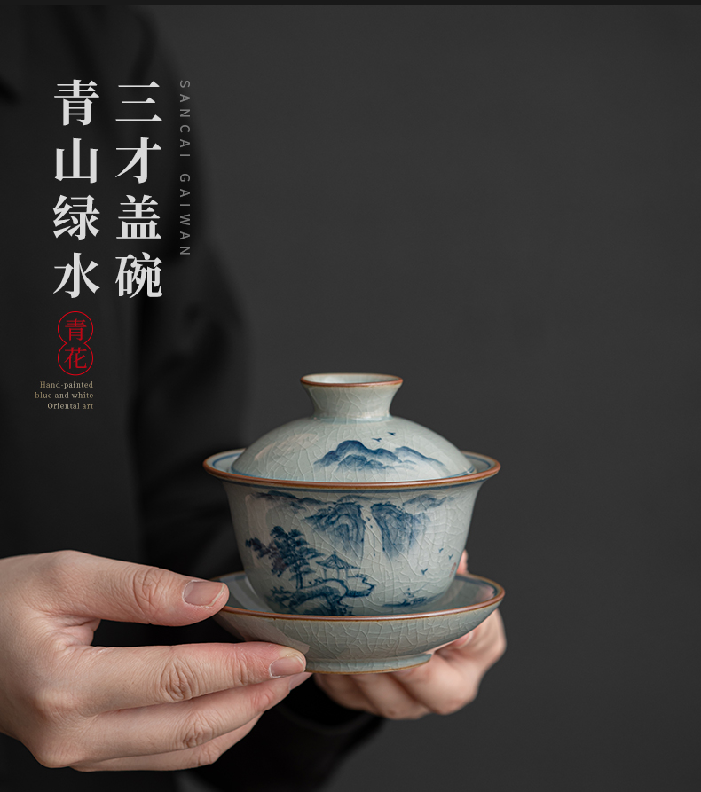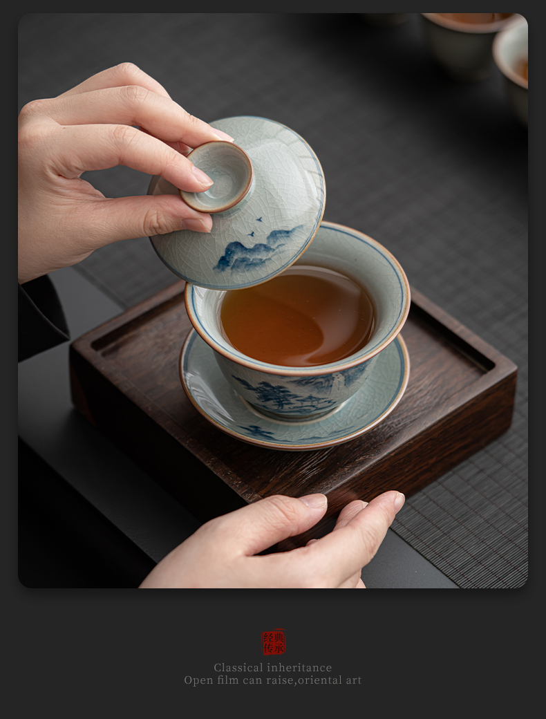 苏氏陶瓷(SUSHI CERAMICS)J0932整套茶具汝窑手绘山水泛舟大套组礼盒装(单位:套) 灰色