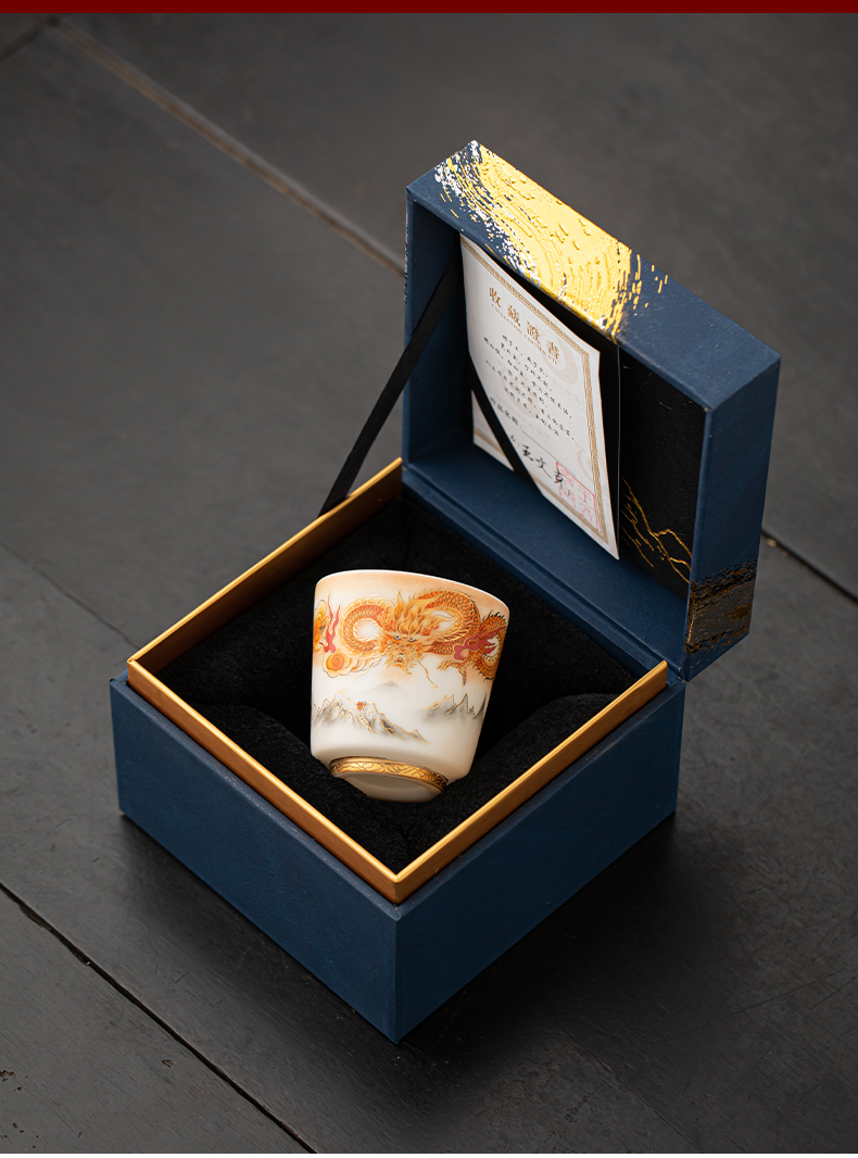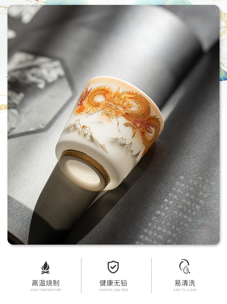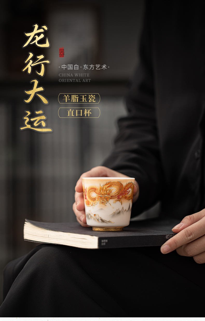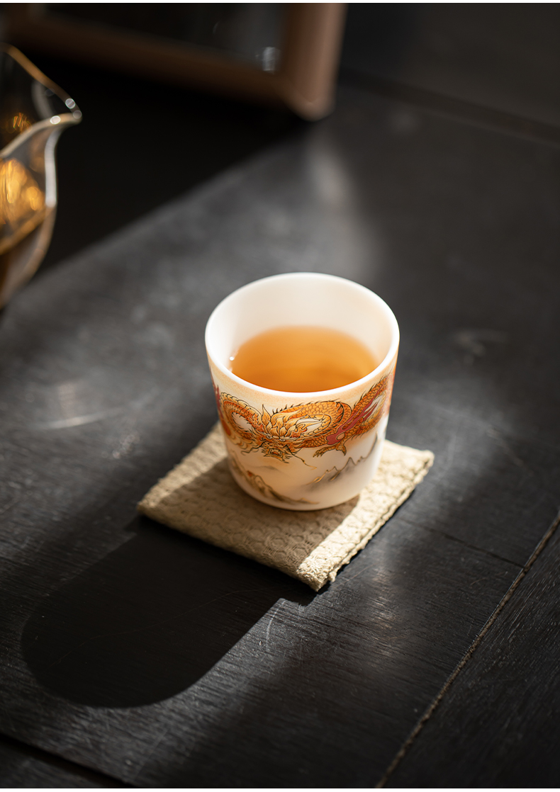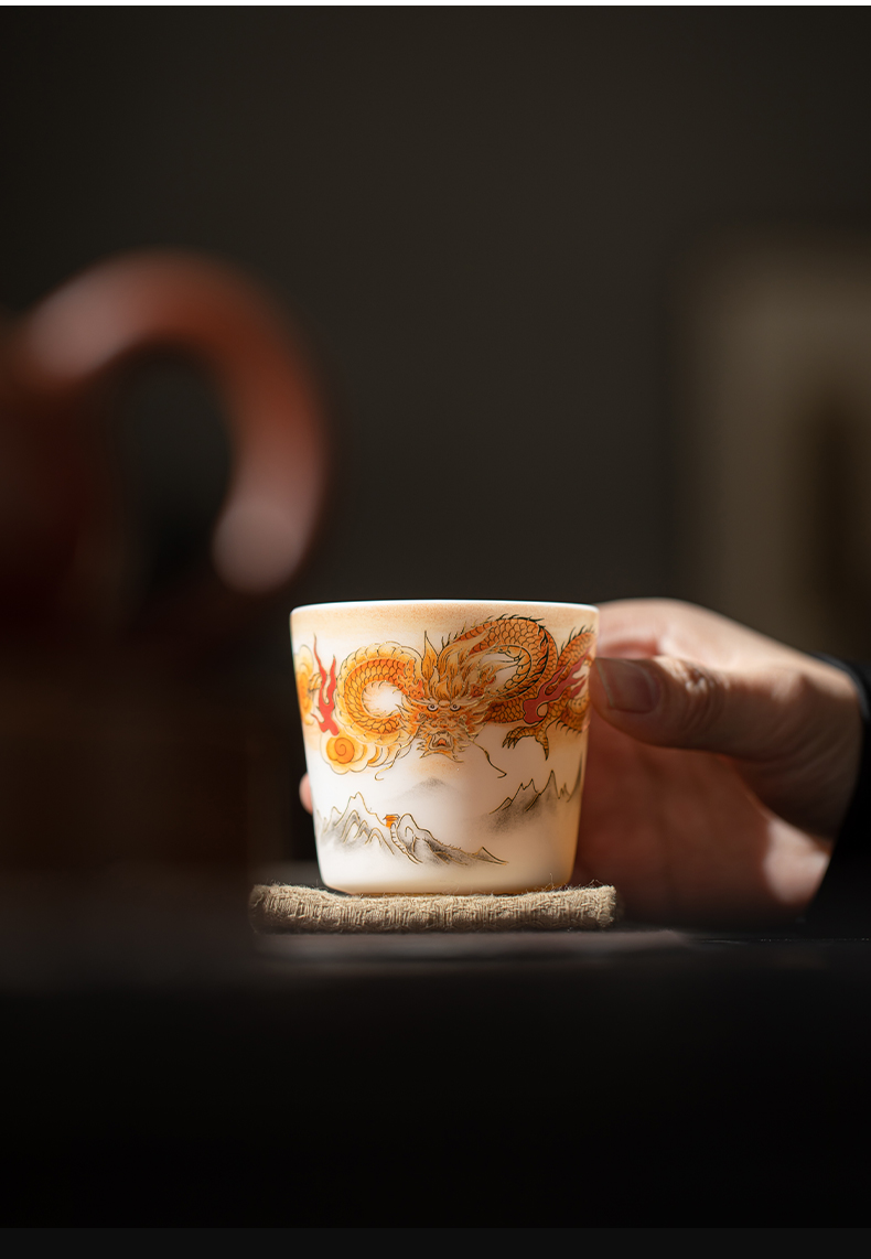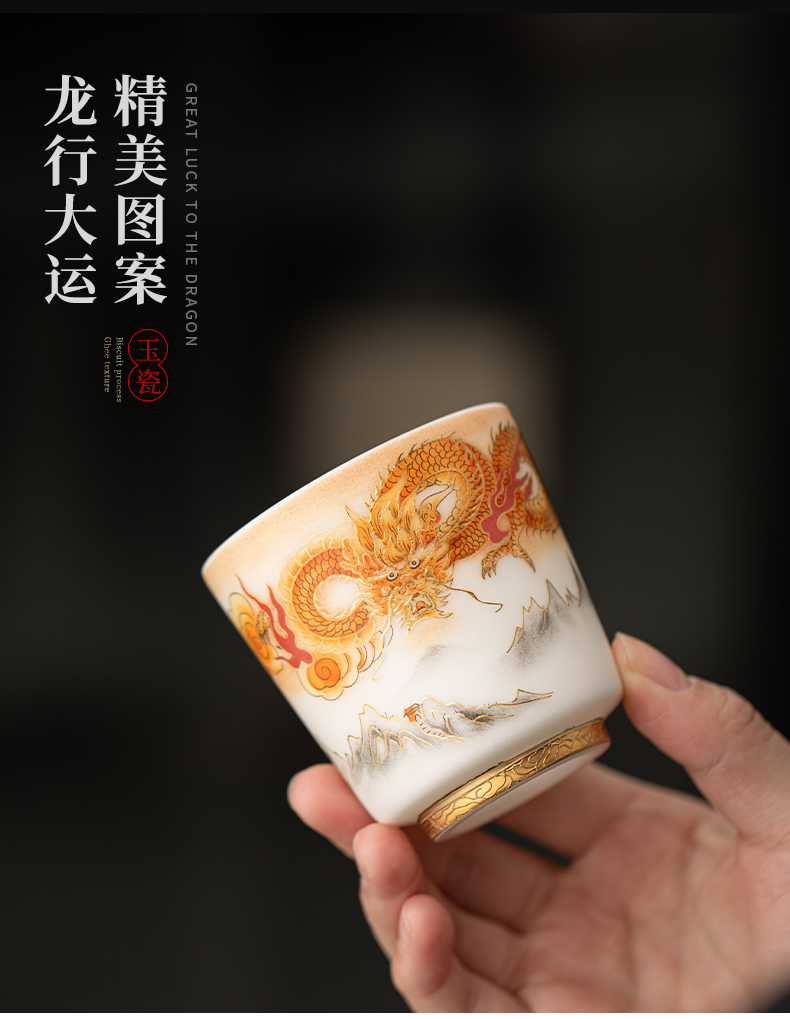苏氏陶瓷(SUSHI CERAMICS)J1007龙行大运直口茶杯国家一级技师王文克作品(单位:套) 白色