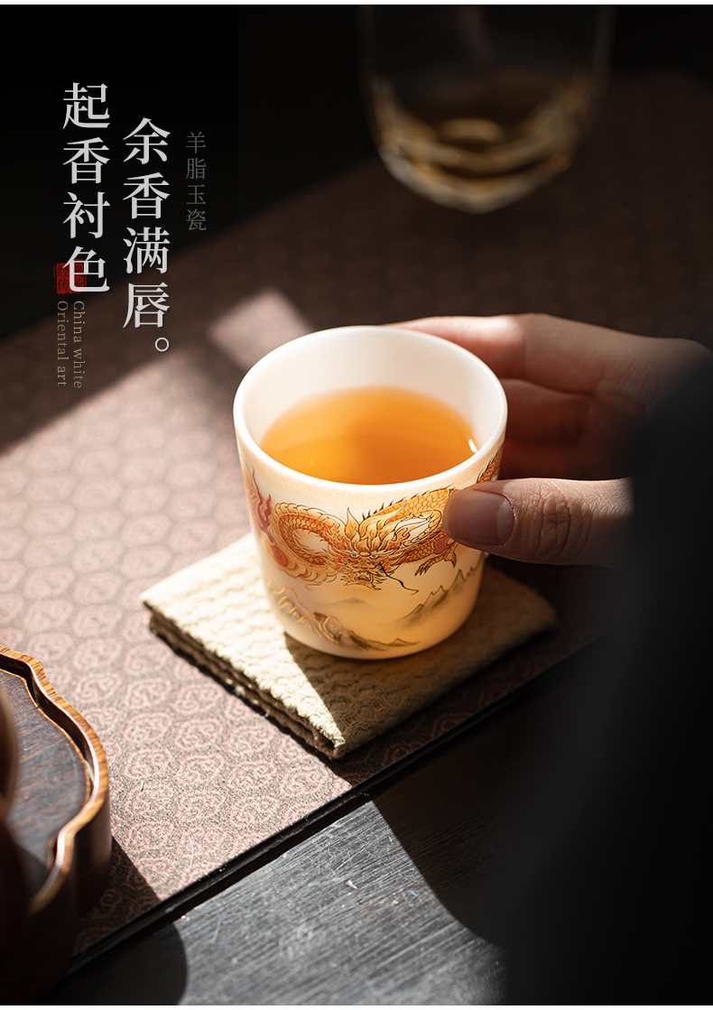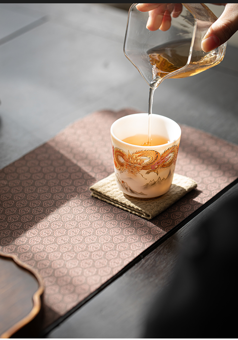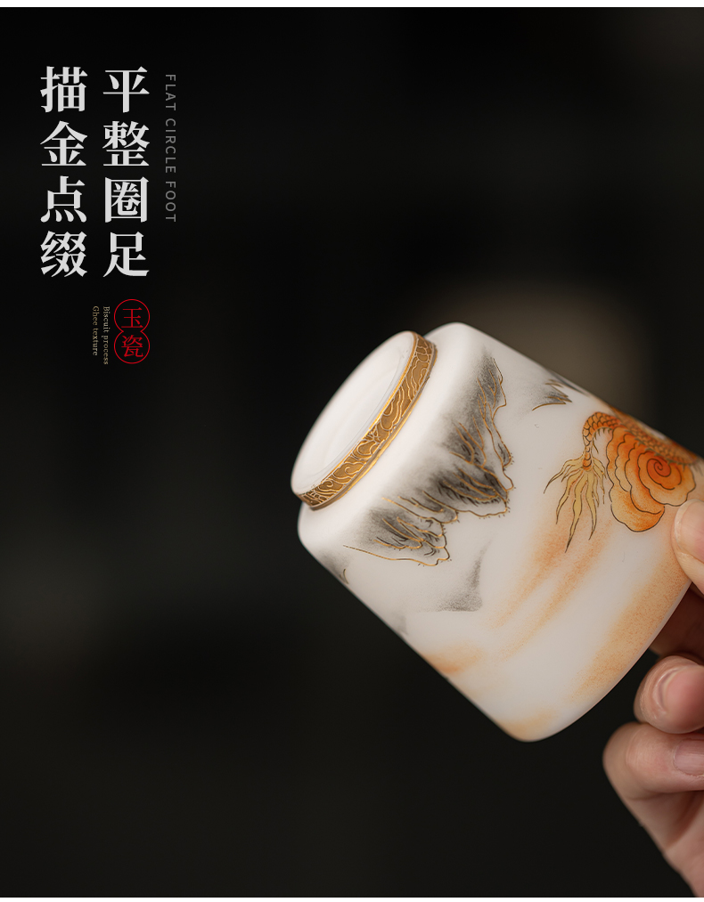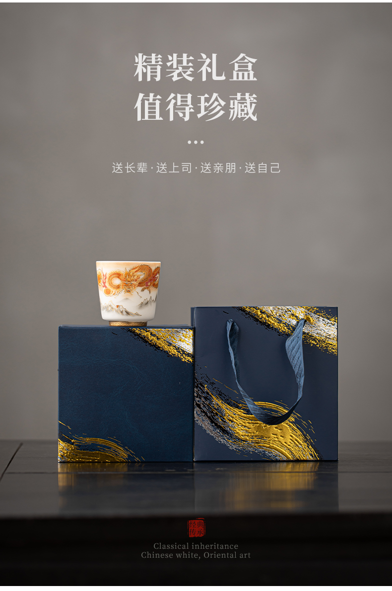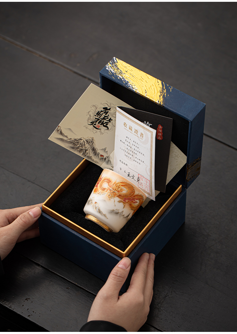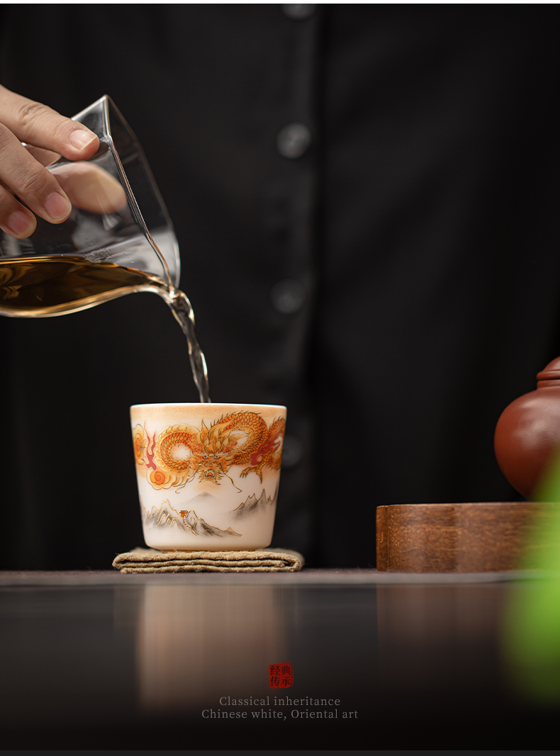 苏氏陶瓷(SUSHI CERAMICS)J1007龙行大运直口茶杯国家一级技师王文克作品(单位:套) 白色