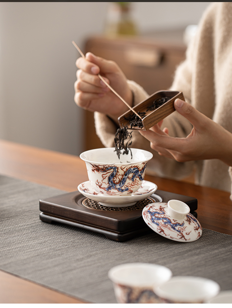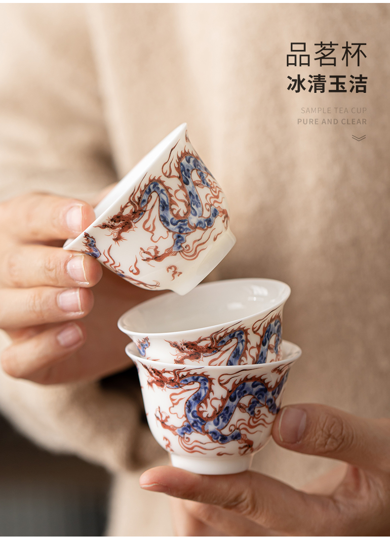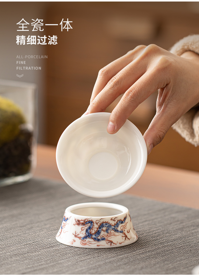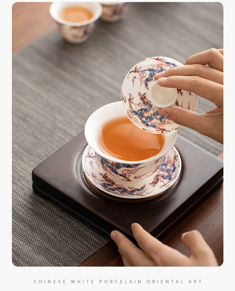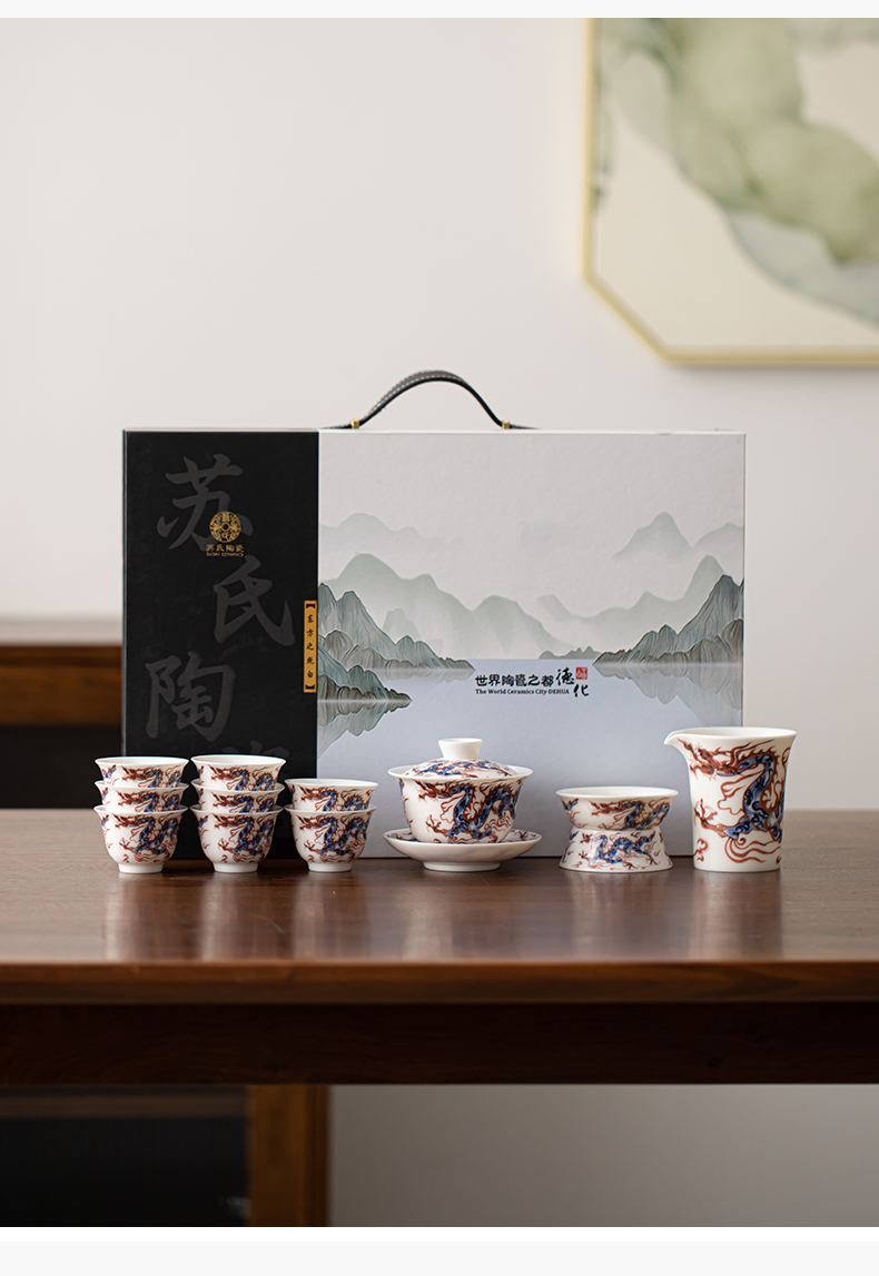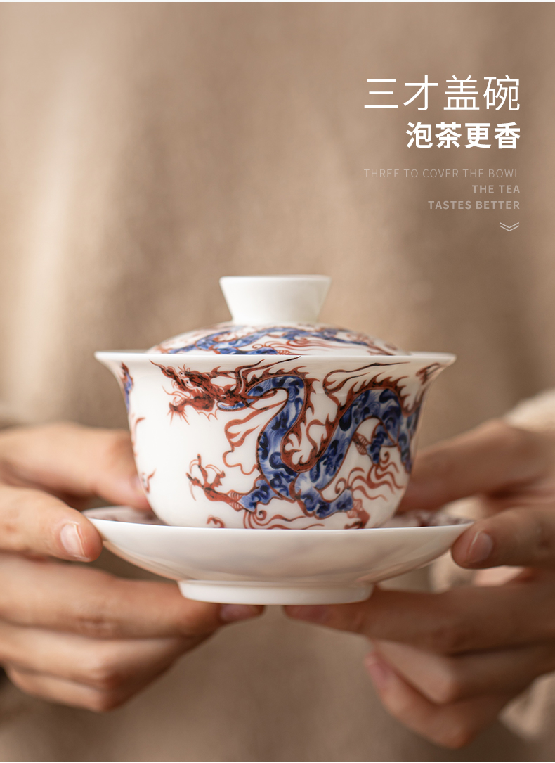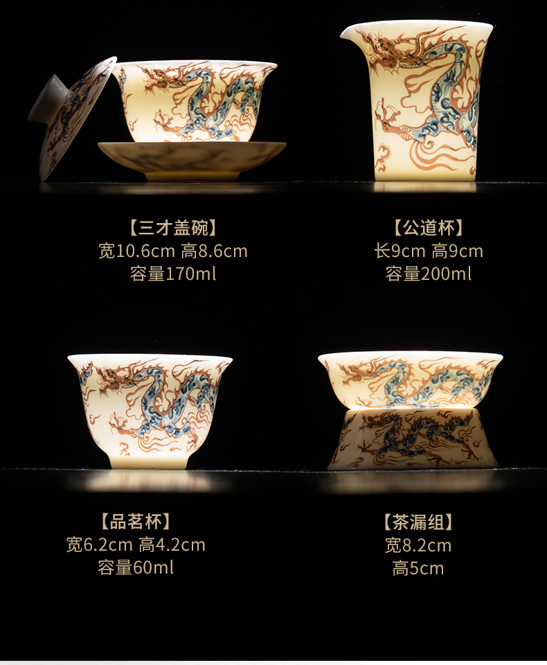 苏氏陶瓷(SUSHI CERAMICS)J0984祥龙三才盖碗茶杯羊脂玉瓷茶具礼盒装(单位:套) 白色
