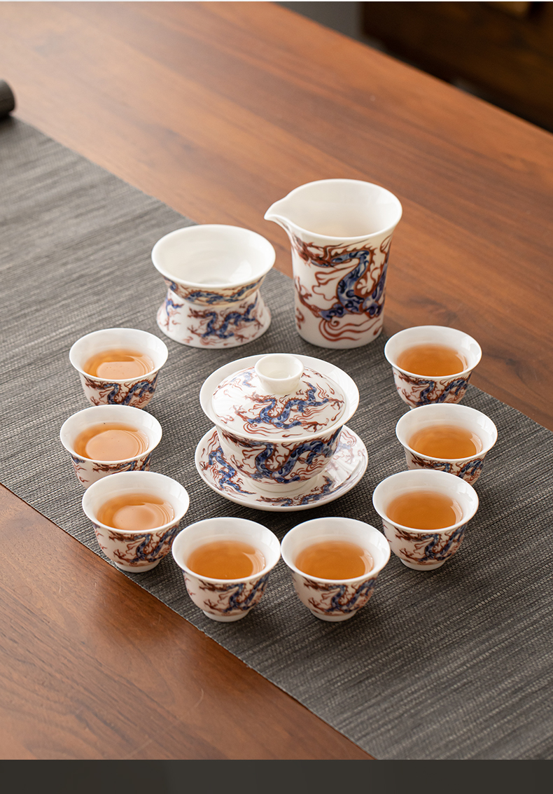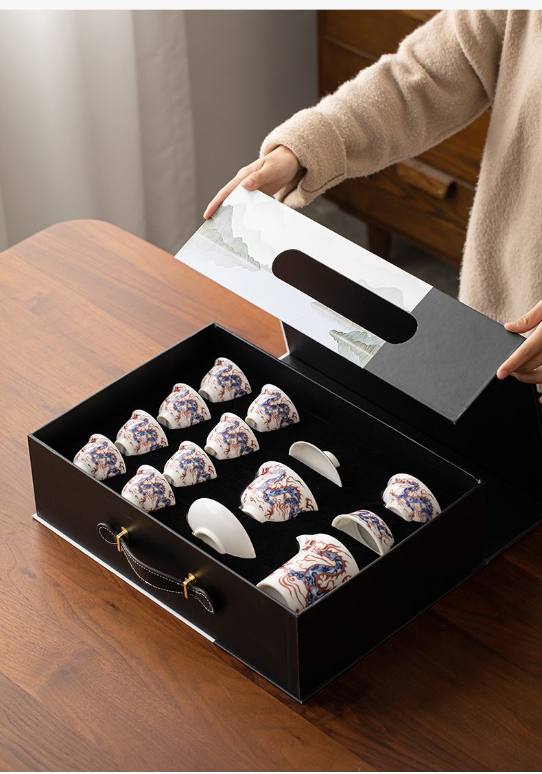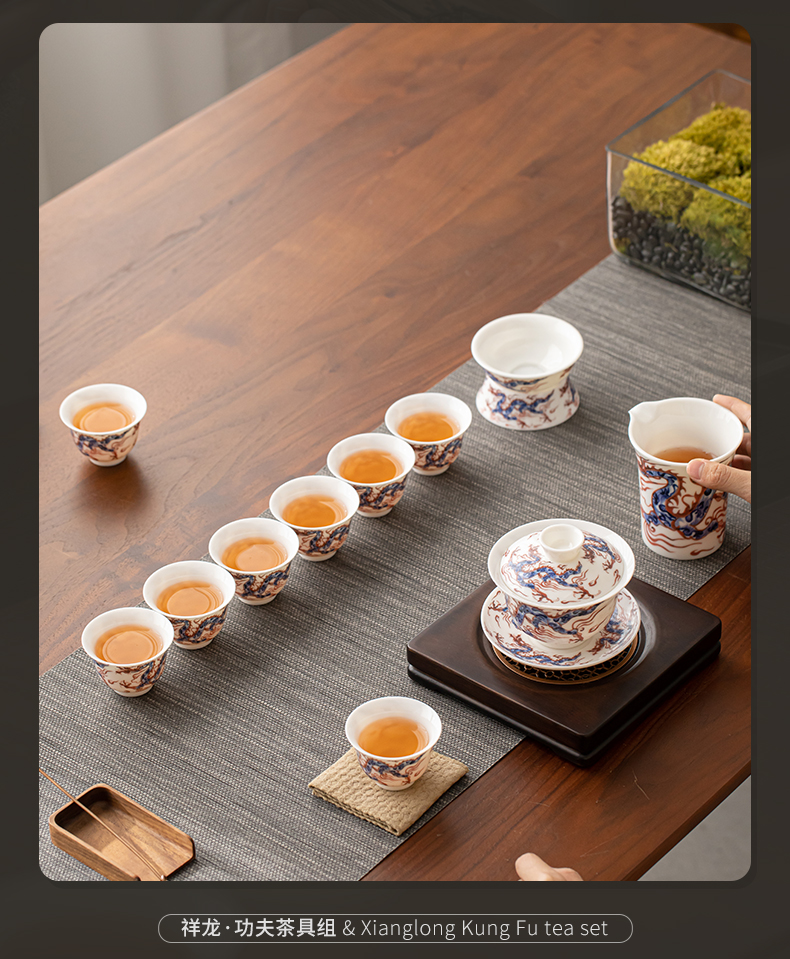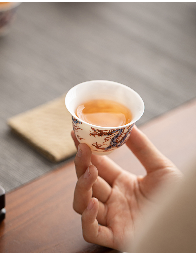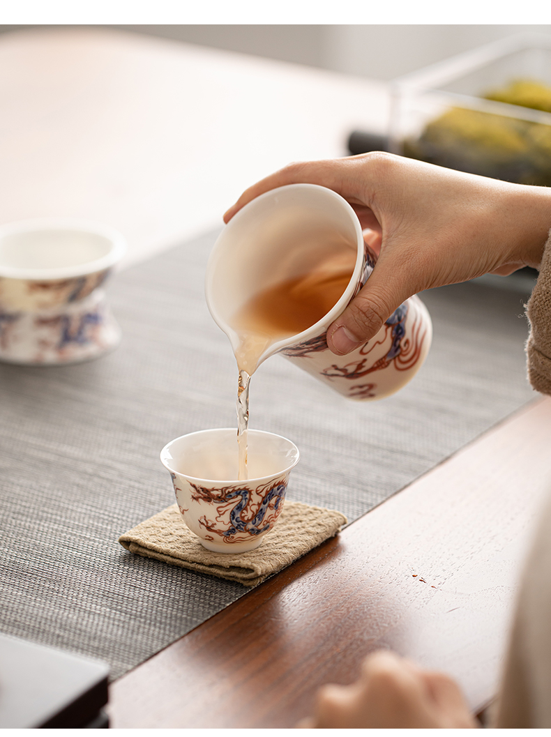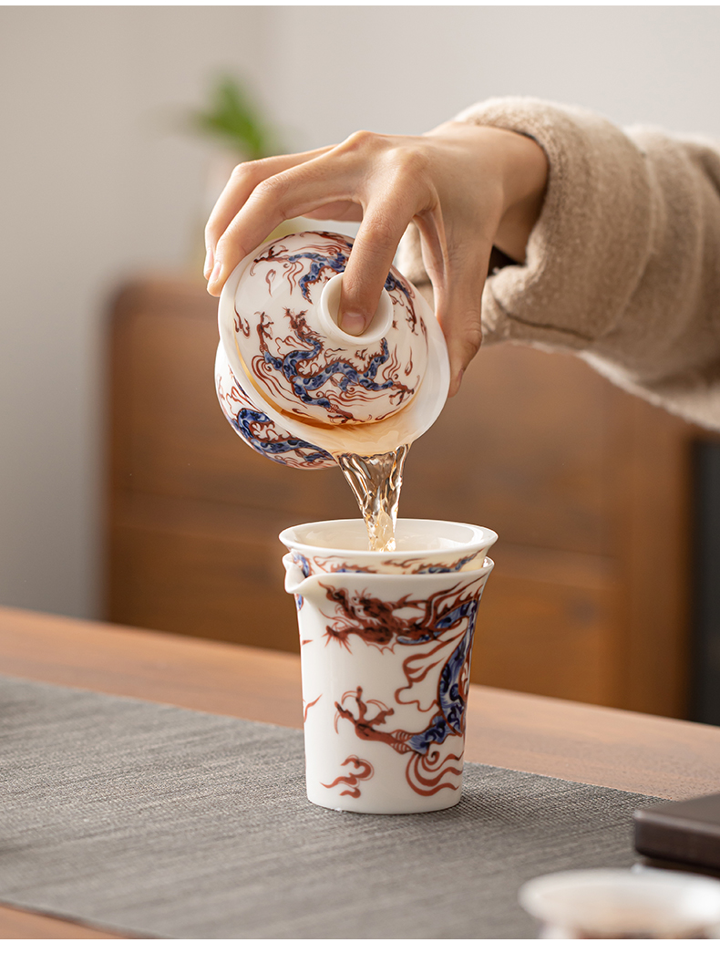 苏氏陶瓷(SUSHI CERAMICS)J0984祥龙三才盖碗茶杯羊脂玉瓷茶具礼盒装(单位:套) 白色