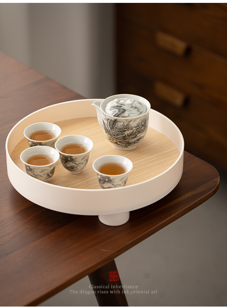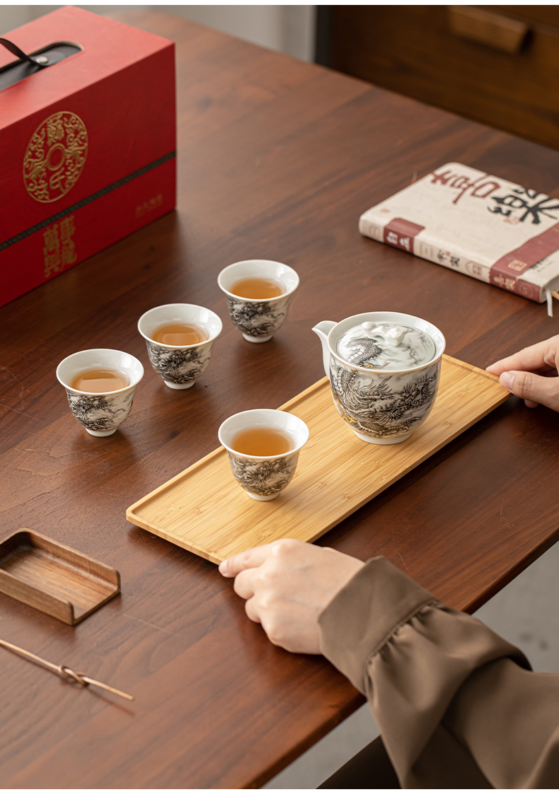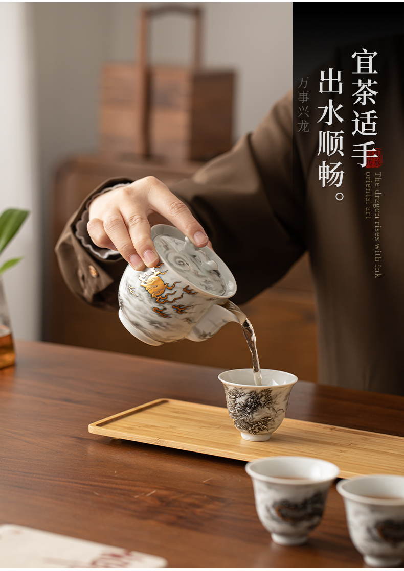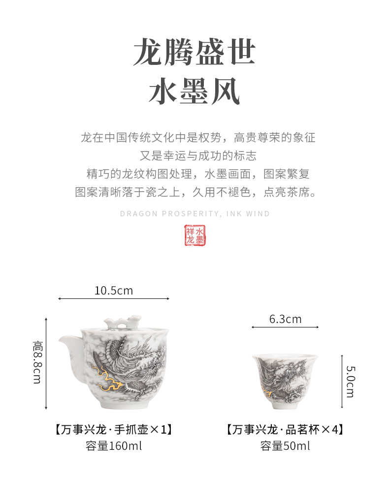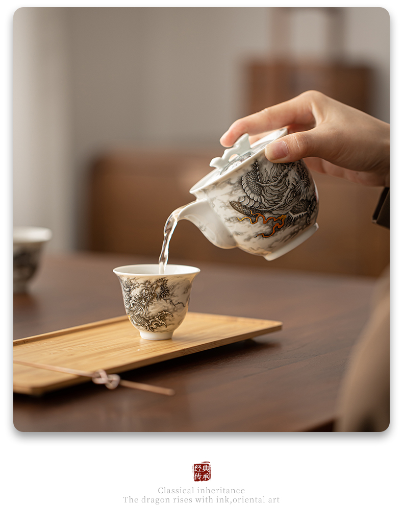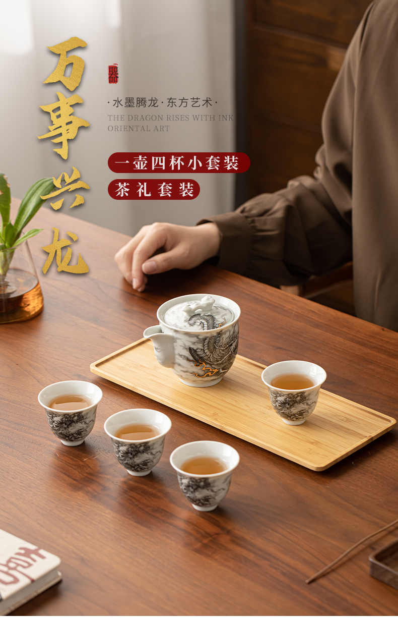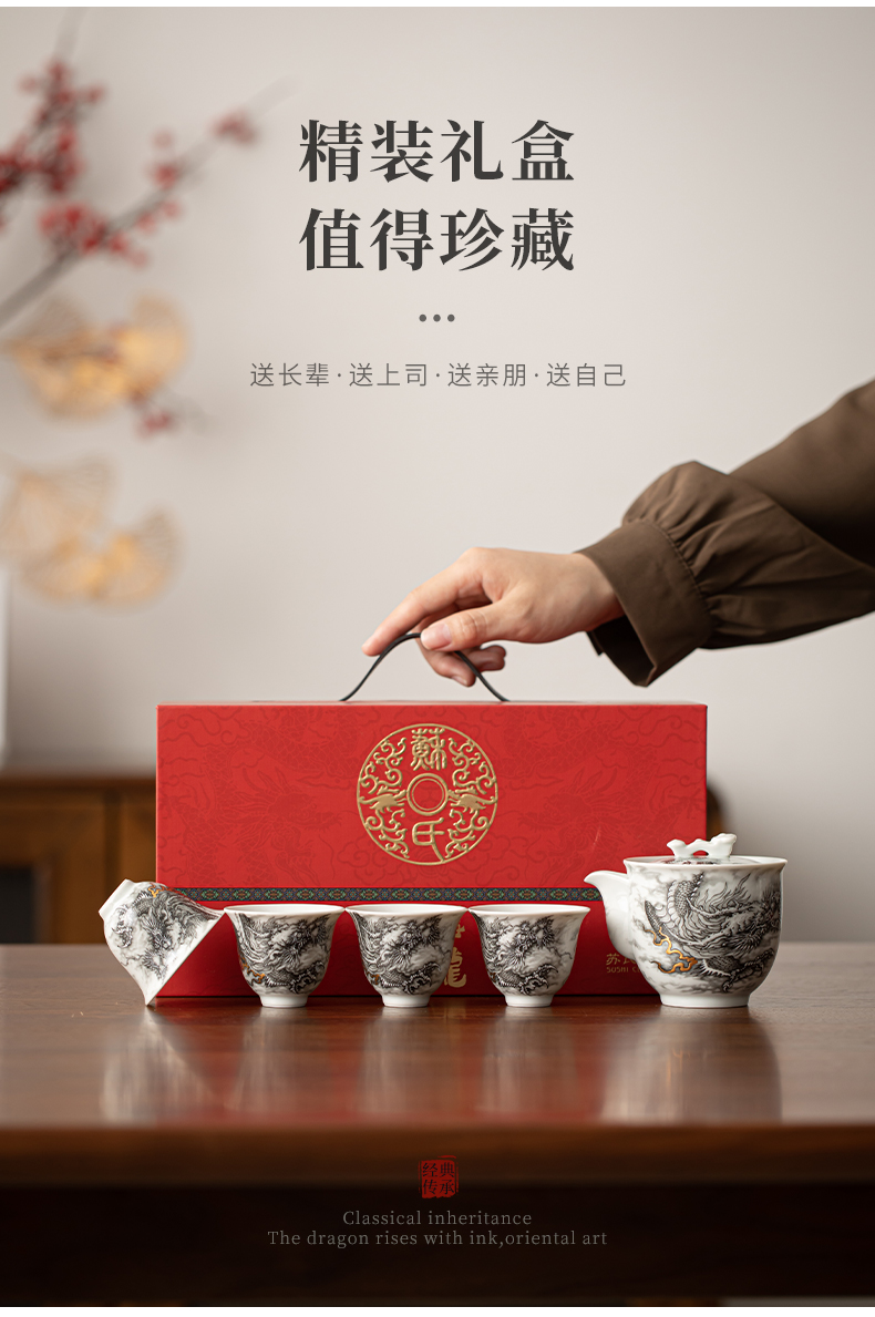 苏氏陶瓷(SUSHI CERAMICS)J1020水墨龙腾盛世一壶四杯小套装非遗传承人苏爱珍作品(单 白色