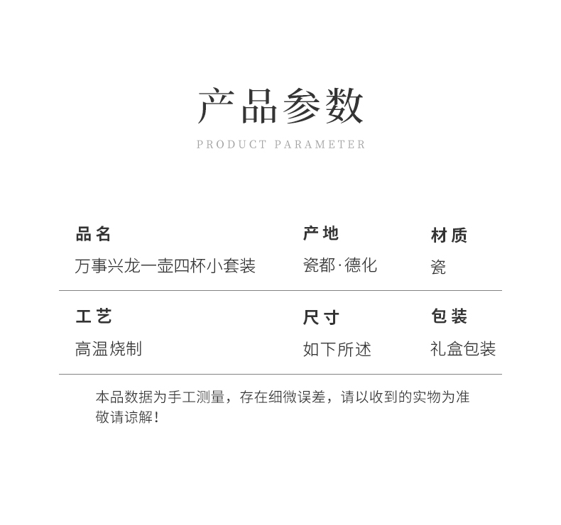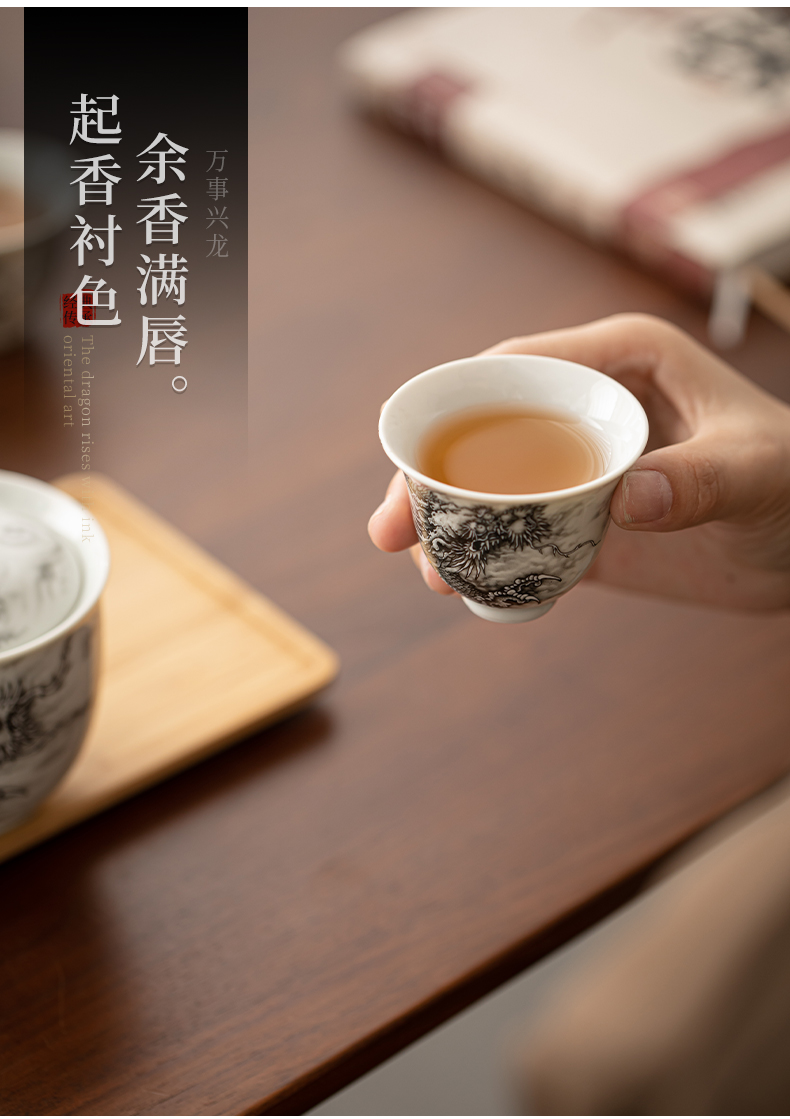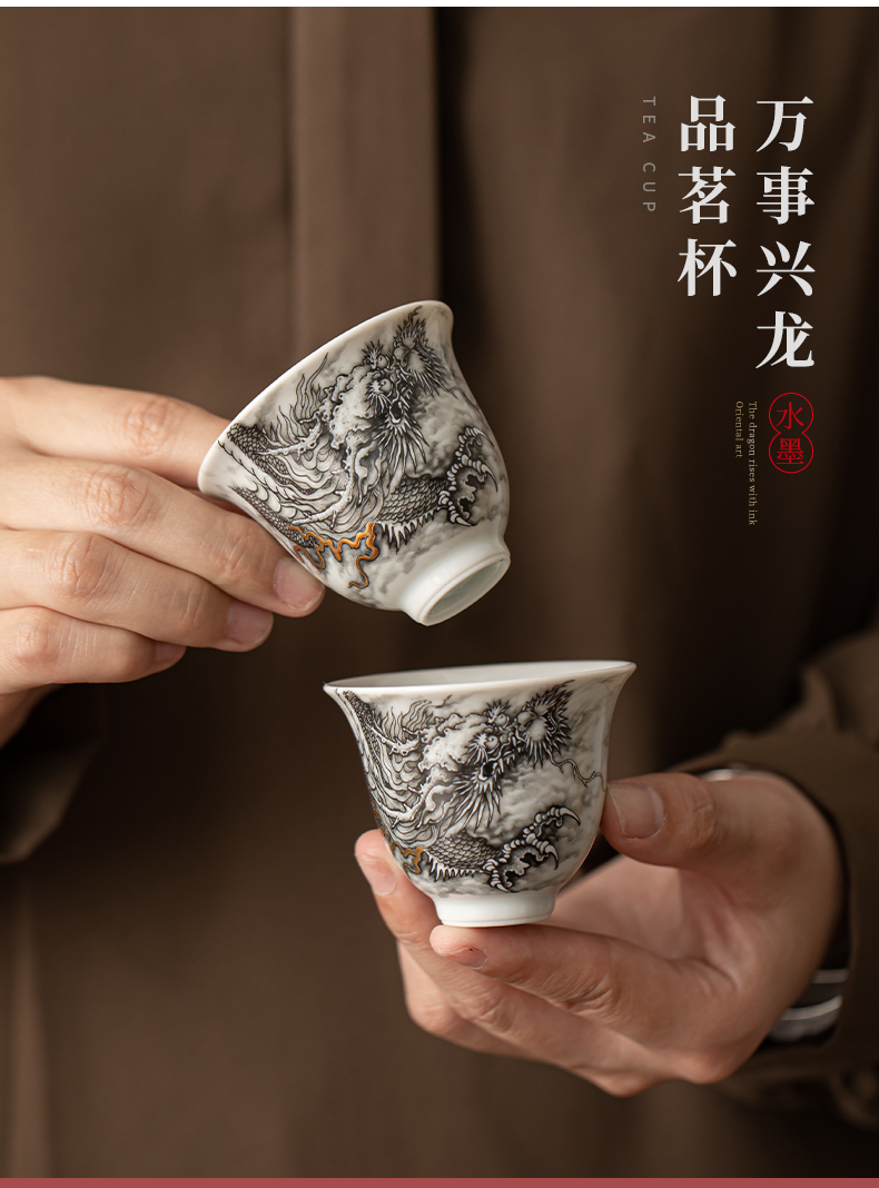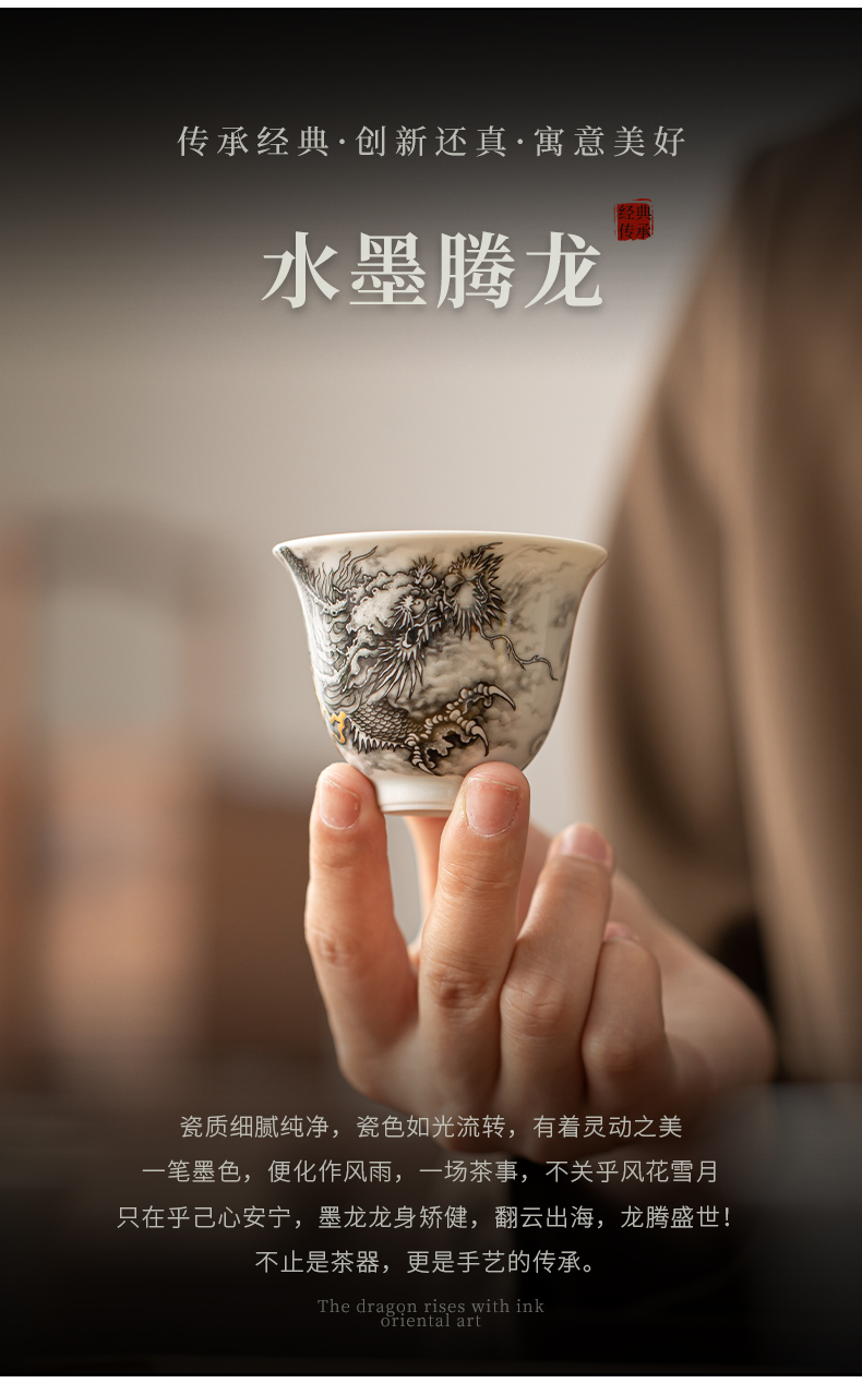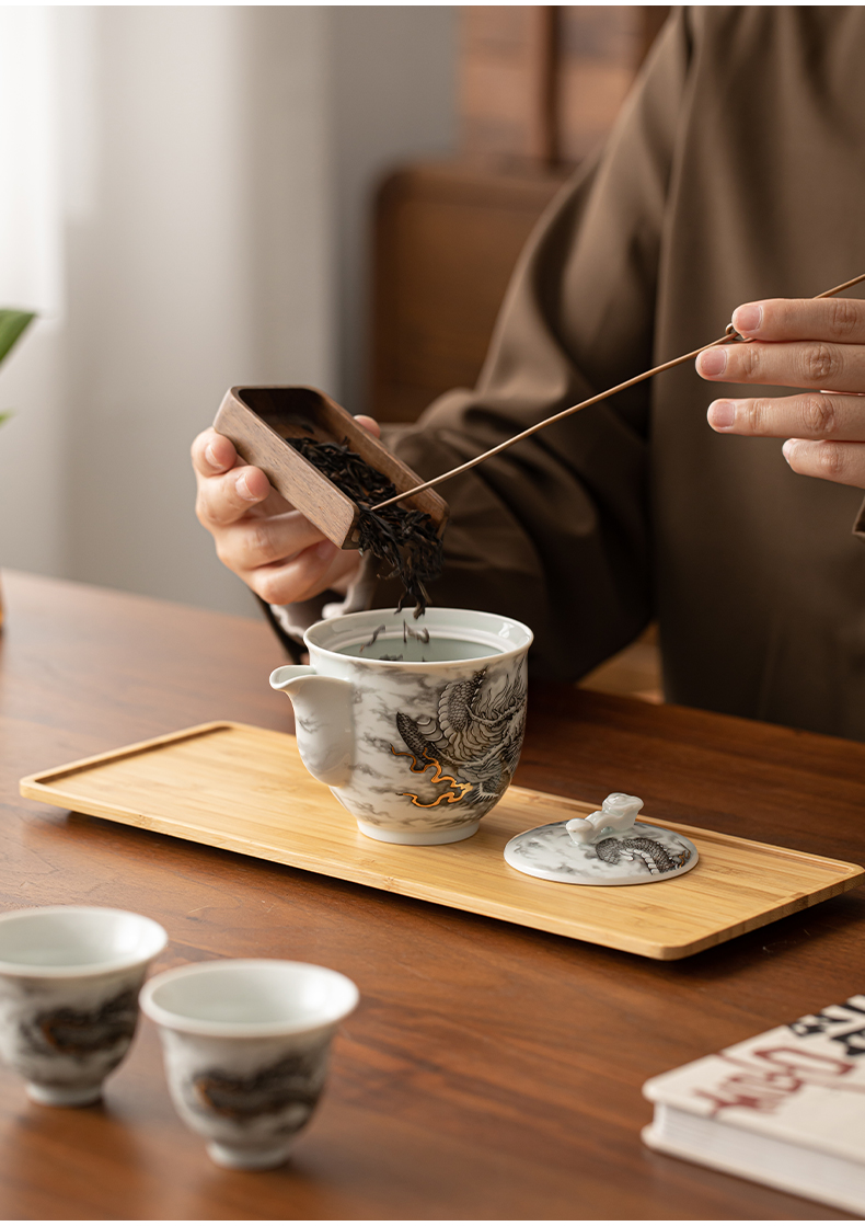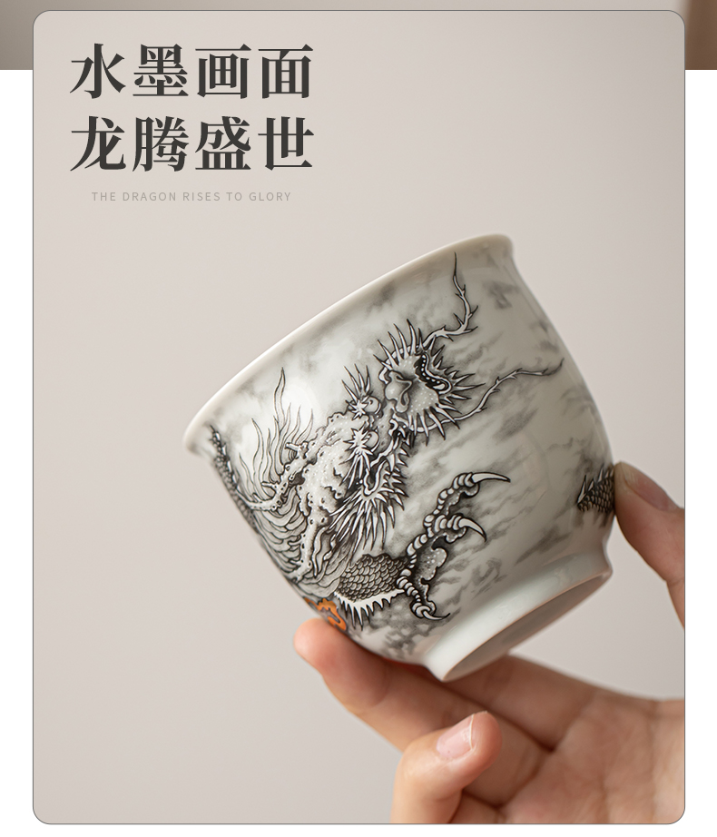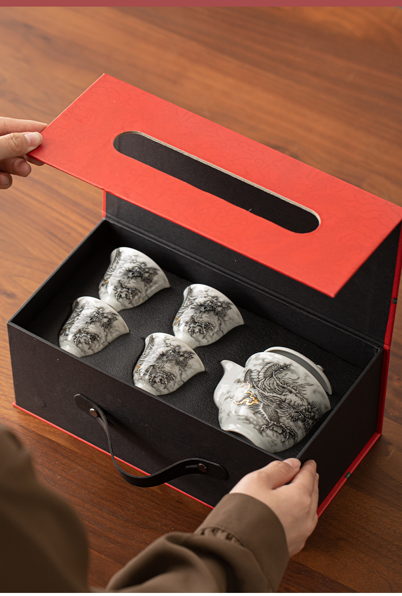 苏氏陶瓷(SUSHI CERAMICS)J1020水墨龙腾盛世一壶四杯小套装非遗传承人苏爱珍作品(单 白色