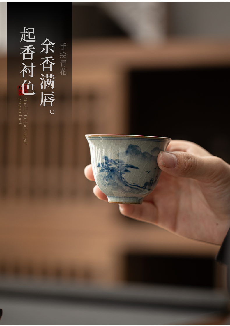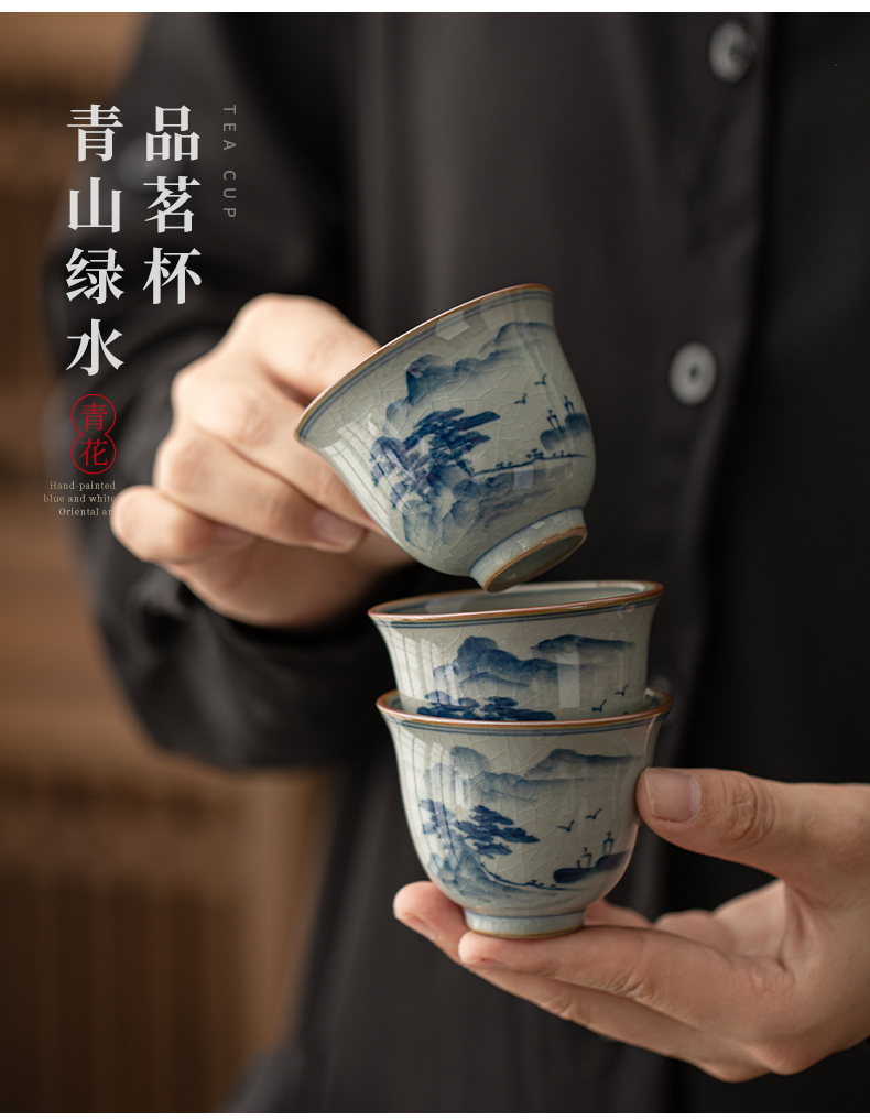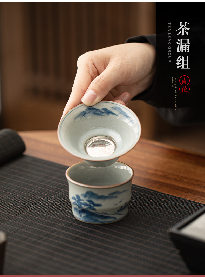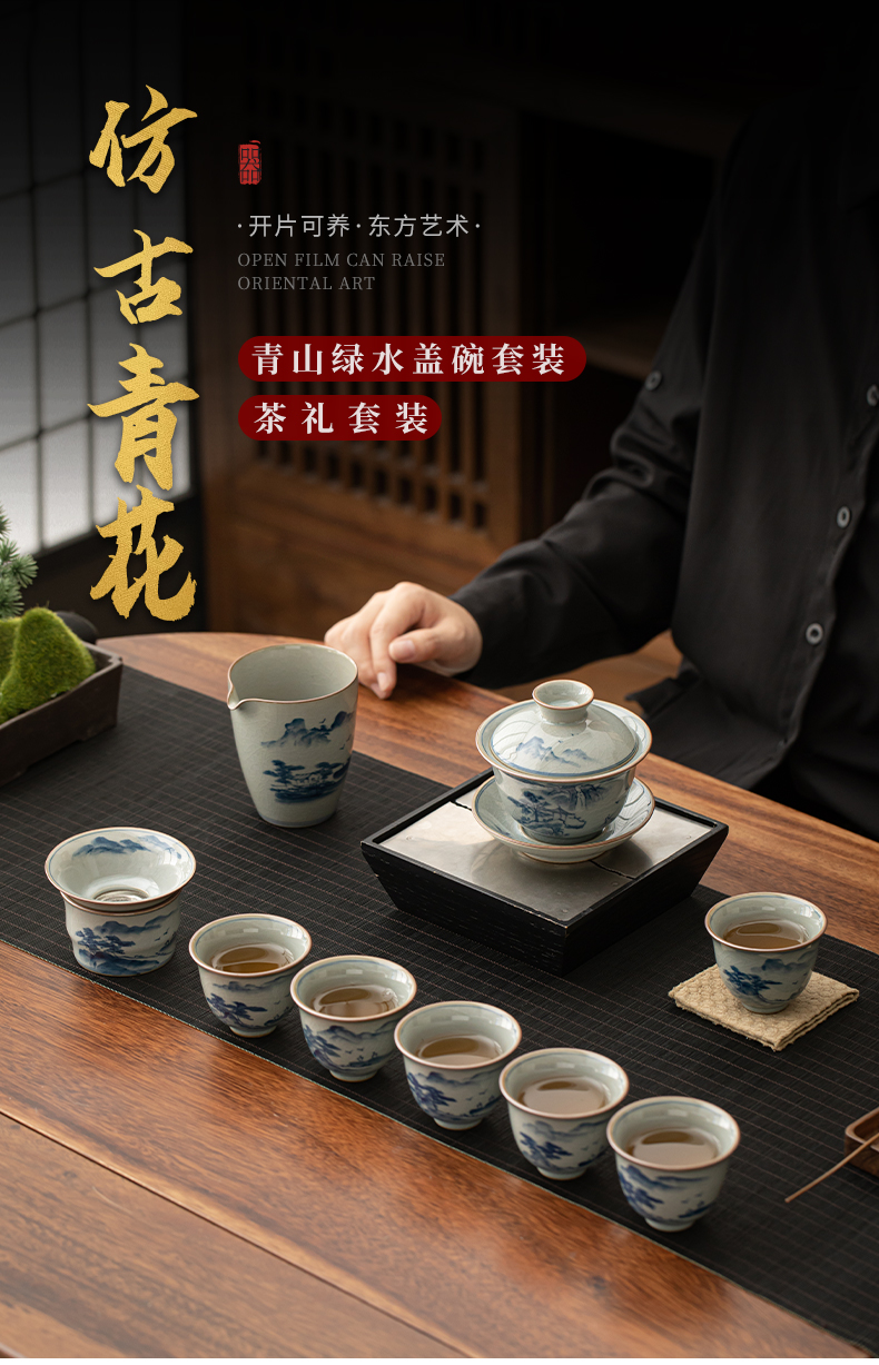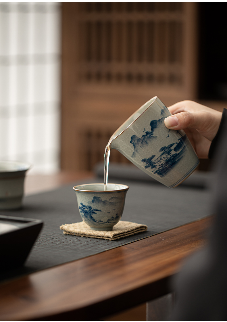 苏氏陶瓷(SUSHI CERAMICS)J1028汝窑手绘山水泛舟盖碗茶具套装苏爱珍作品(单位:套) 灰色