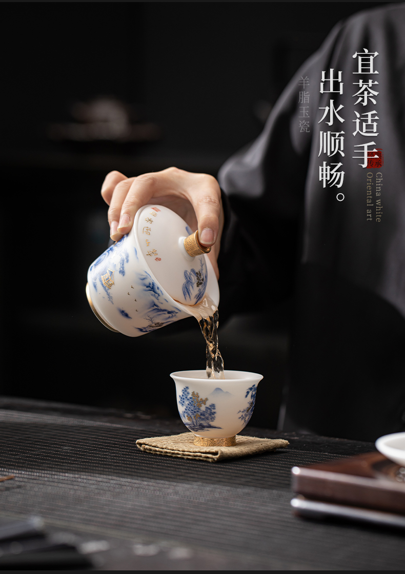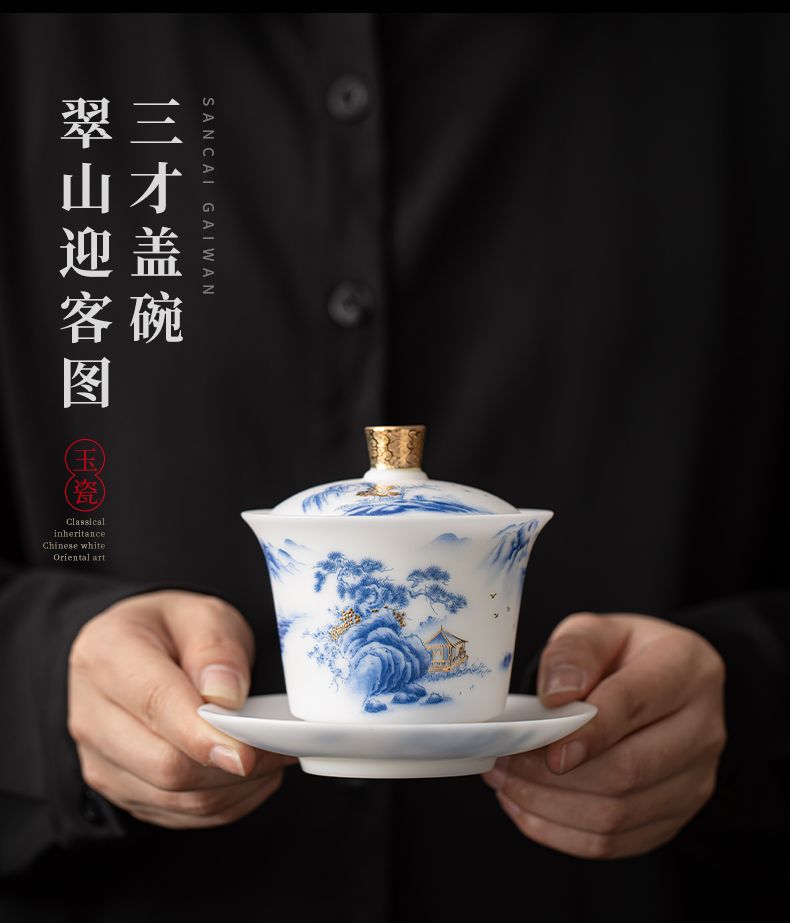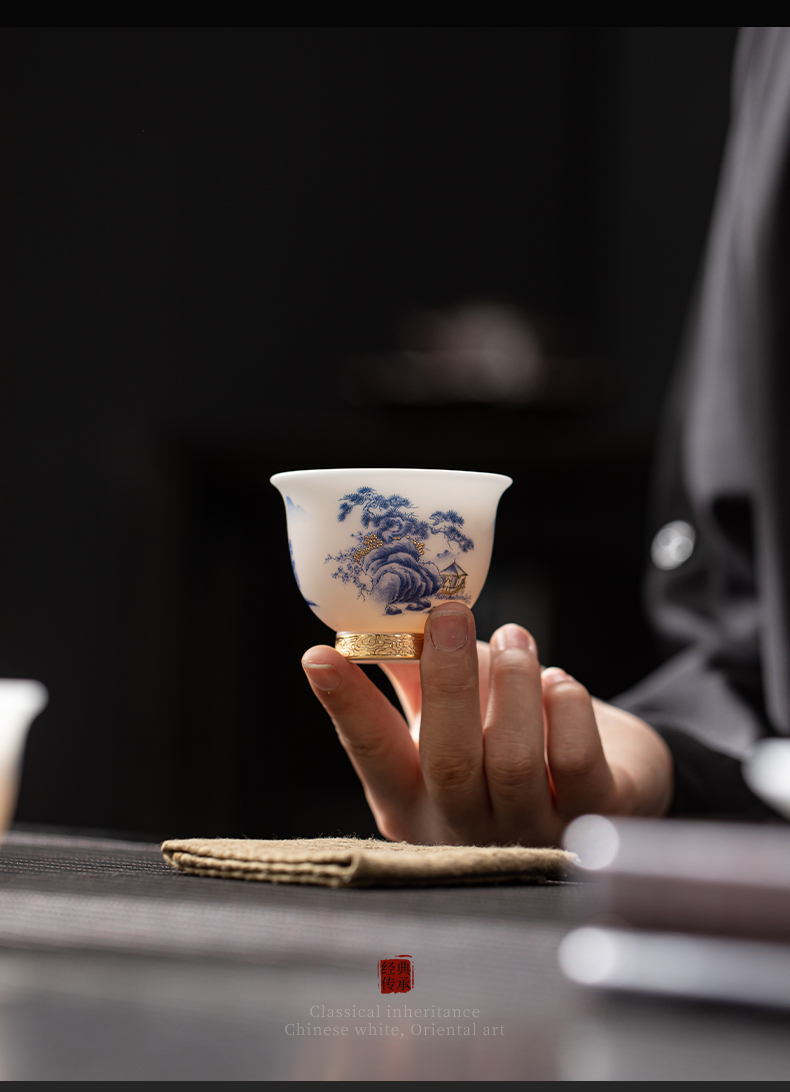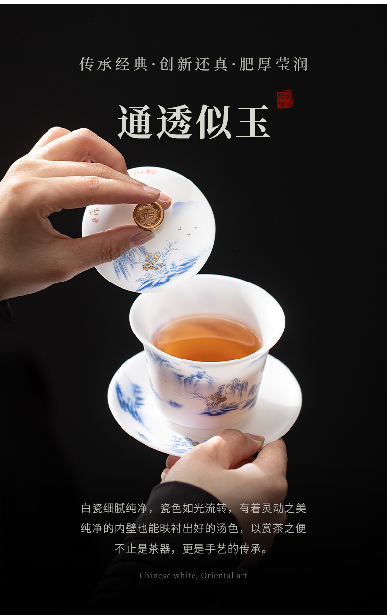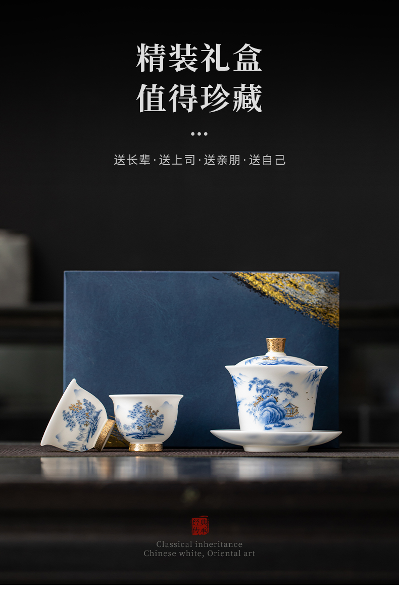 苏氏陶瓷(SUSHI CERAMICS)J1053素烧源远流长一碗两杯国家一级技师王文克作品(单位: 白色