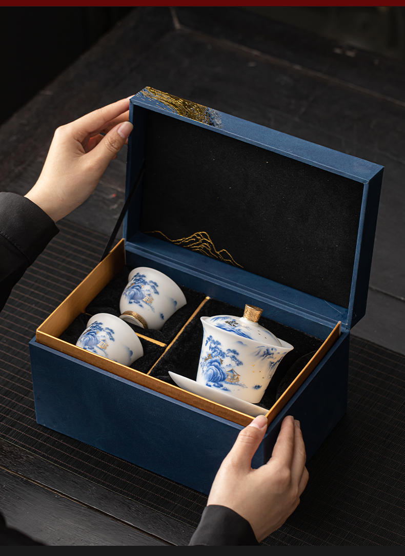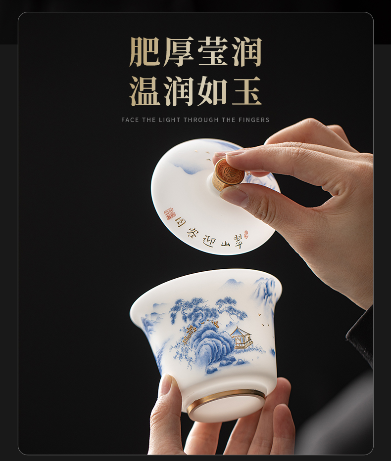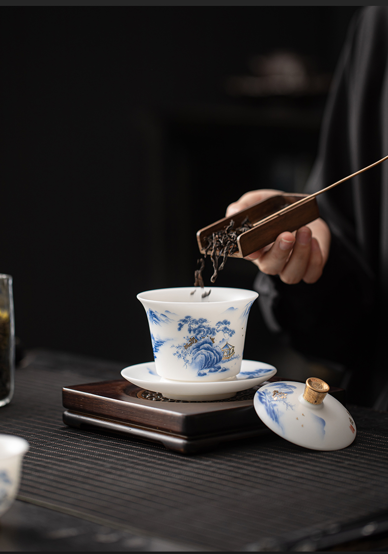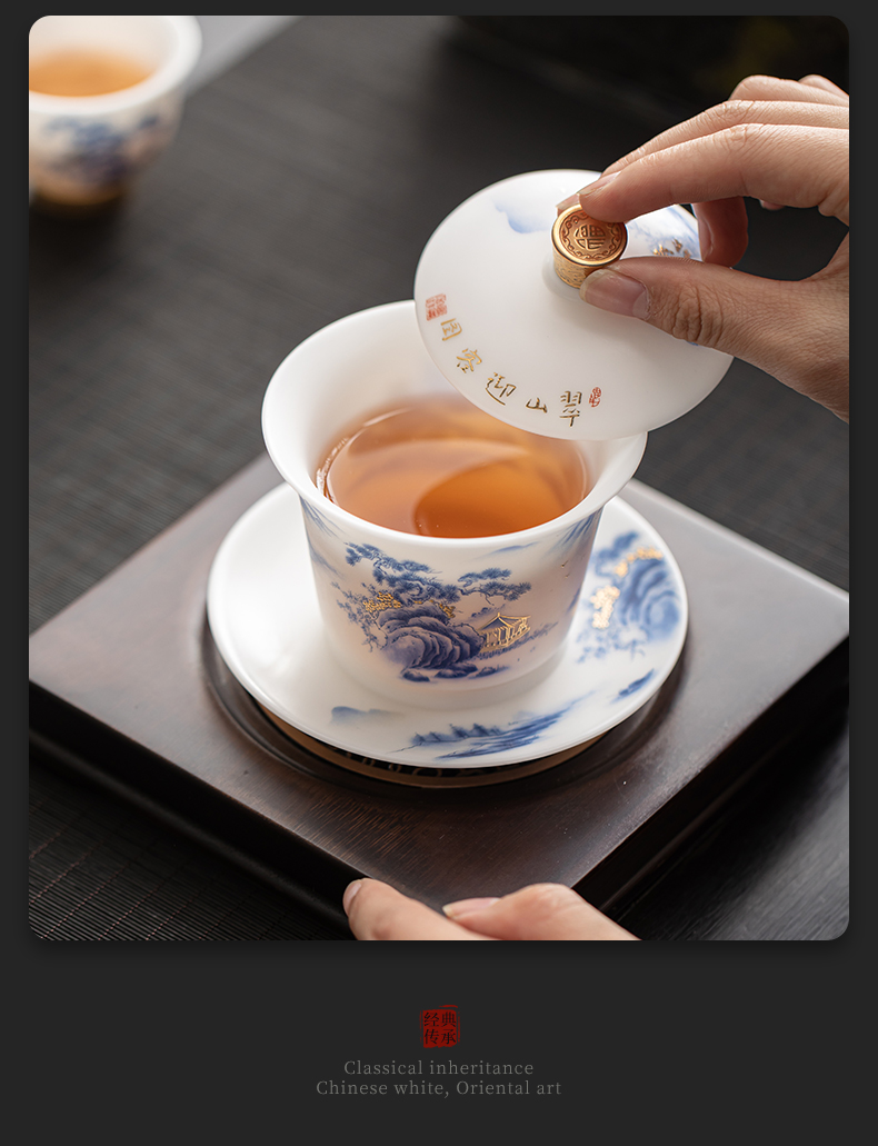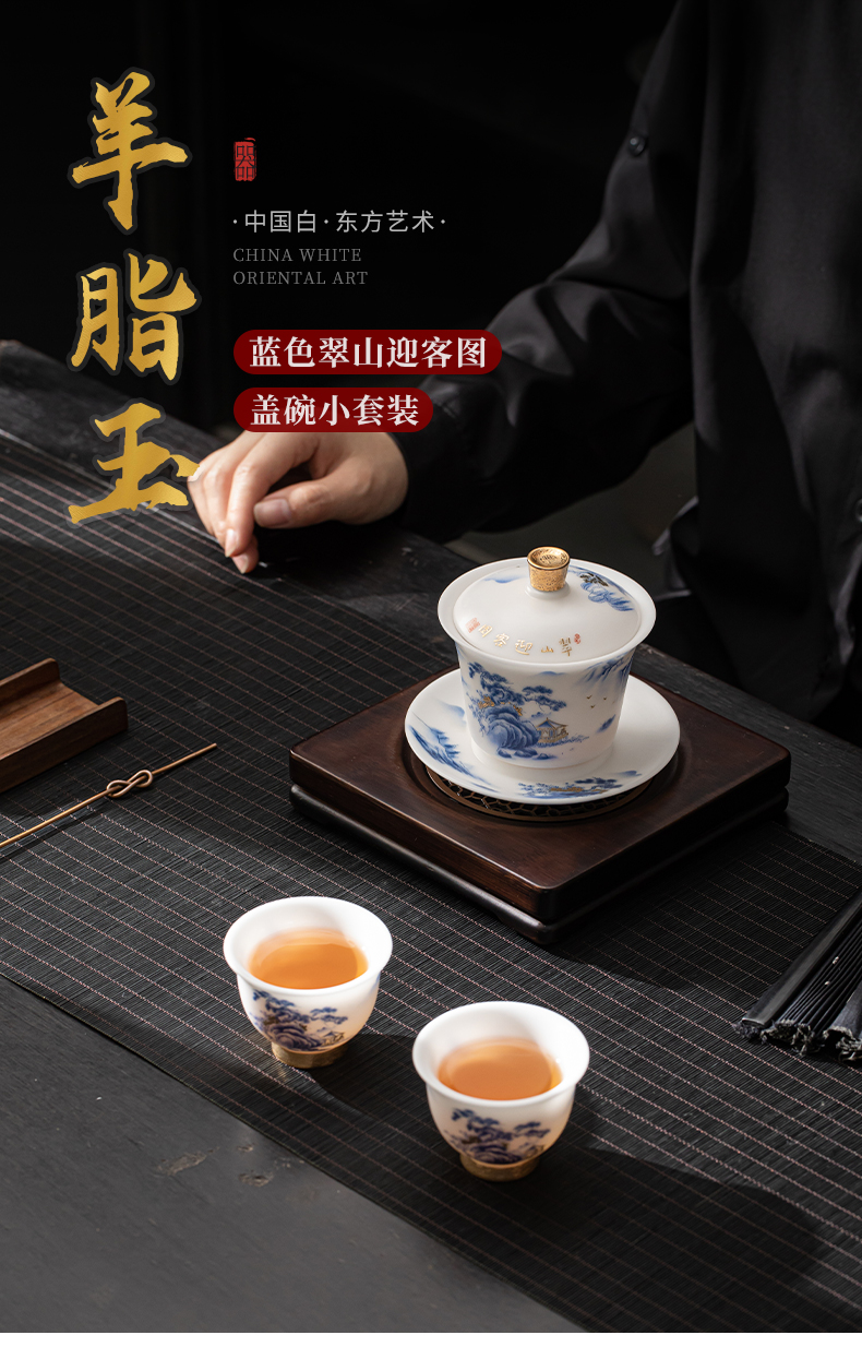 苏氏陶瓷(SUSHI CERAMICS)J1053素烧源远流长一碗两杯国家一级技师王文克作品(单位: 白色