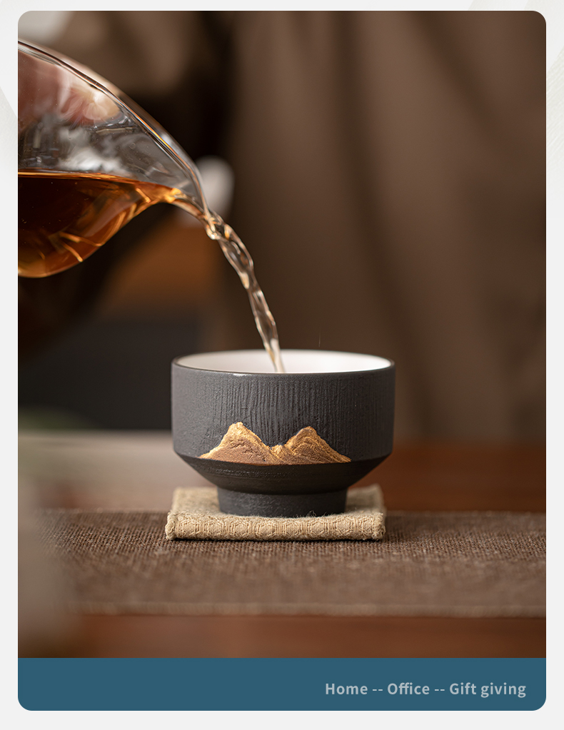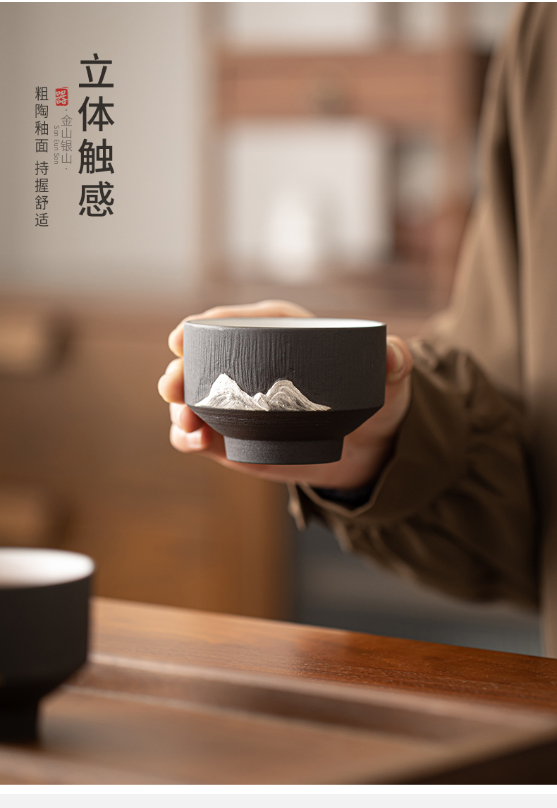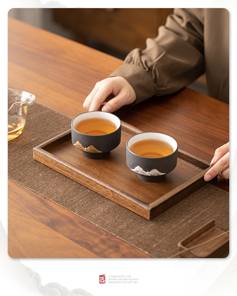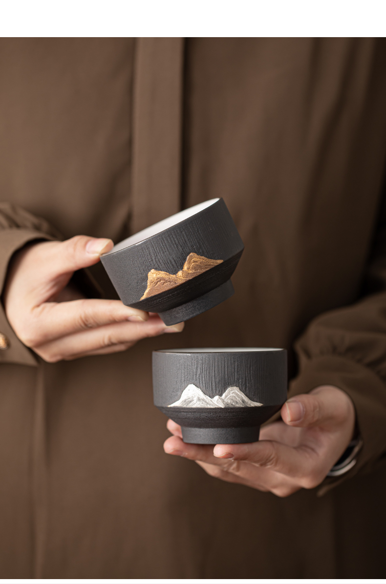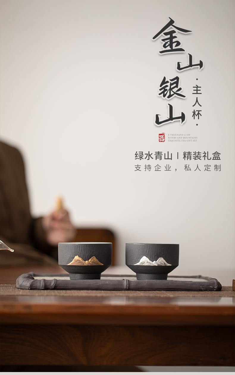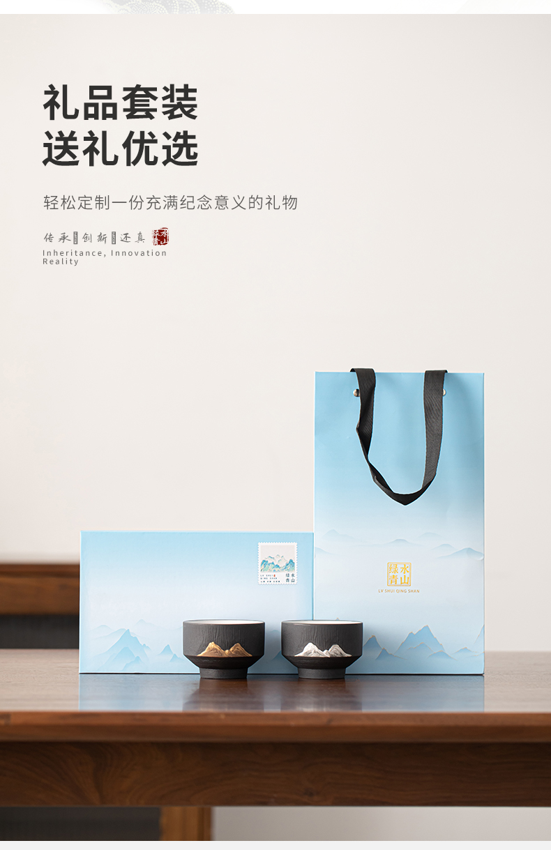 苏氏陶瓷(SUSHI CERAMICS)J1050金山银山绿水青山汝窑开片对杯伴手礼(单位:套) 黑色