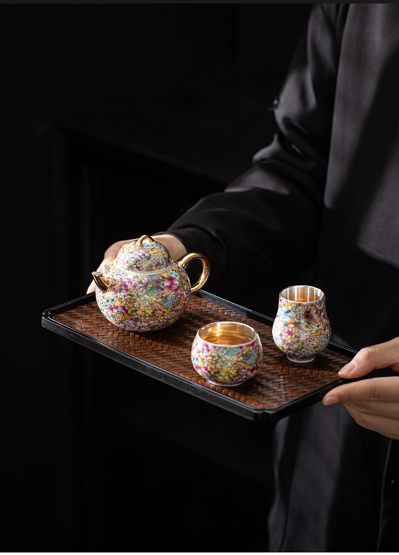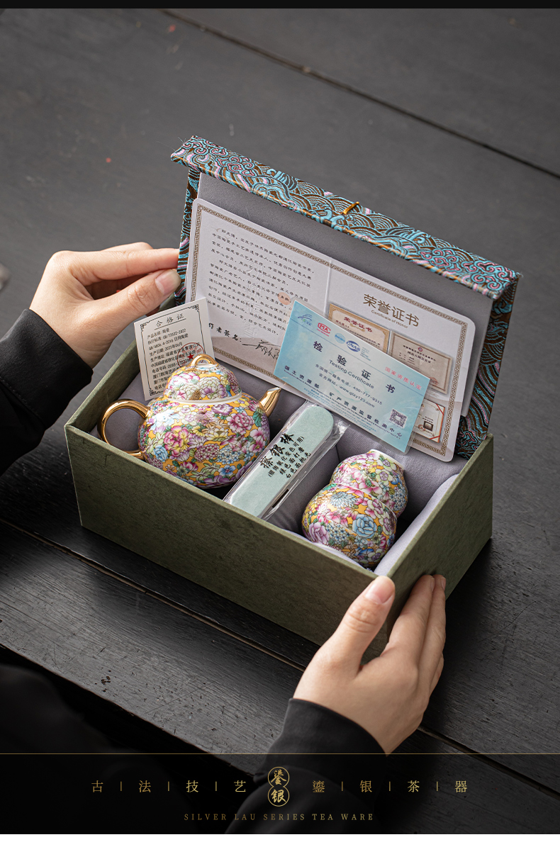苏氏陶瓷(SUSHI CERAMICS)J1043鎏银万花福禄非遗大师郑文强作品礼盒装(单位:套) 混色