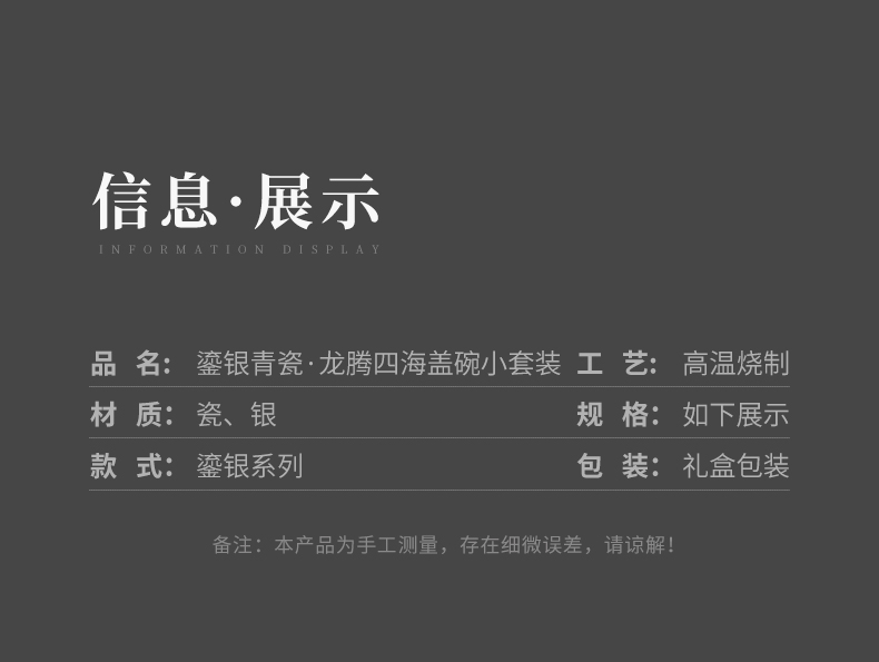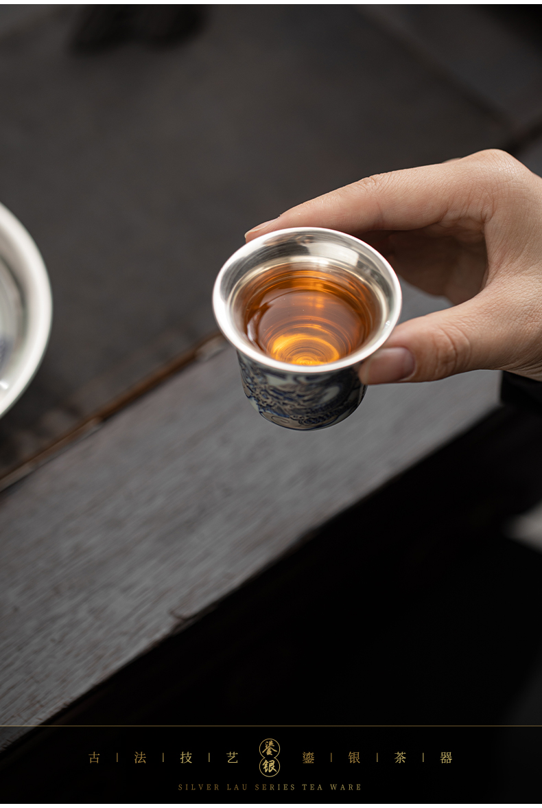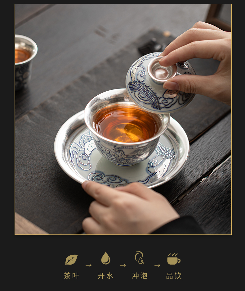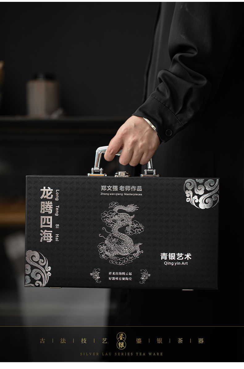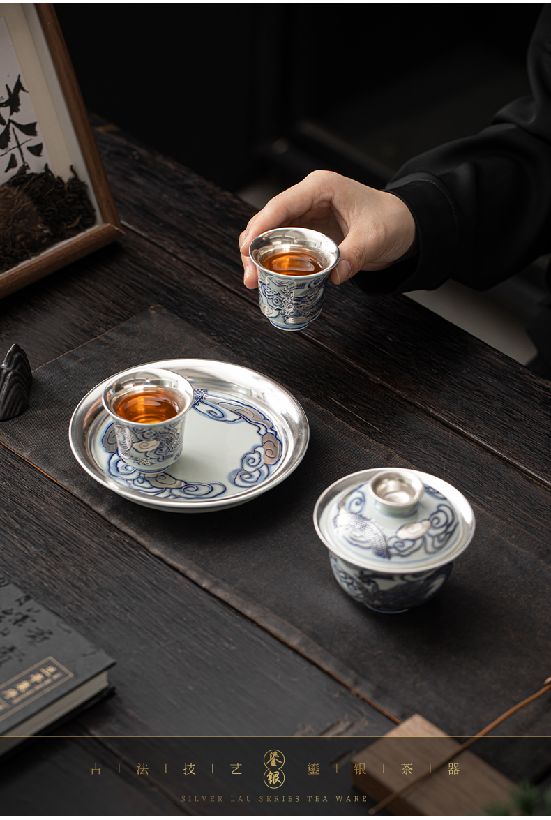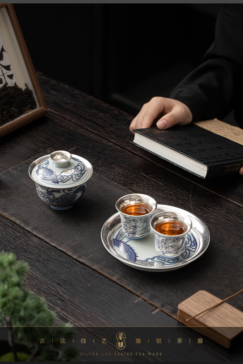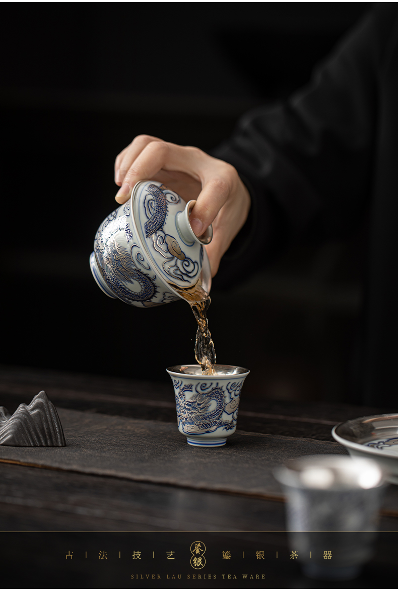 苏氏陶瓷(SUSHI CERAMICS)J1041鎏银龙腾四海一碗两杯套装非遗大师郑文强作品(单位: 银色