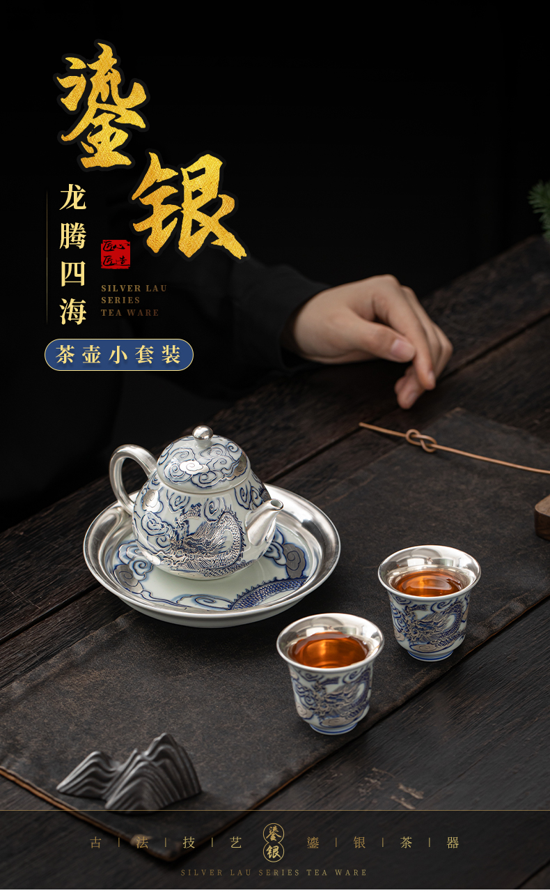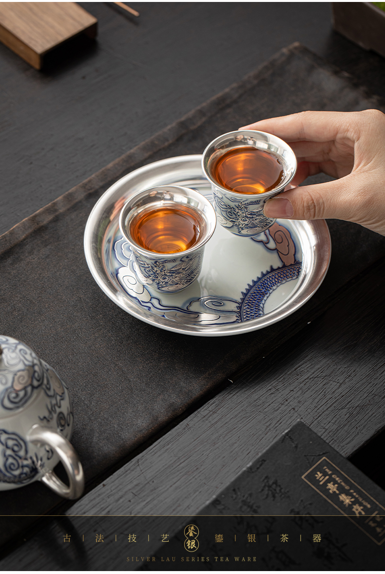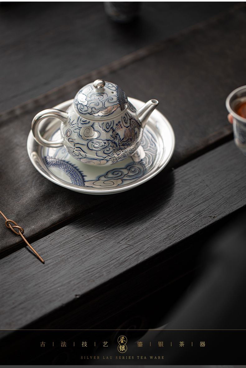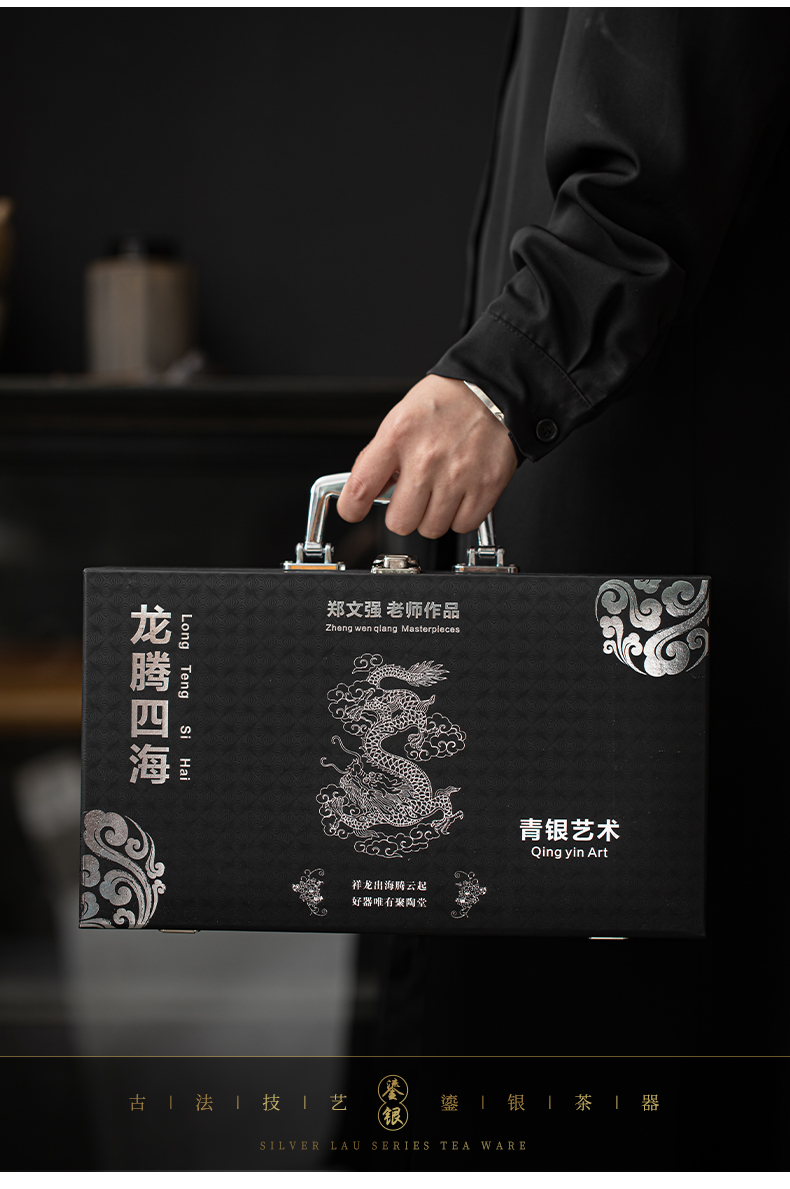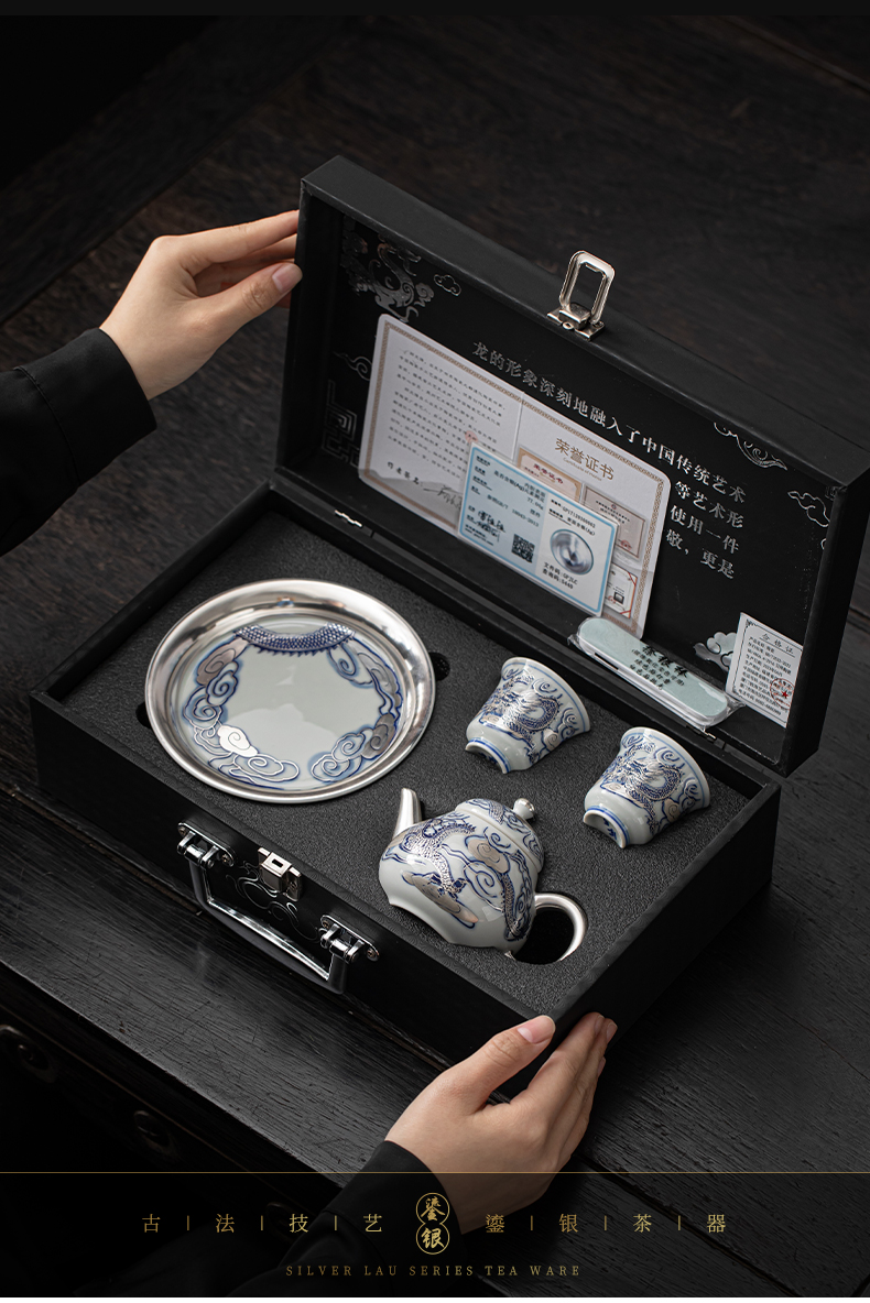 苏氏陶瓷(SUSHI CERAMICS)J1040鎏银龙腾四海一壶两杯套装非遗大师郑文强作品(单位: 银色