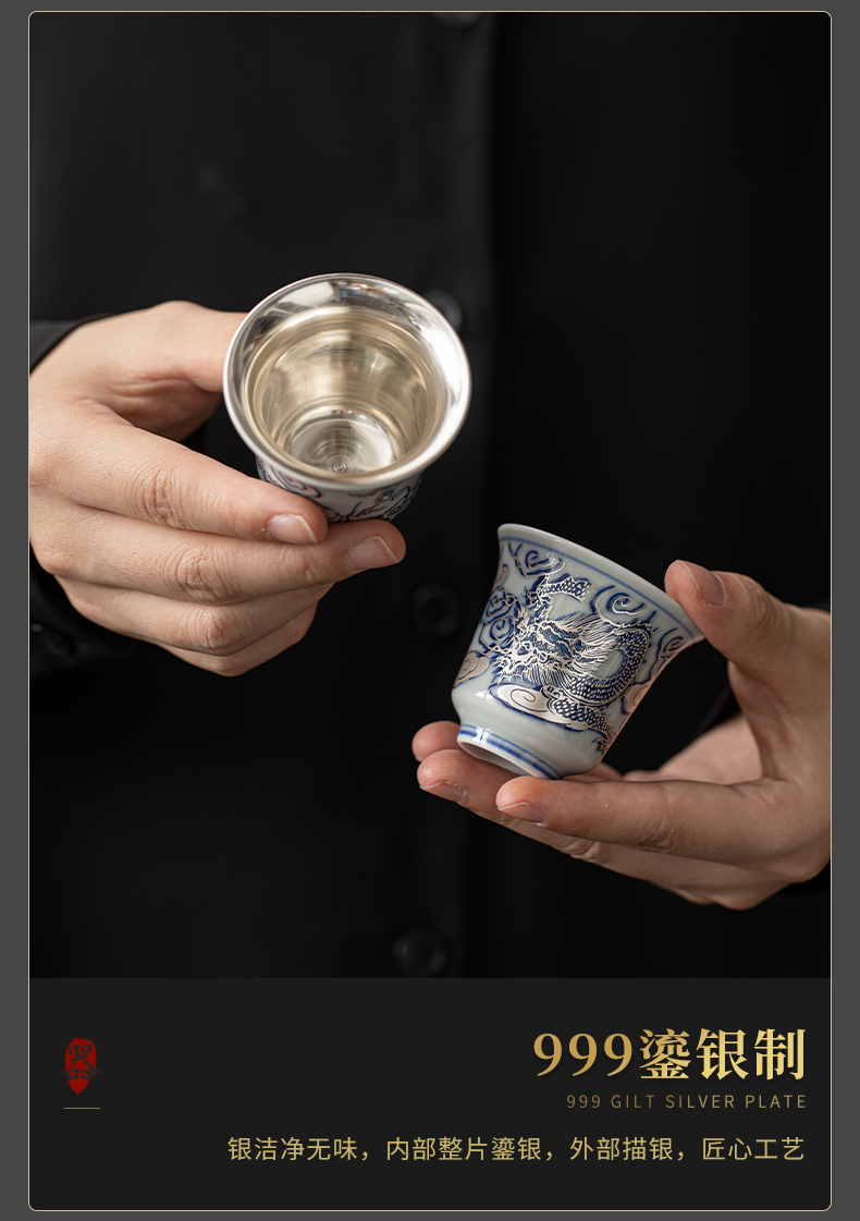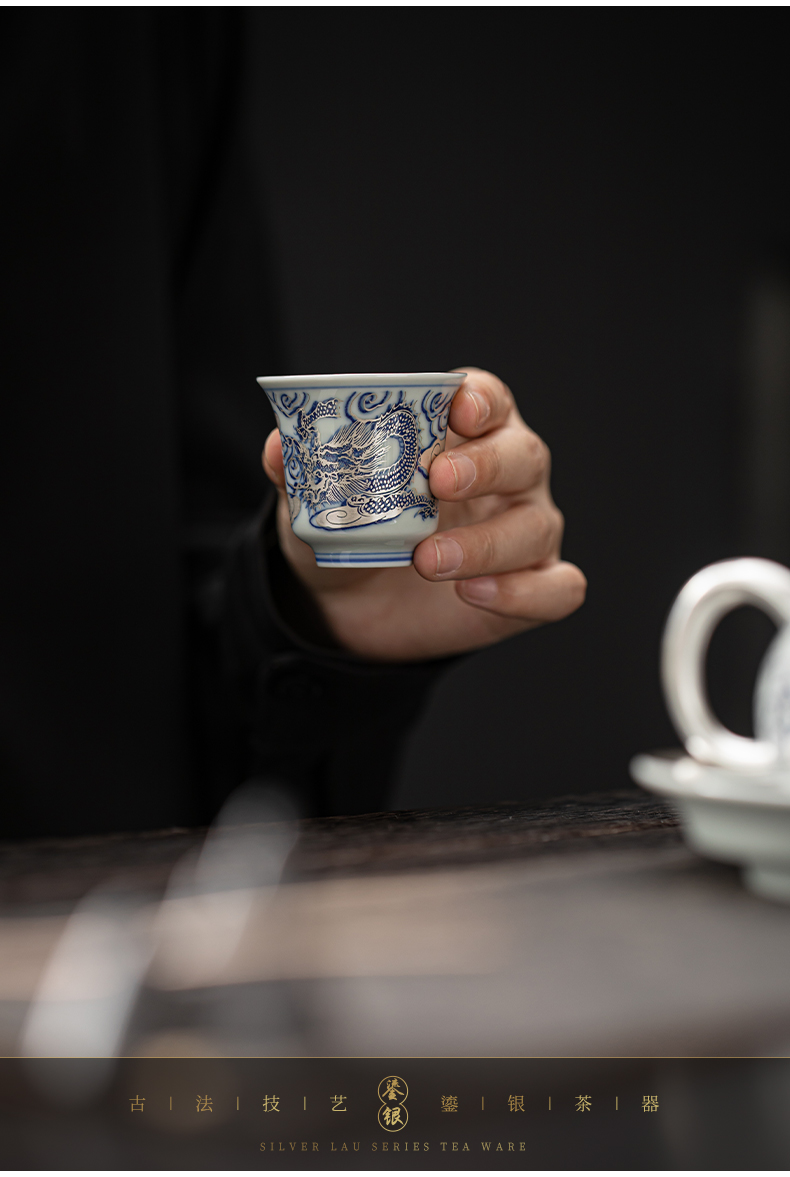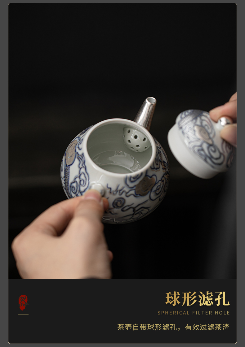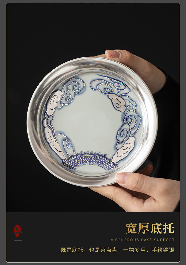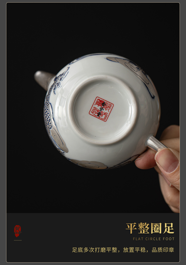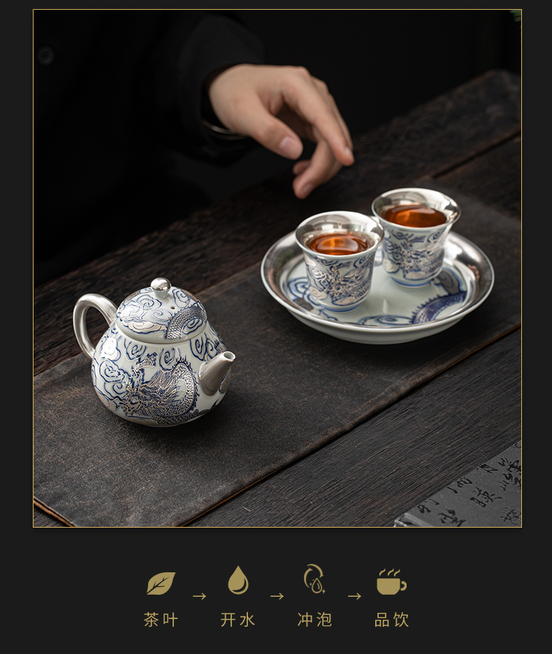 苏氏陶瓷(SUSHI CERAMICS)J1040鎏银龙腾四海一壶两杯套装非遗大师郑文强作品(单位: 银色