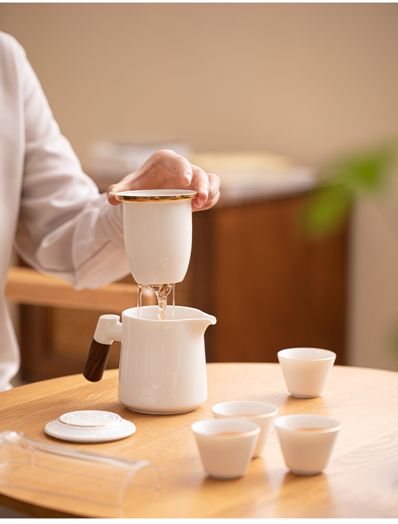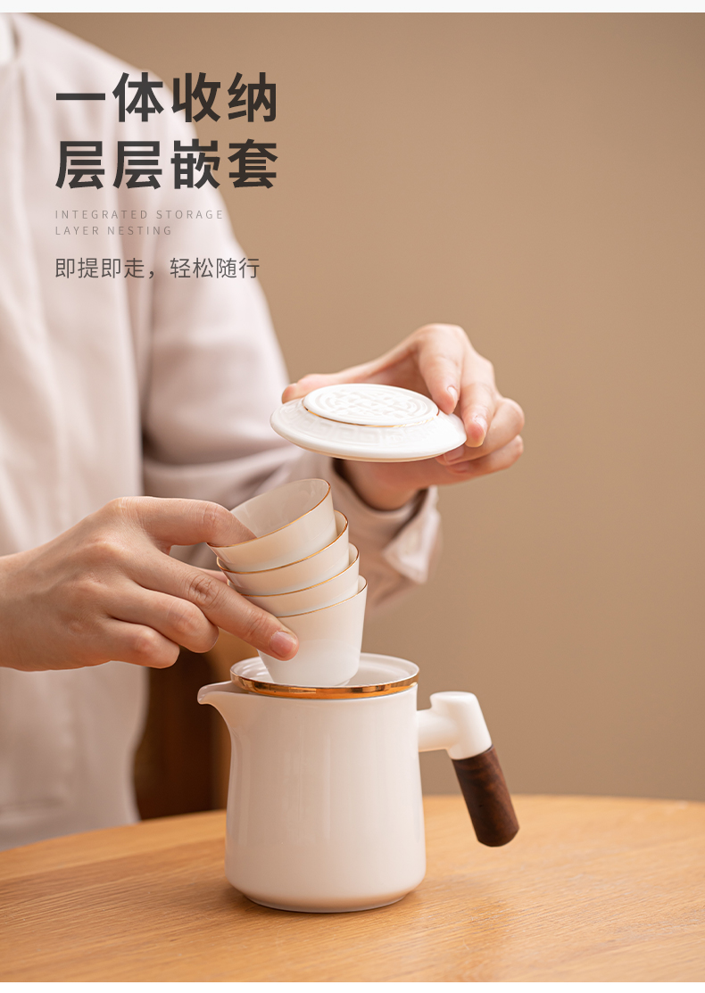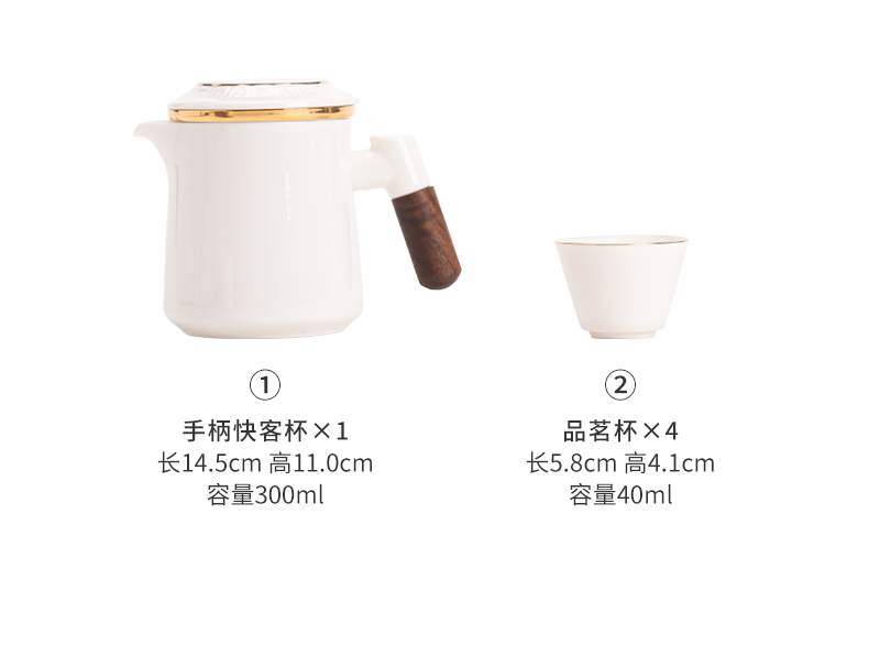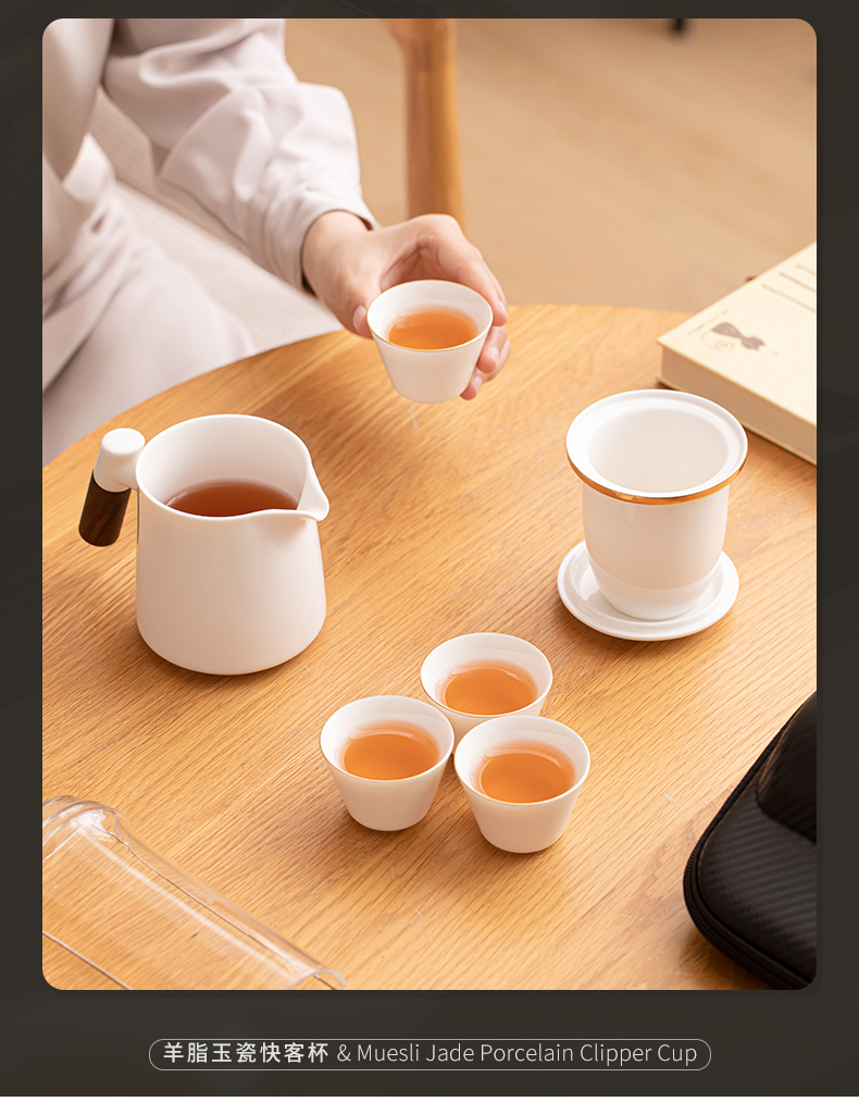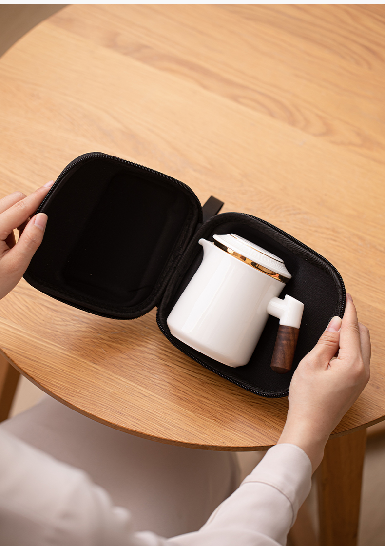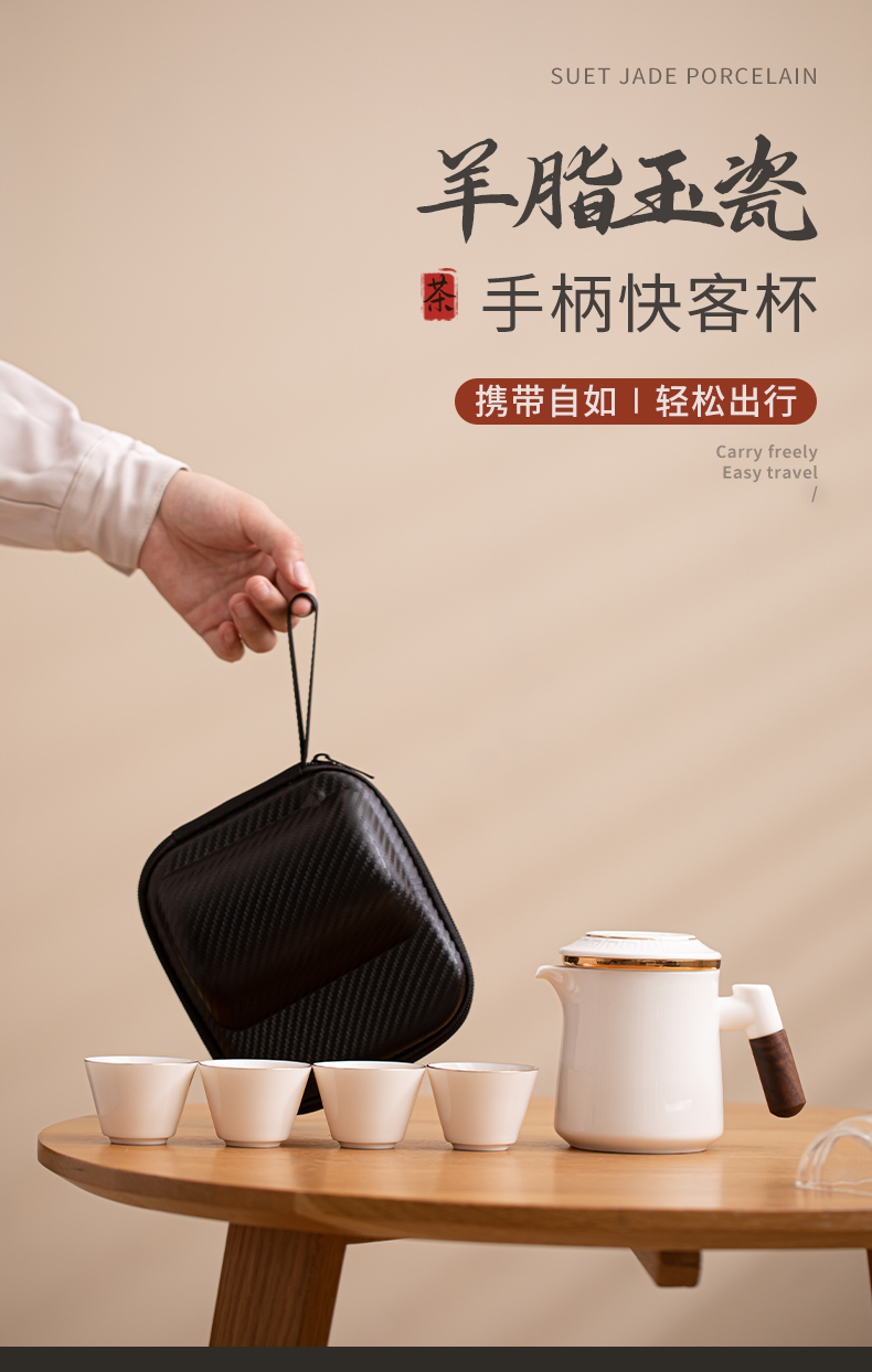 苏氏陶瓷(SUSHI CERAMICS)J1033描金羊脂玉瓷手柄快客杯旅行包茶具套装(单位:套) 白色