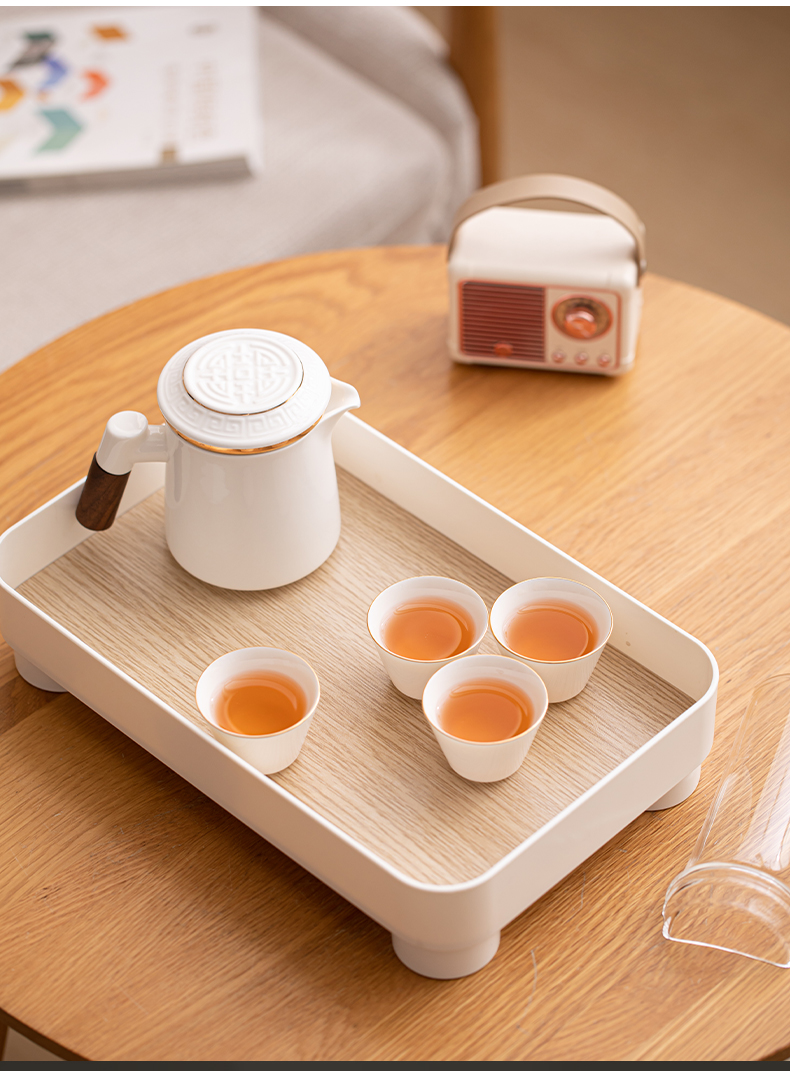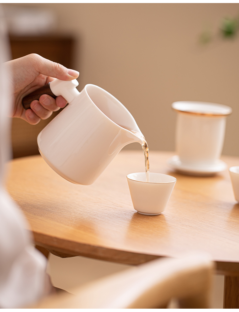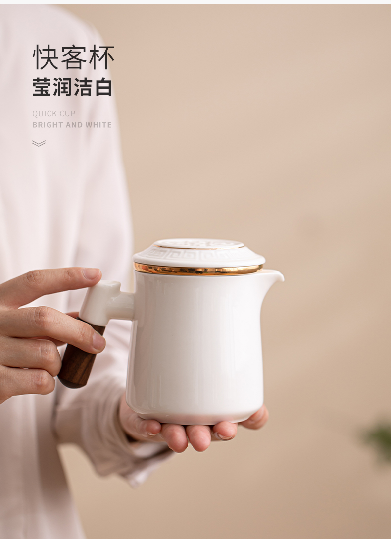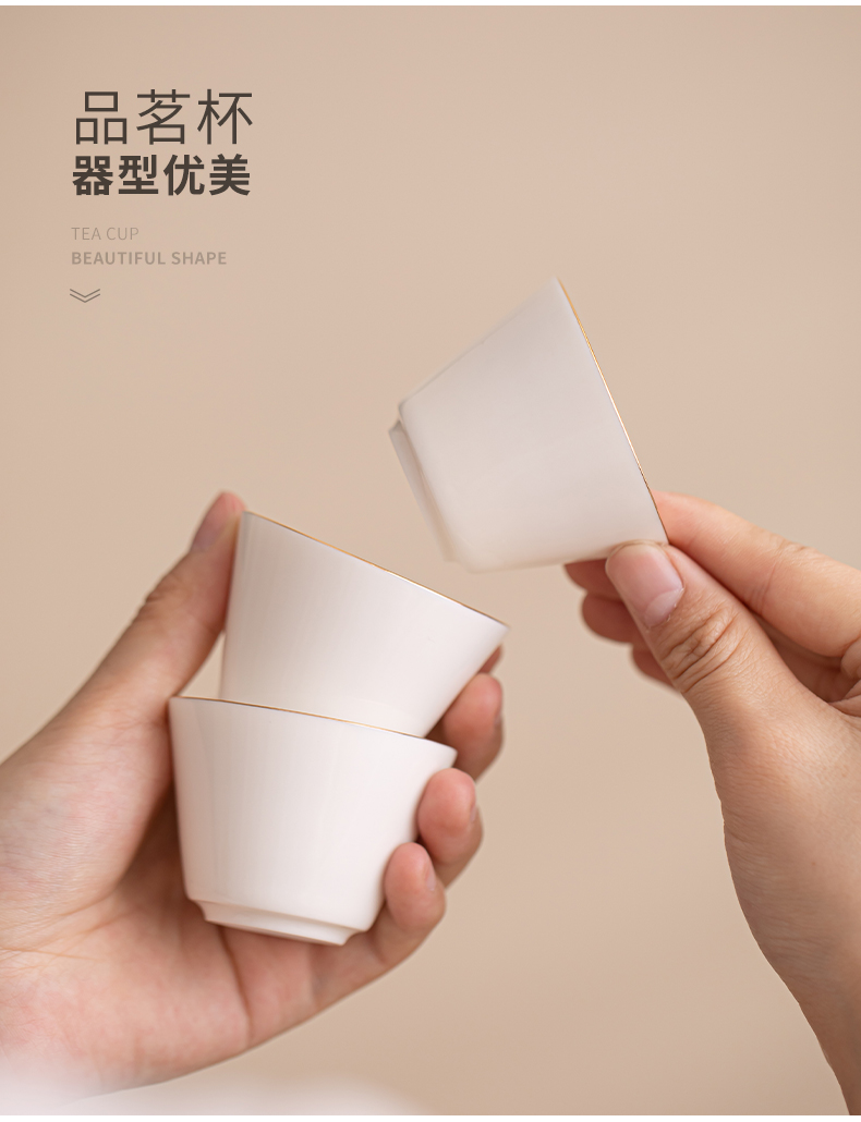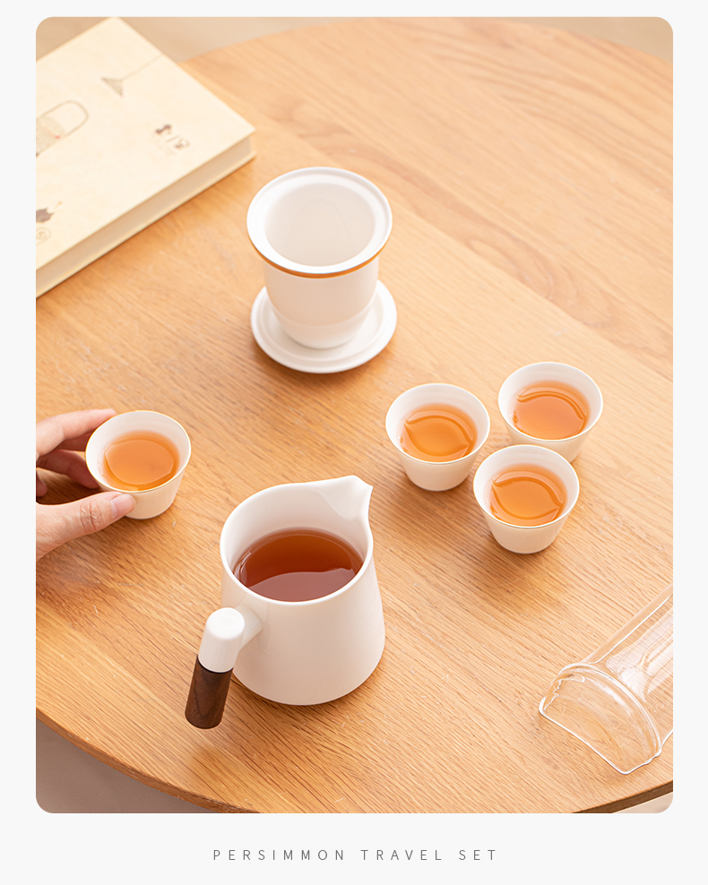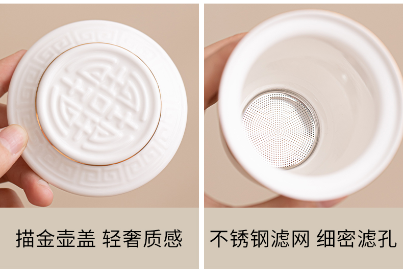苏氏陶瓷(SUSHI CERAMICS)J1033描金羊脂玉瓷手柄快客杯旅行包茶具套装(单位:套) 白色