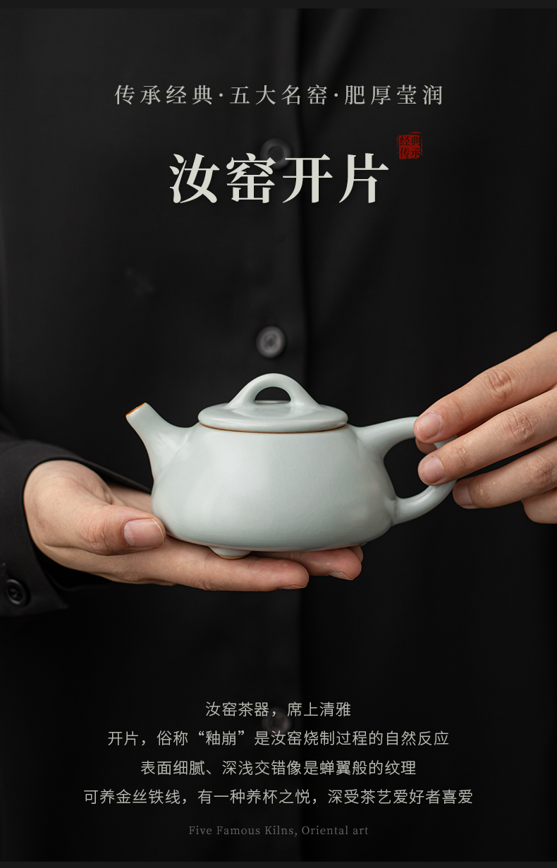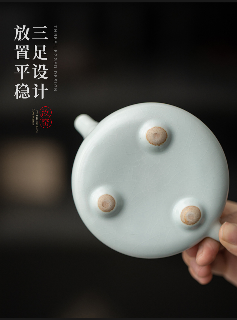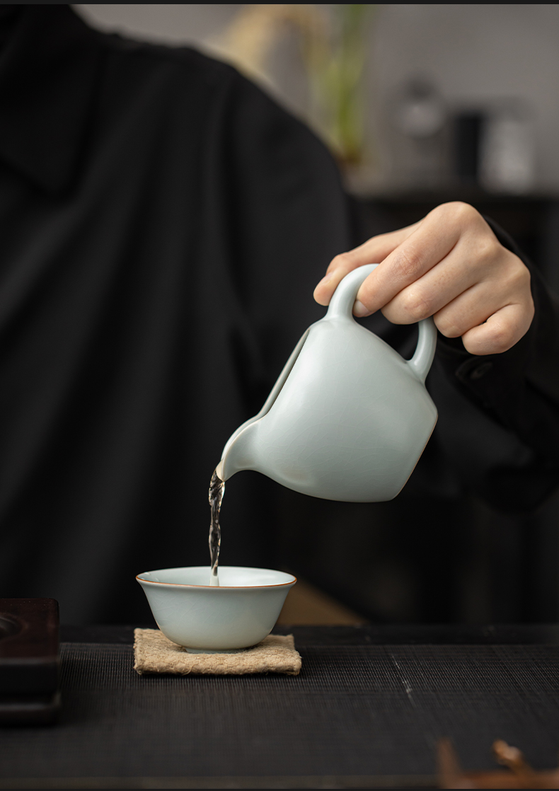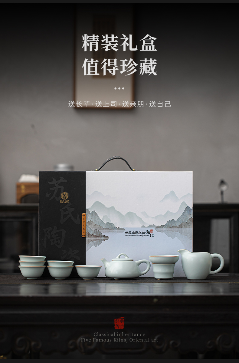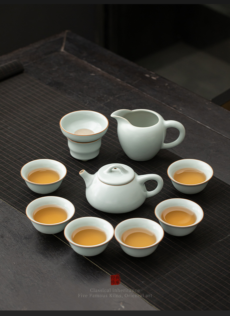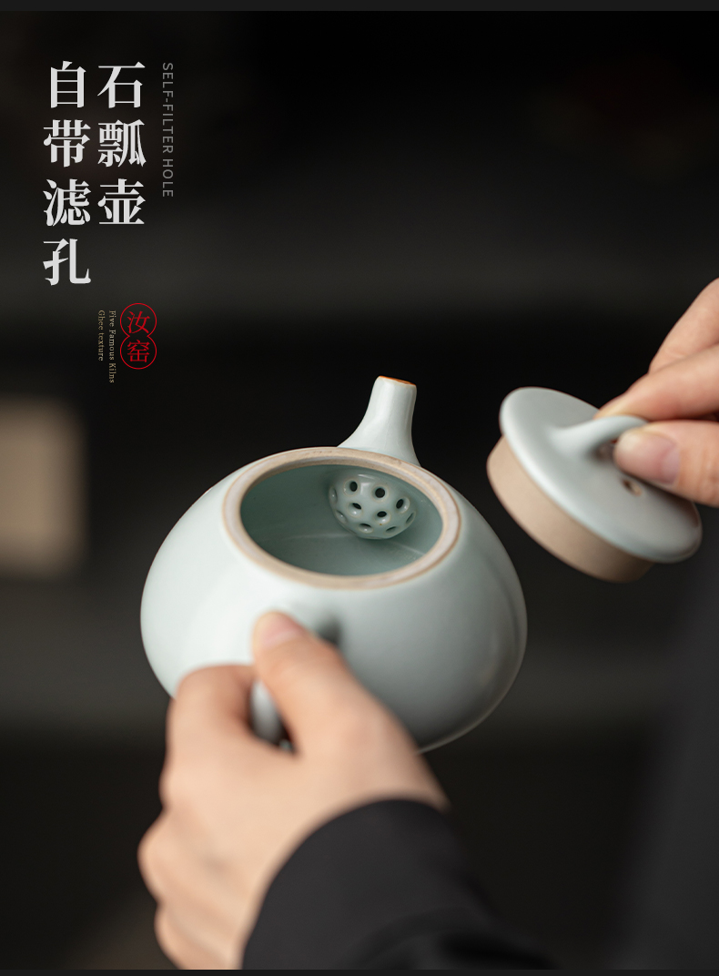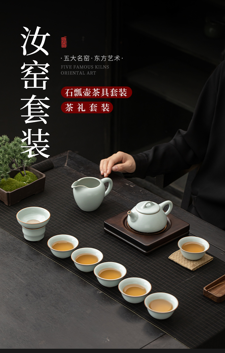 苏氏陶瓷(SUSHI CERAMICS)J1036汝窑开片石瓢壶功夫茶具可养金线礼盒装(单位:套) 天青色