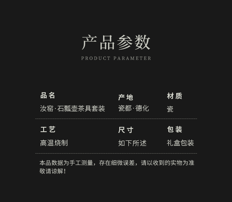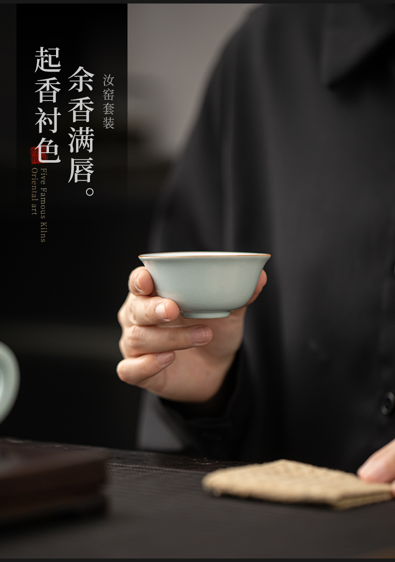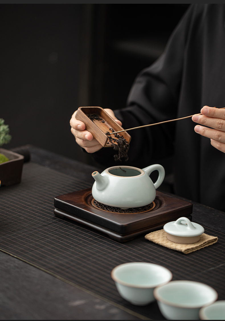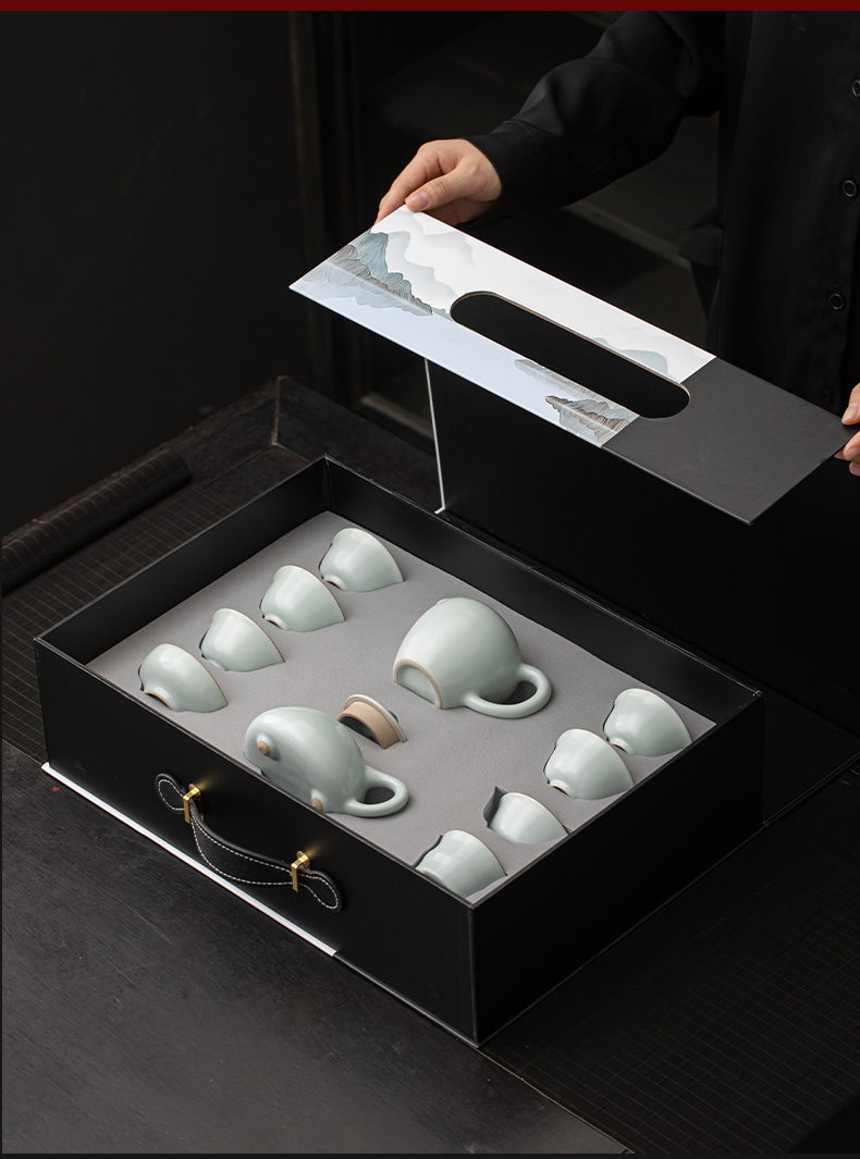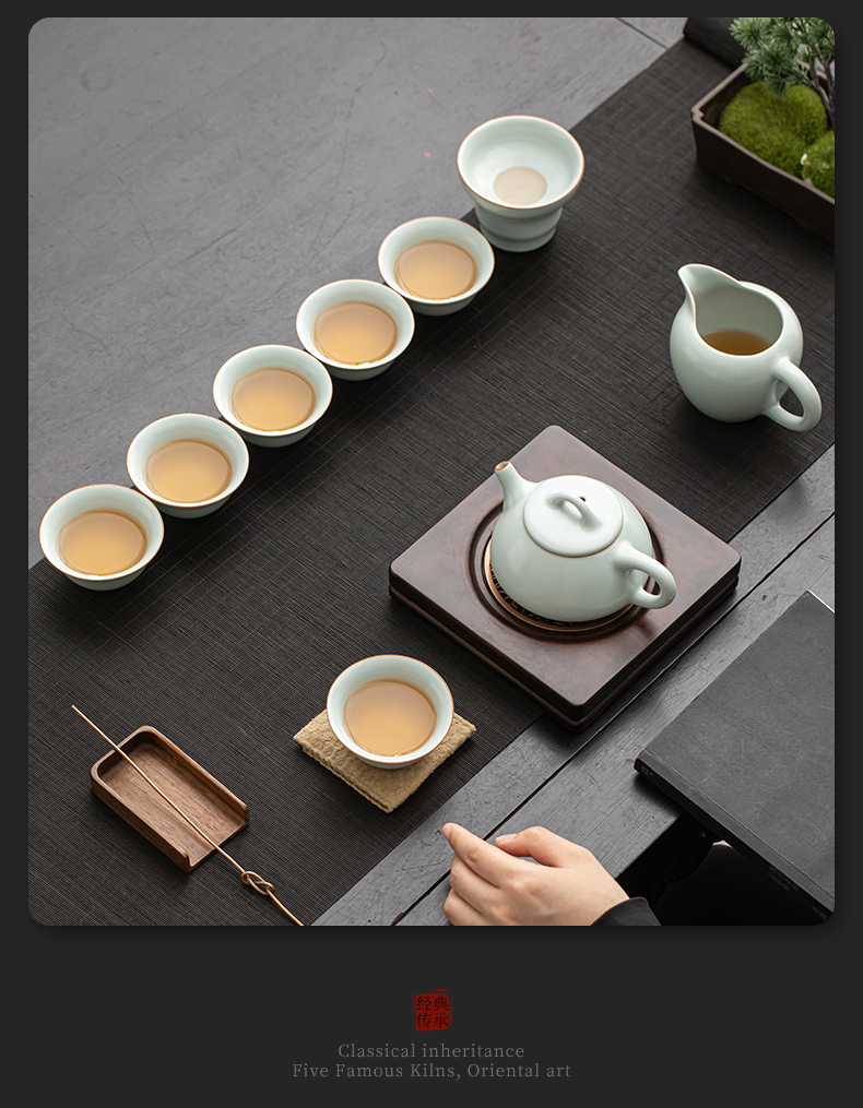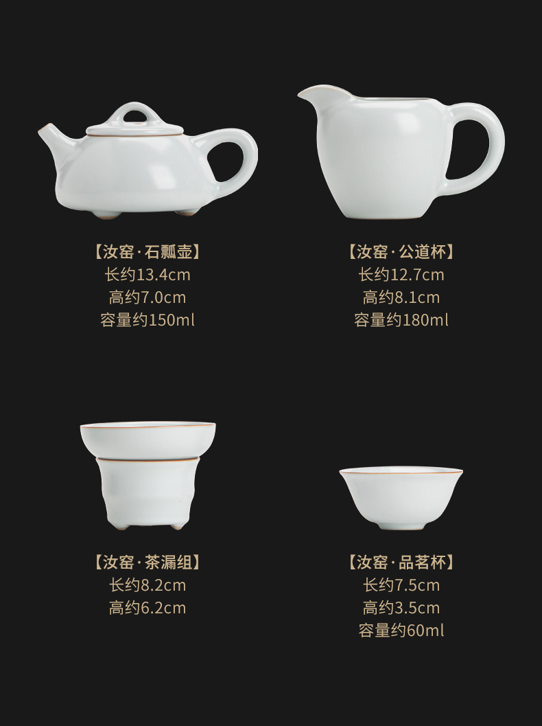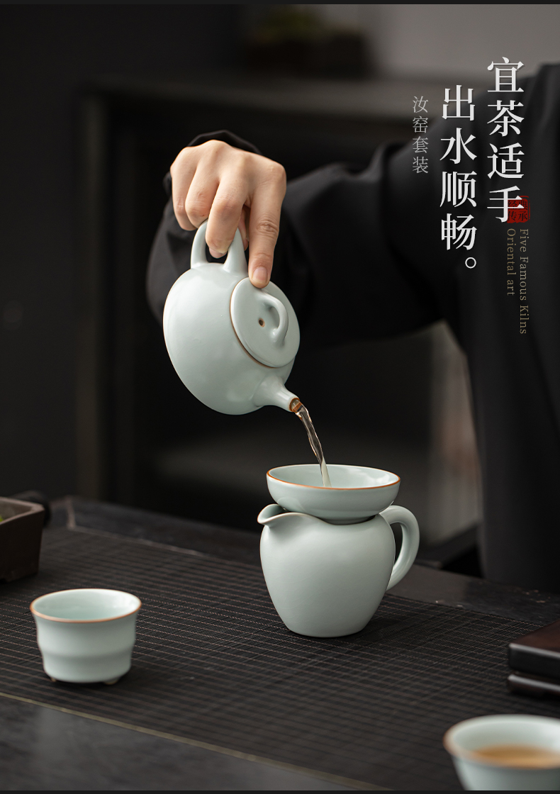 苏氏陶瓷(SUSHI CERAMICS)J1036汝窑开片石瓢壶功夫茶具可养金线礼盒装(单位:套) 天青色