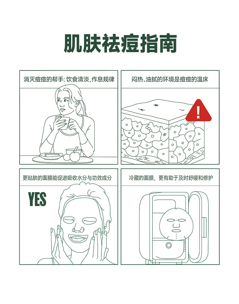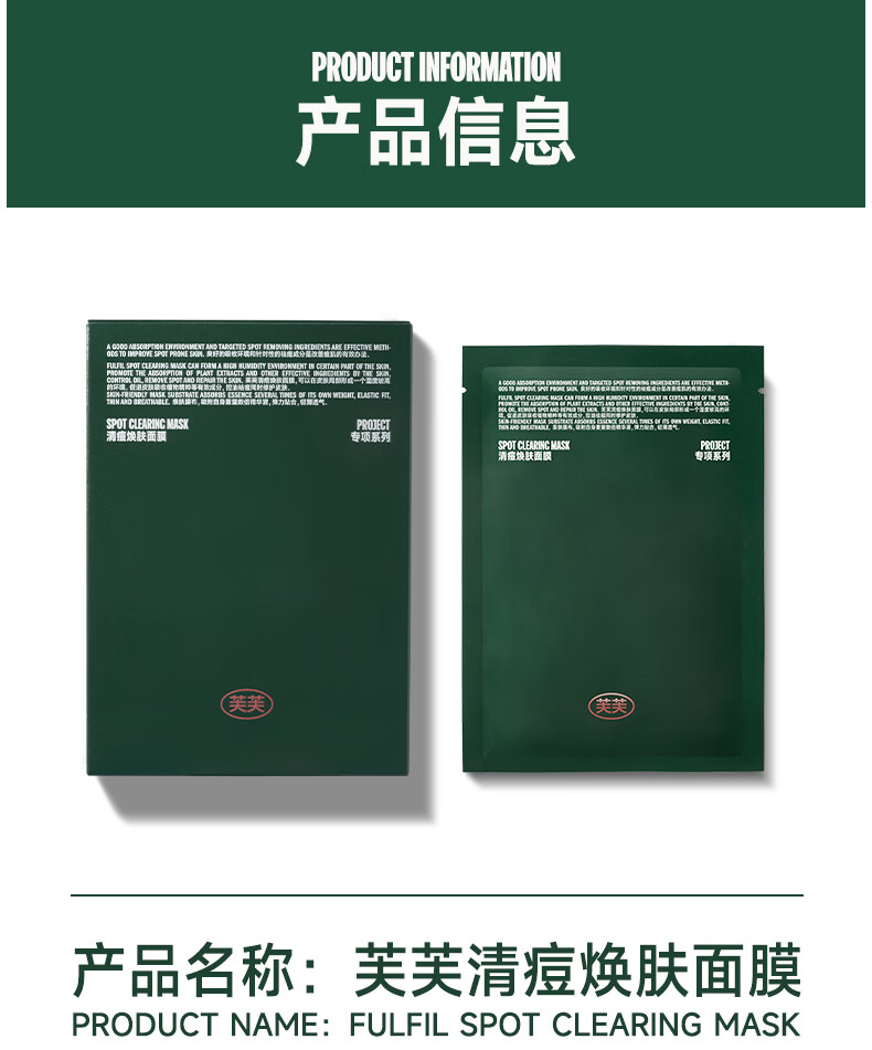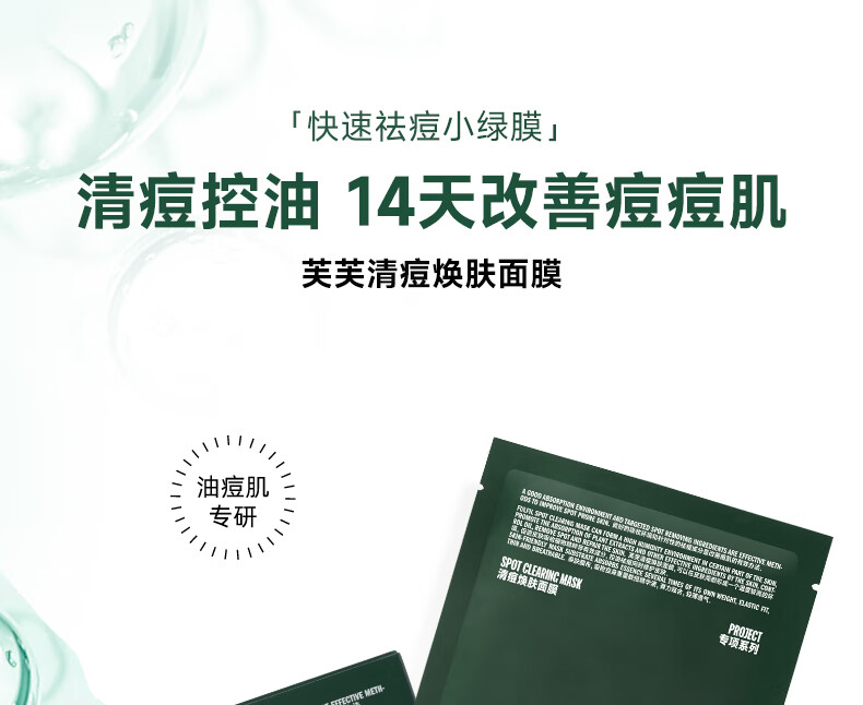 芙芙清痘焕肤面膜5片 保湿修护痘肌清痘祛痘(单位:盒) 深绿色