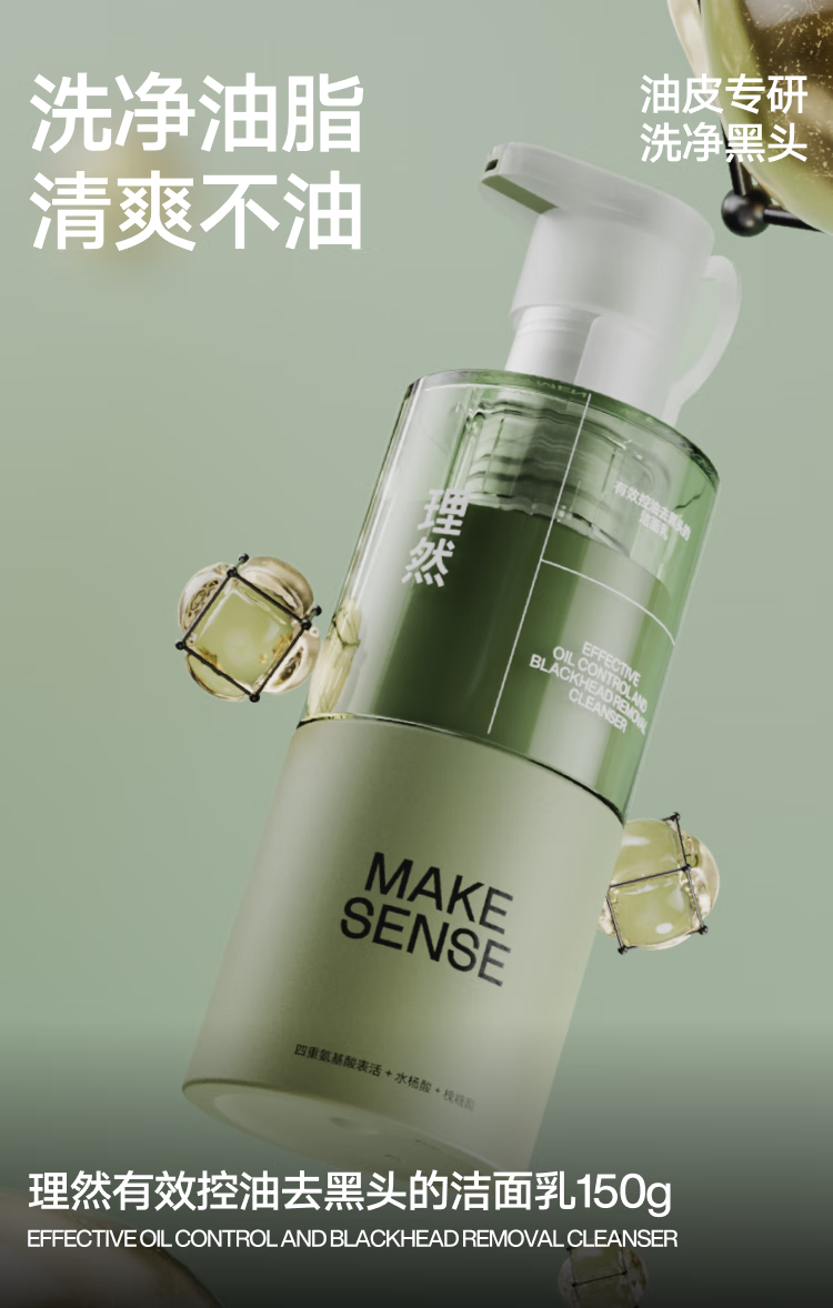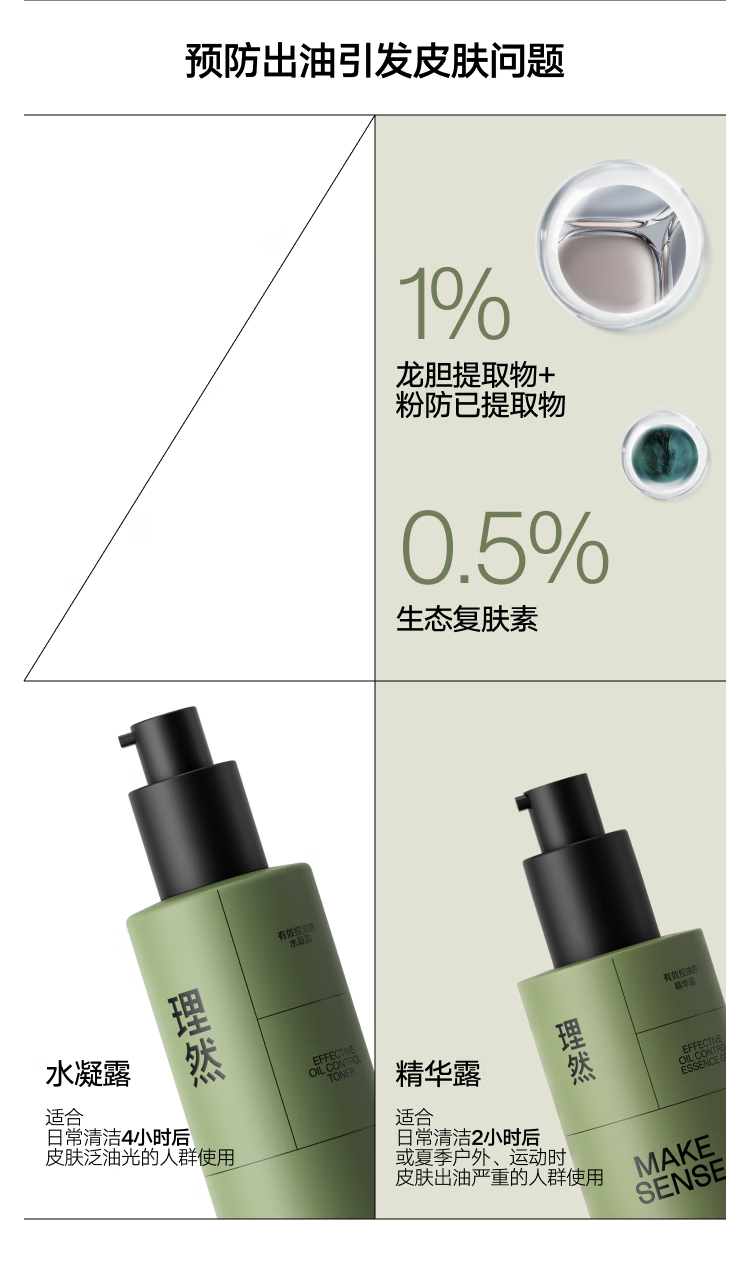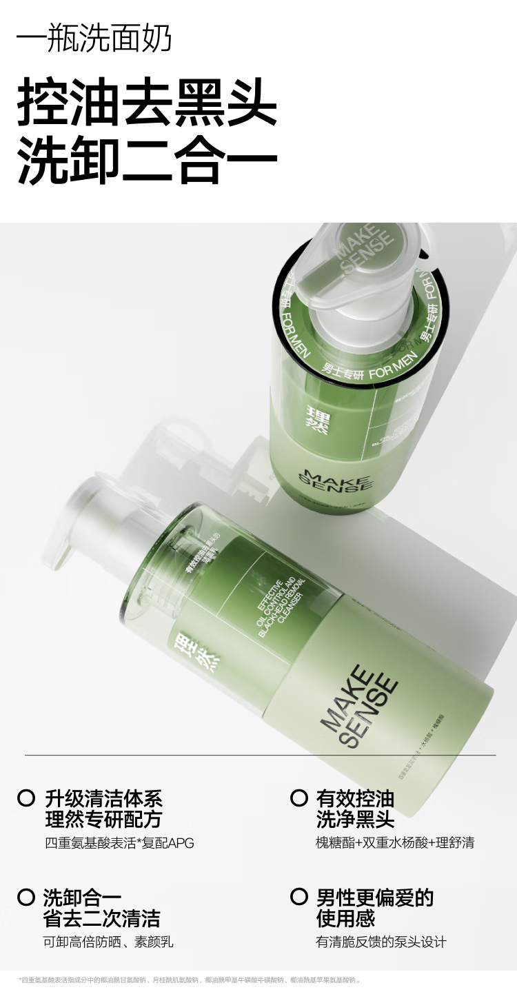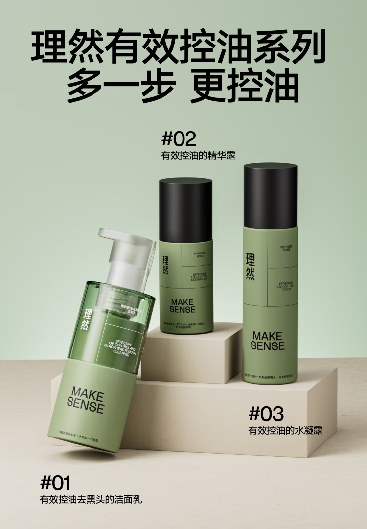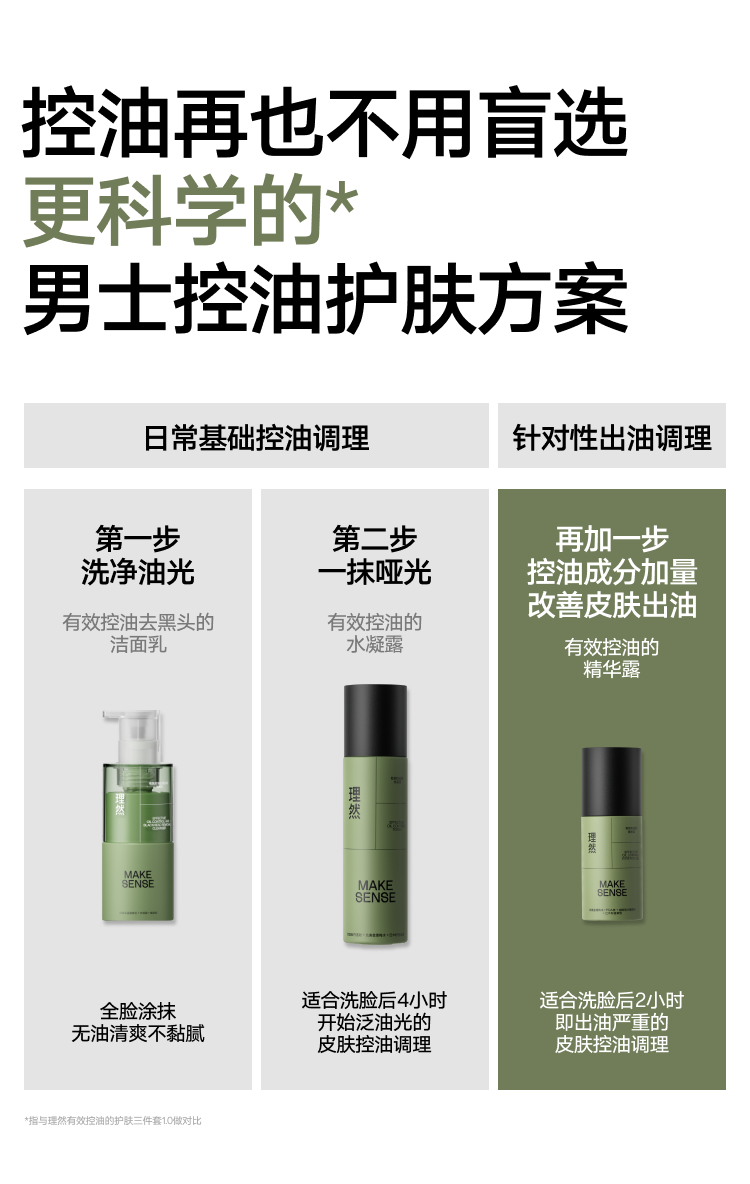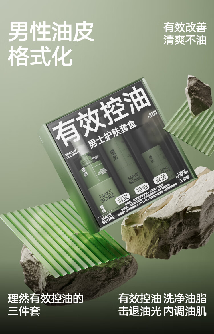 理然男士控油洁面护肤套装 氨基酸洗面奶控油凝露精华油皮男士护肤品三件套(单位:套) 翡翠绿