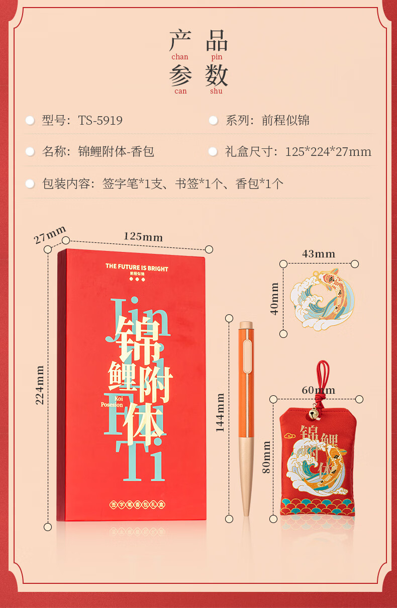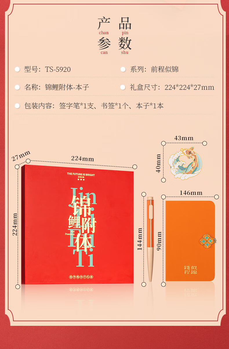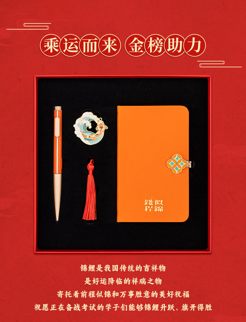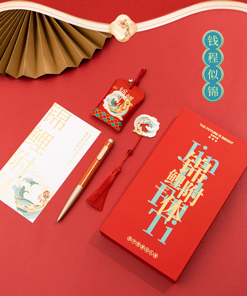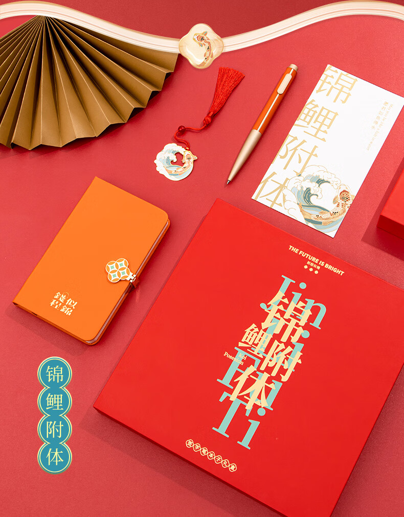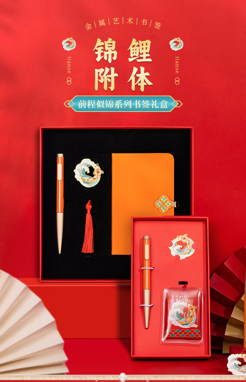 天色 前程似锦锦鲤附体3件套装伴手礼送学生教师节礼物男女 TS-5920 锦鲤书签笔本礼盒 套 红色