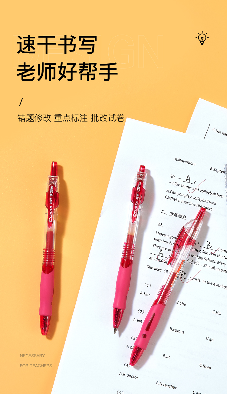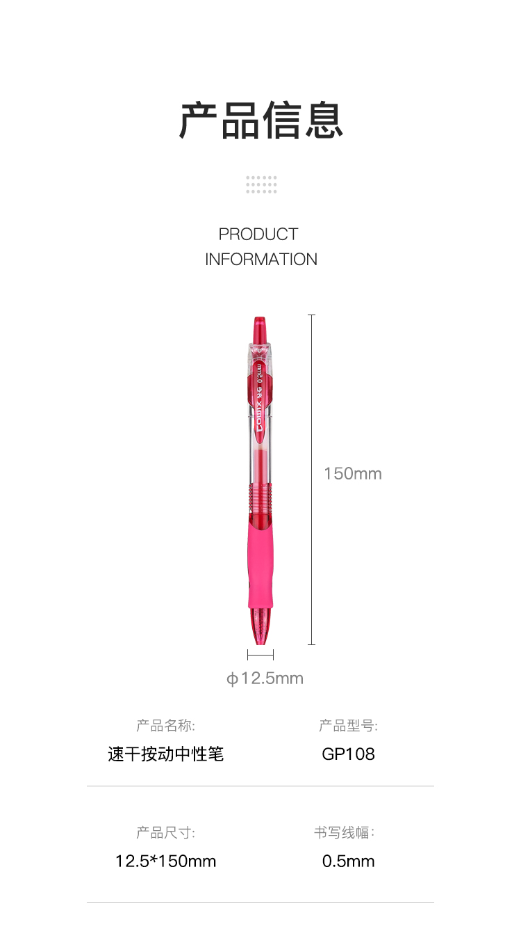齐心 GP108 速干按动中性笔弹簧子弹头 0.5mm12支/盒 蓝色