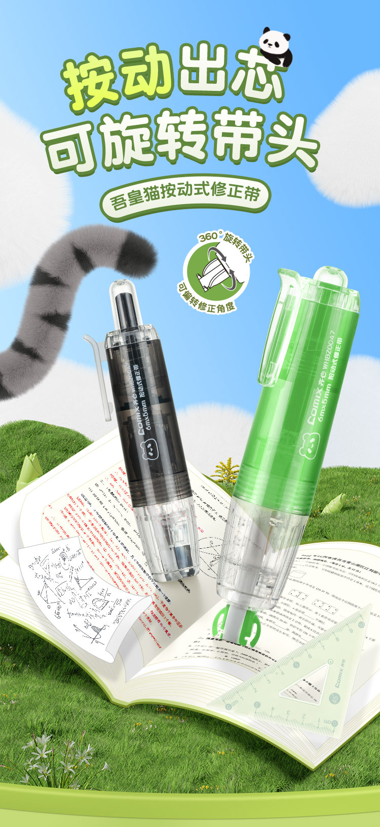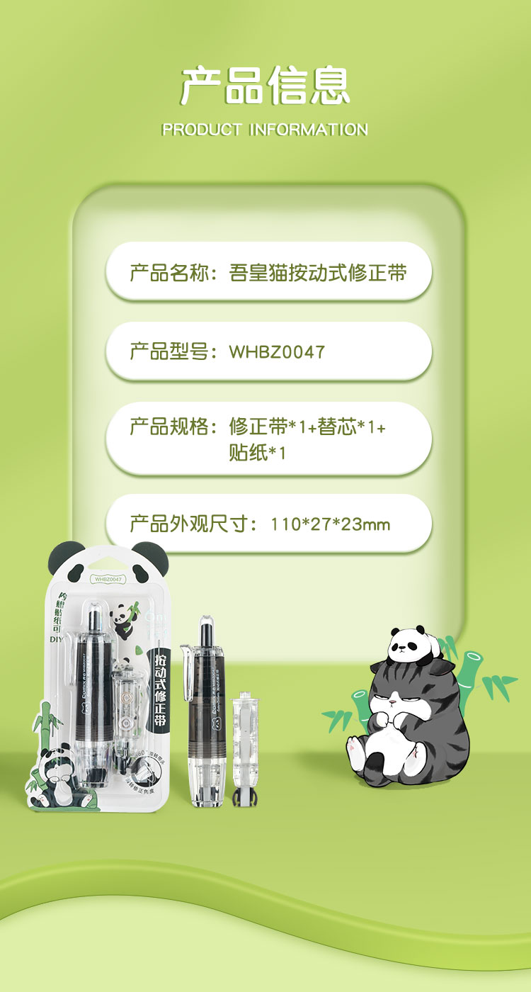 齐心 WHBZ0047 猫猫熊 按动式修正带 1支+1替芯(吾皇猫)套 黑绿色混发 黑绿色混发