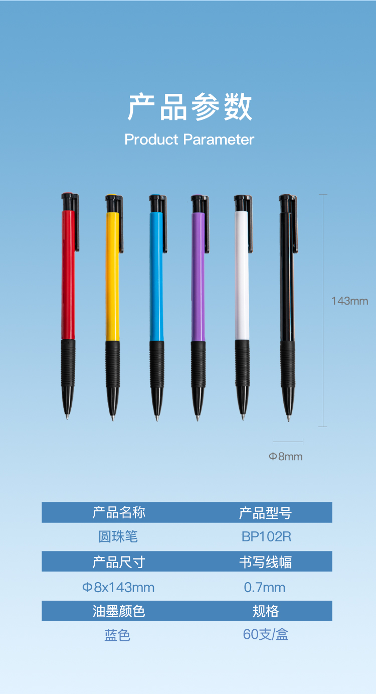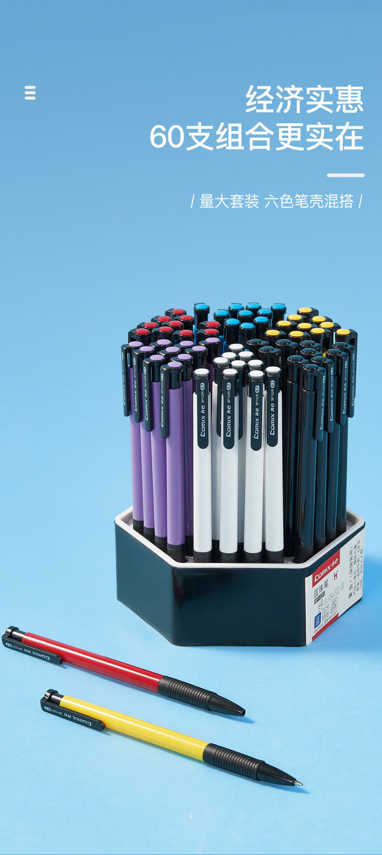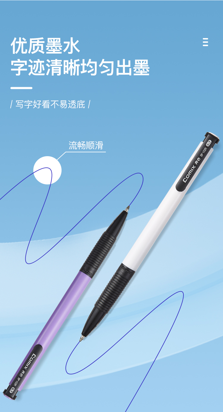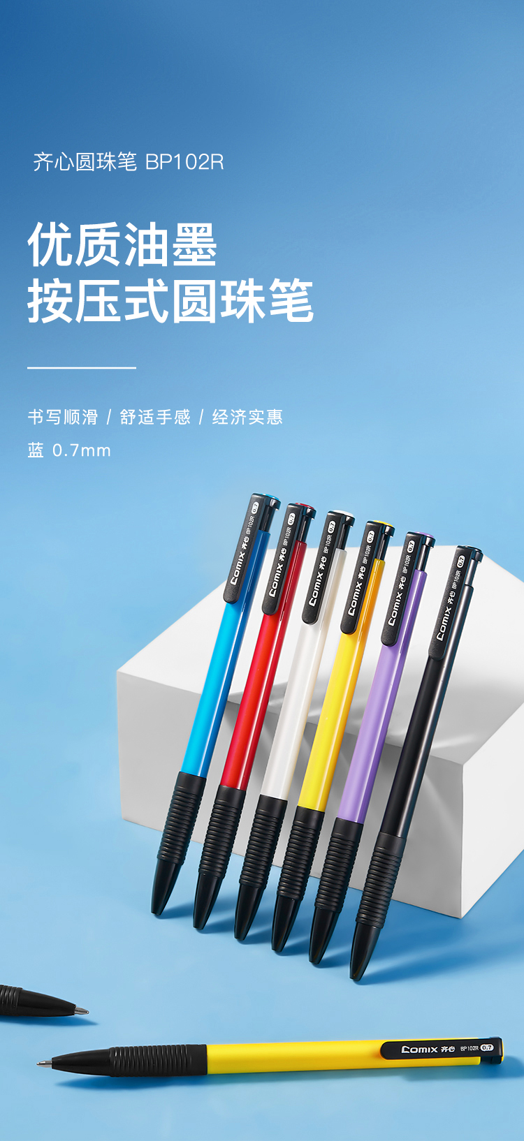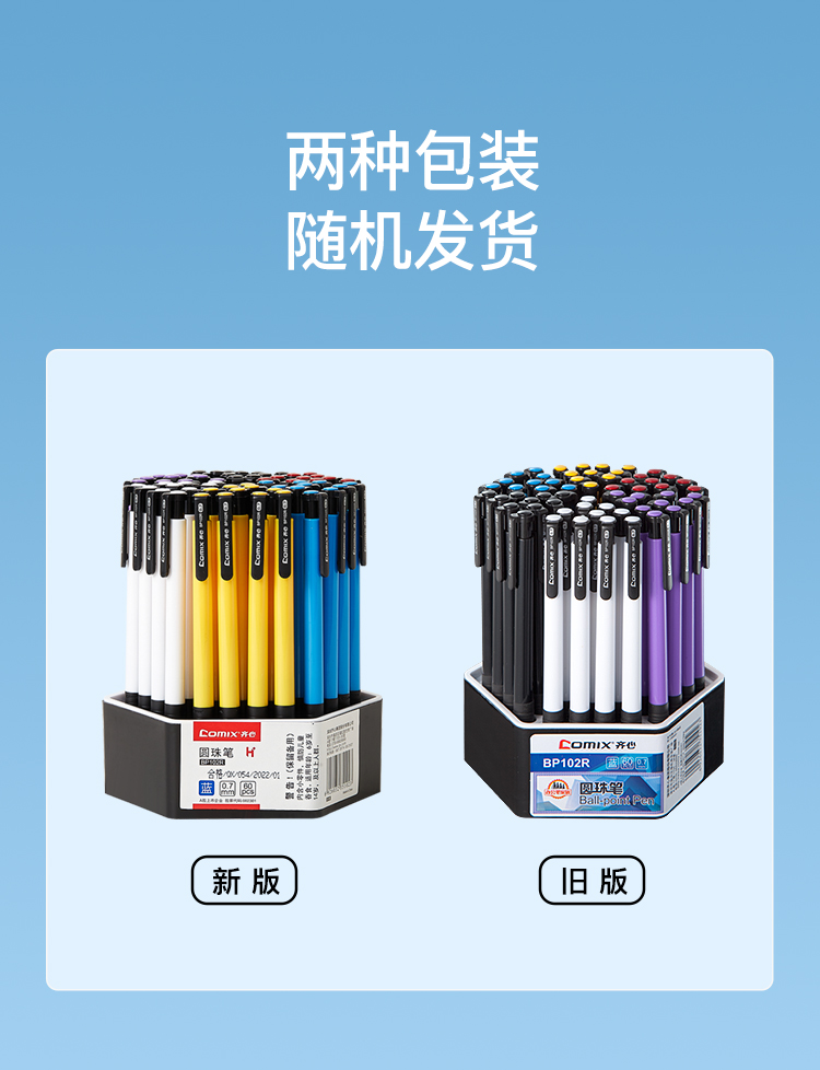 齐心(COMIX) BP102R 0.7mm 超值圆珠笔 60支/盒 蓝色