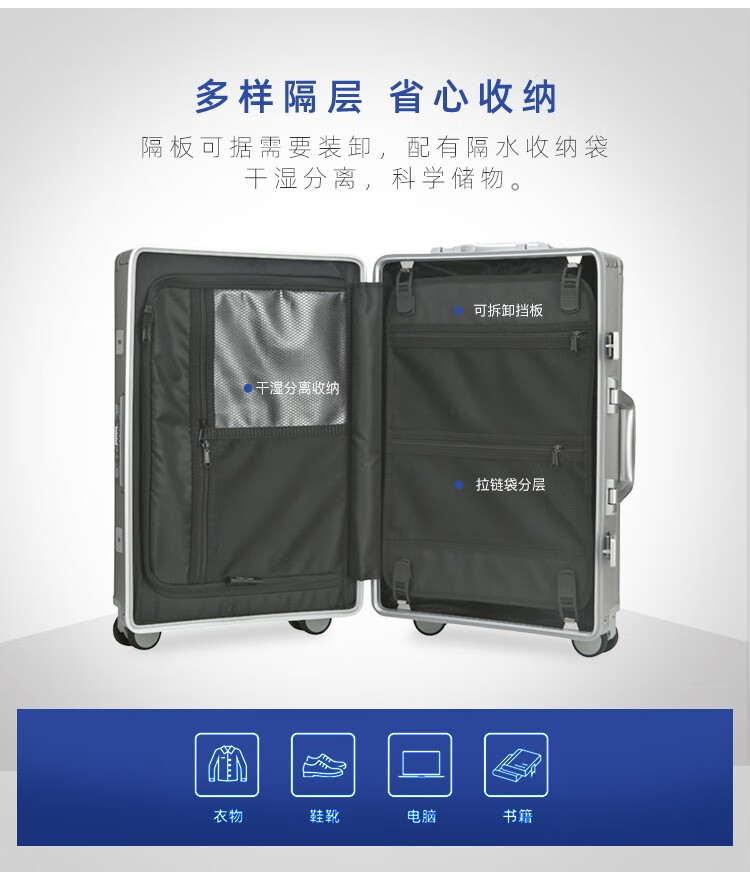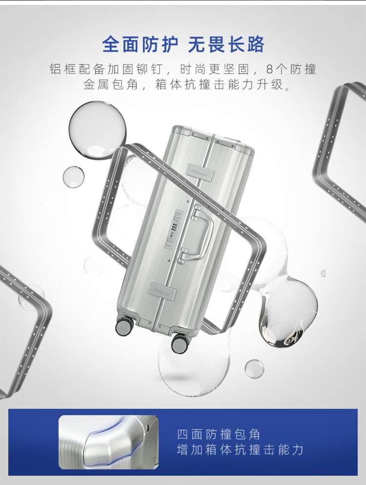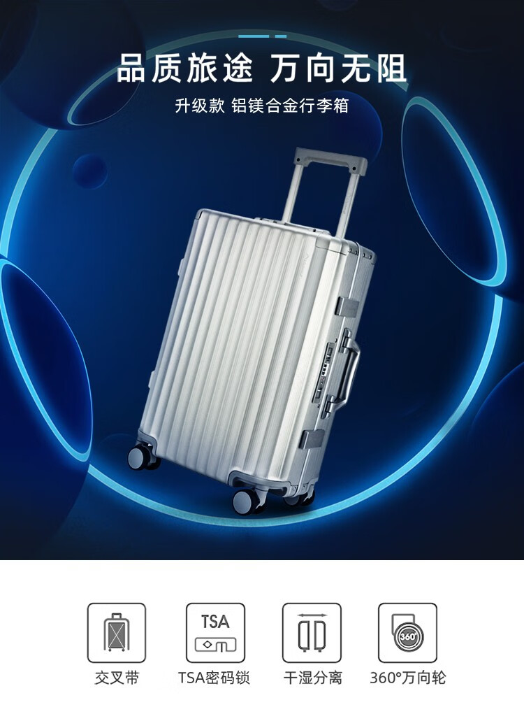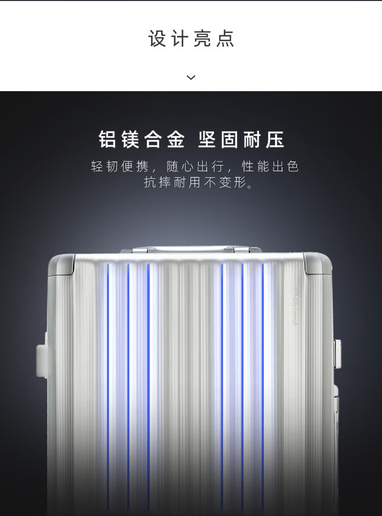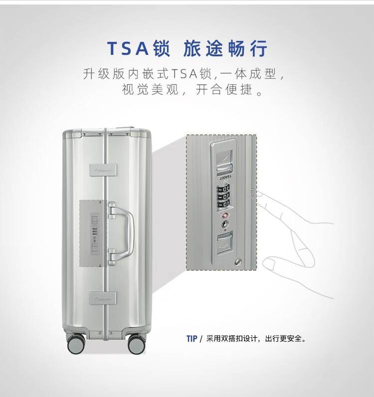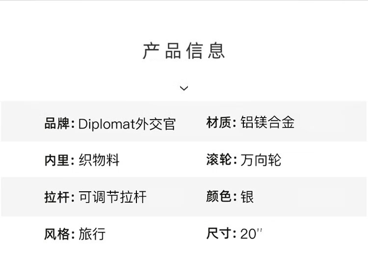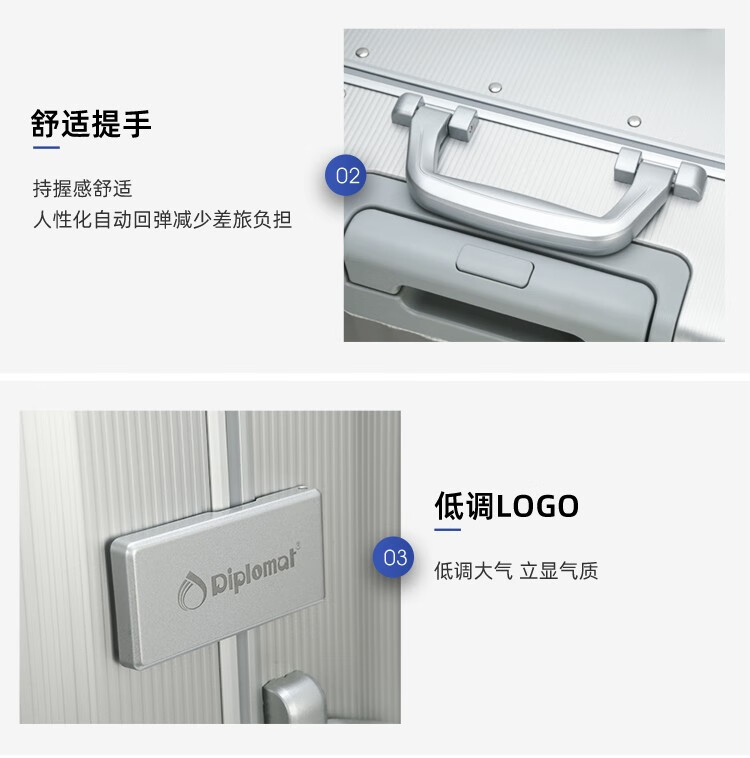 Diplomat外交官 20英寸行李箱时尚镁铝合金铝框男女旅行拉杆箱TL-25052/个 银色 20寸