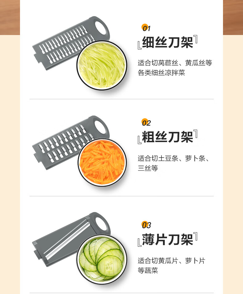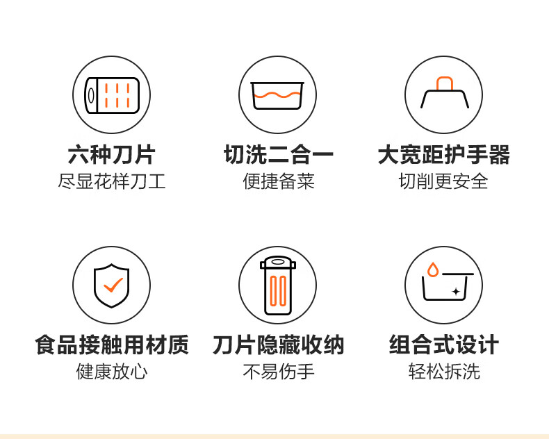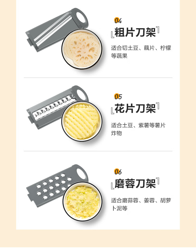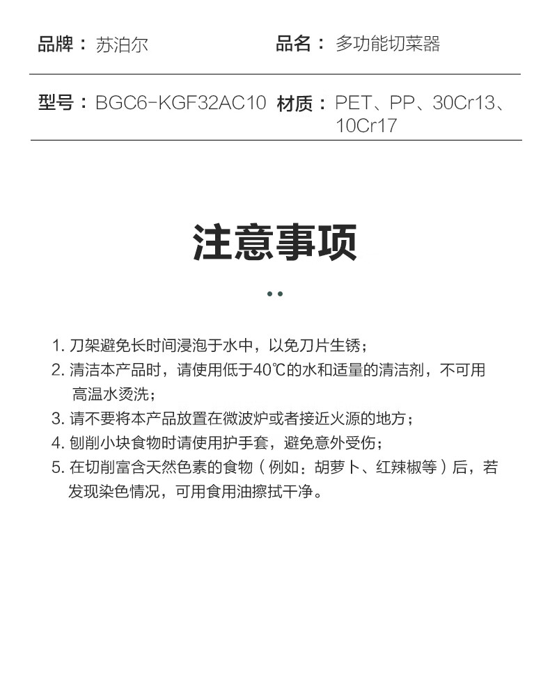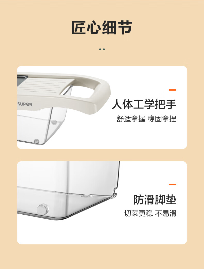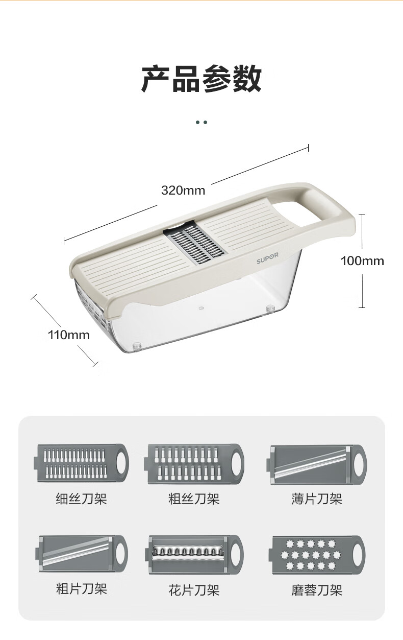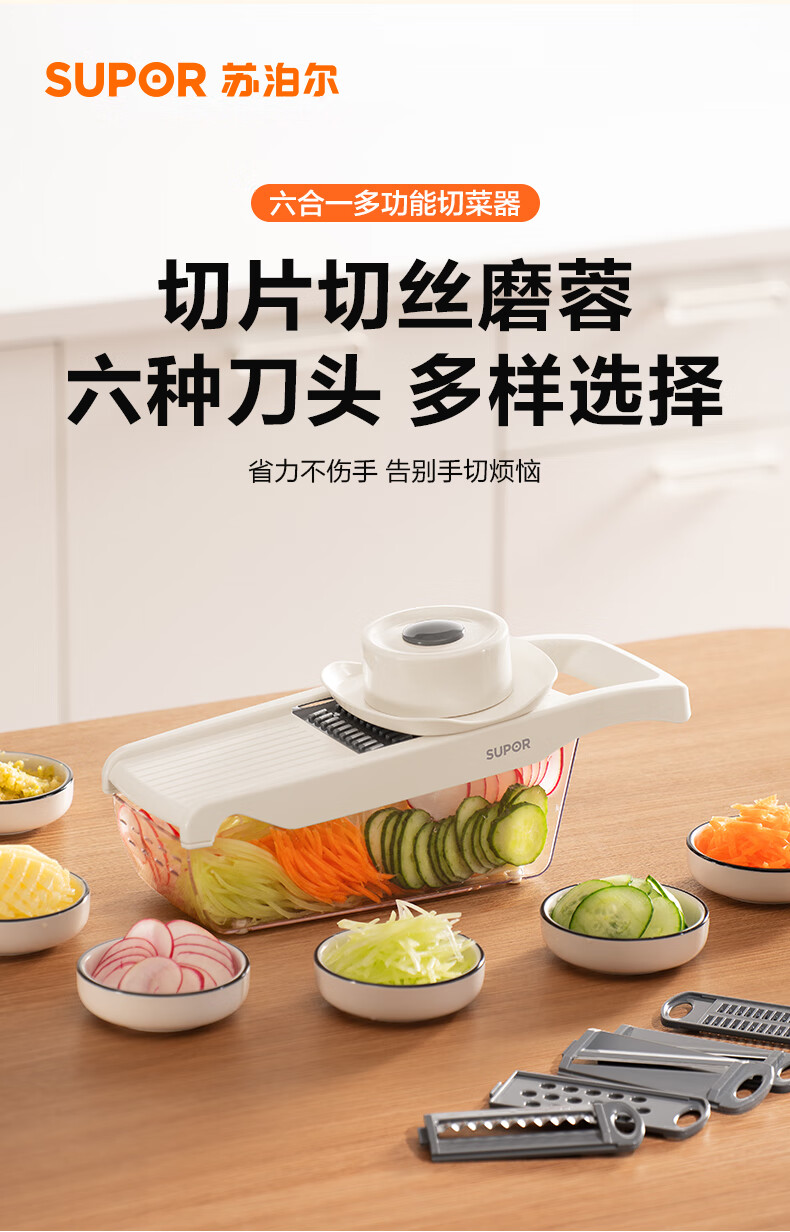 苏泊尔(SUPOR)多功能切菜器六合一刨丝器切片器擦丝器 KGF32AC10(单位:个) 本白色