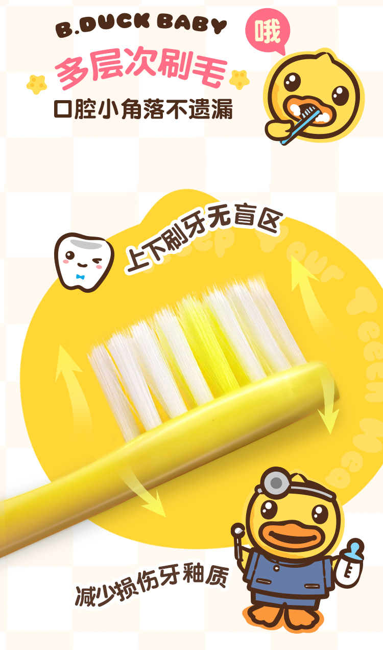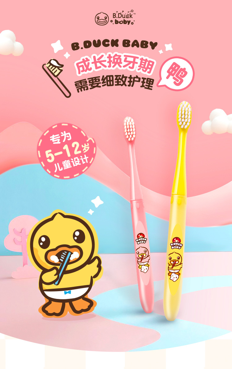 B.Duck Baby小黄鸭 5-12岁儿童牙刷(颜色随机) 黄色