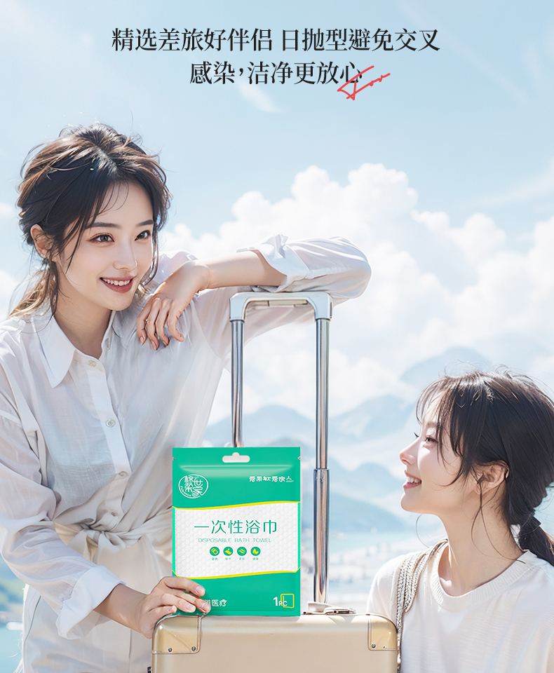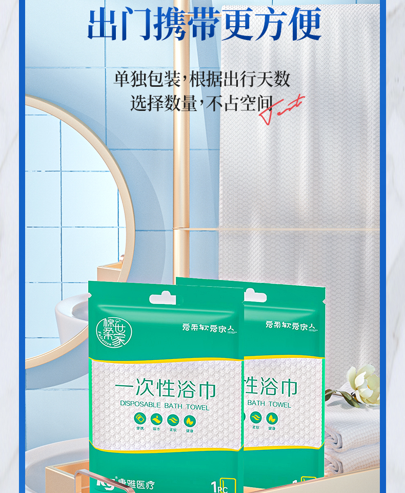棉柔世家一次性浴巾 出差旅行必备用品大号加厚便携游泳珍珠纹浴巾毛巾【70*140cm 】6包 绮境森林