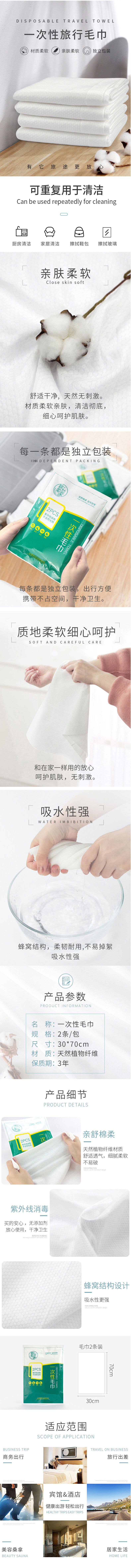 棉柔世家(FulCotton)一次性旅行装毛巾 便携棉柔加厚洗澡毛巾酒店用品一次性毛巾2条/包*4包 雾雨绿