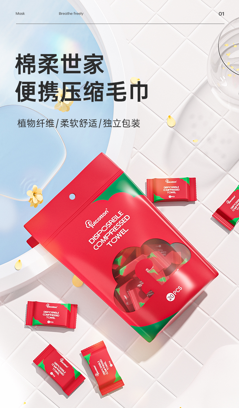 棉柔世家一次性压缩洗脸毛巾 加厚旅行便携洗脸巾美容洁面巾酒店浴巾3包【21*30cm】装60粒 红色