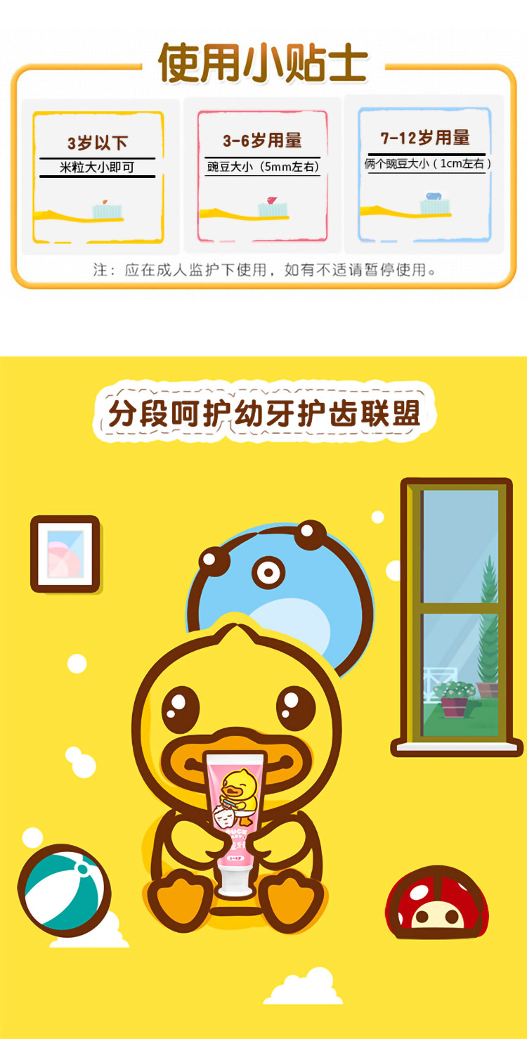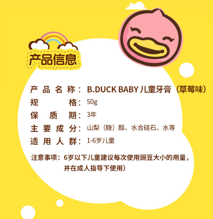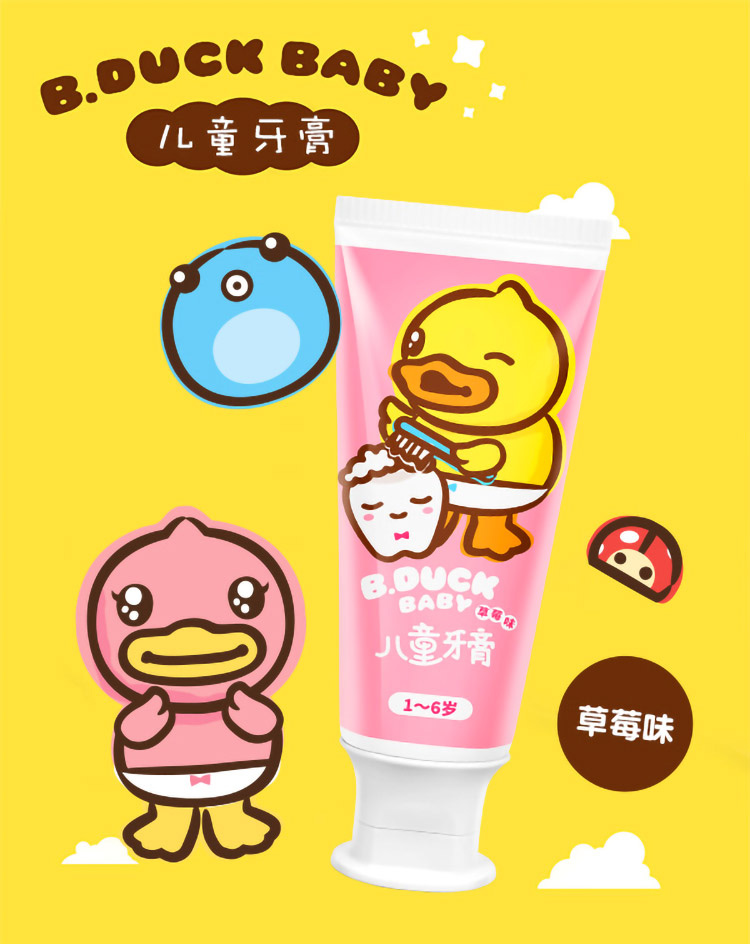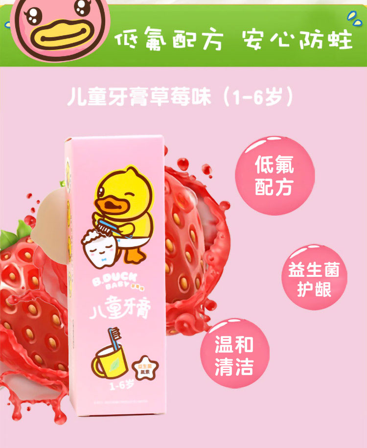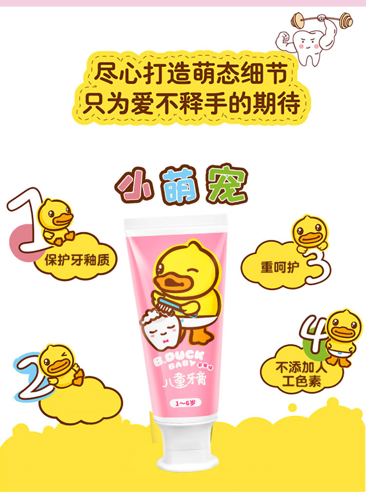 B.Duck Baby小黄鸭 1-6岁 儿童牙膏草莓味 粉色