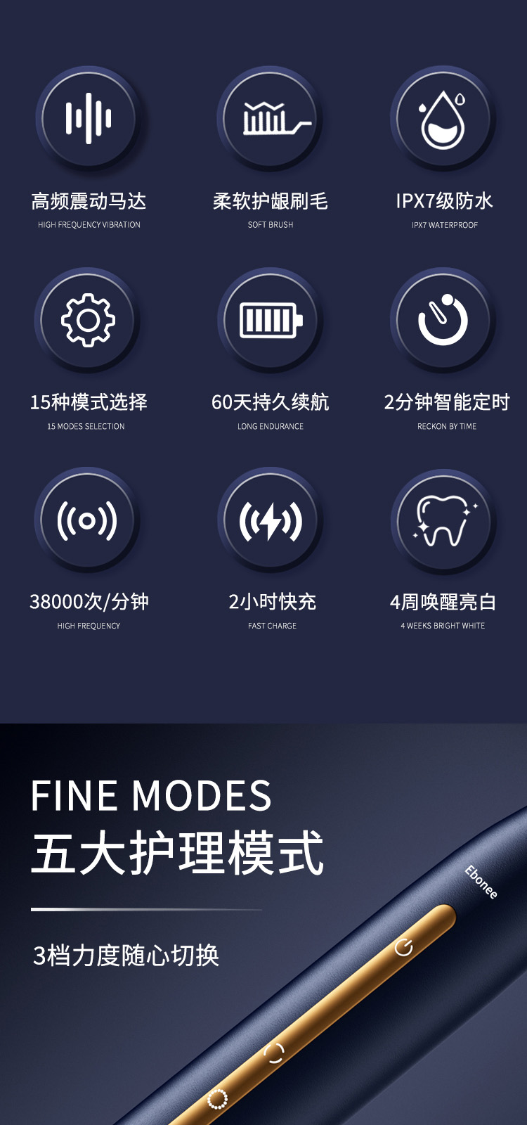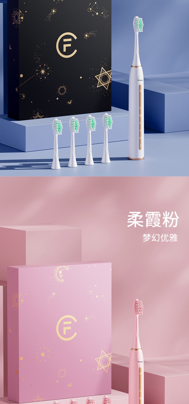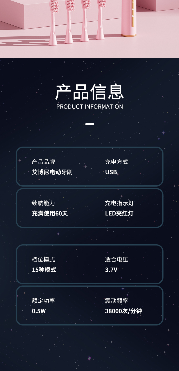 艾博尼成人电动牙刷F1系列高效清洁(单位:盒) 粉色
