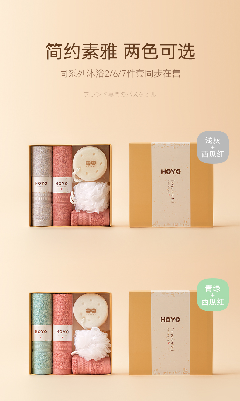 HOYO--7734--沐浴5件套 浅灰西瓜红JP8702 组合装