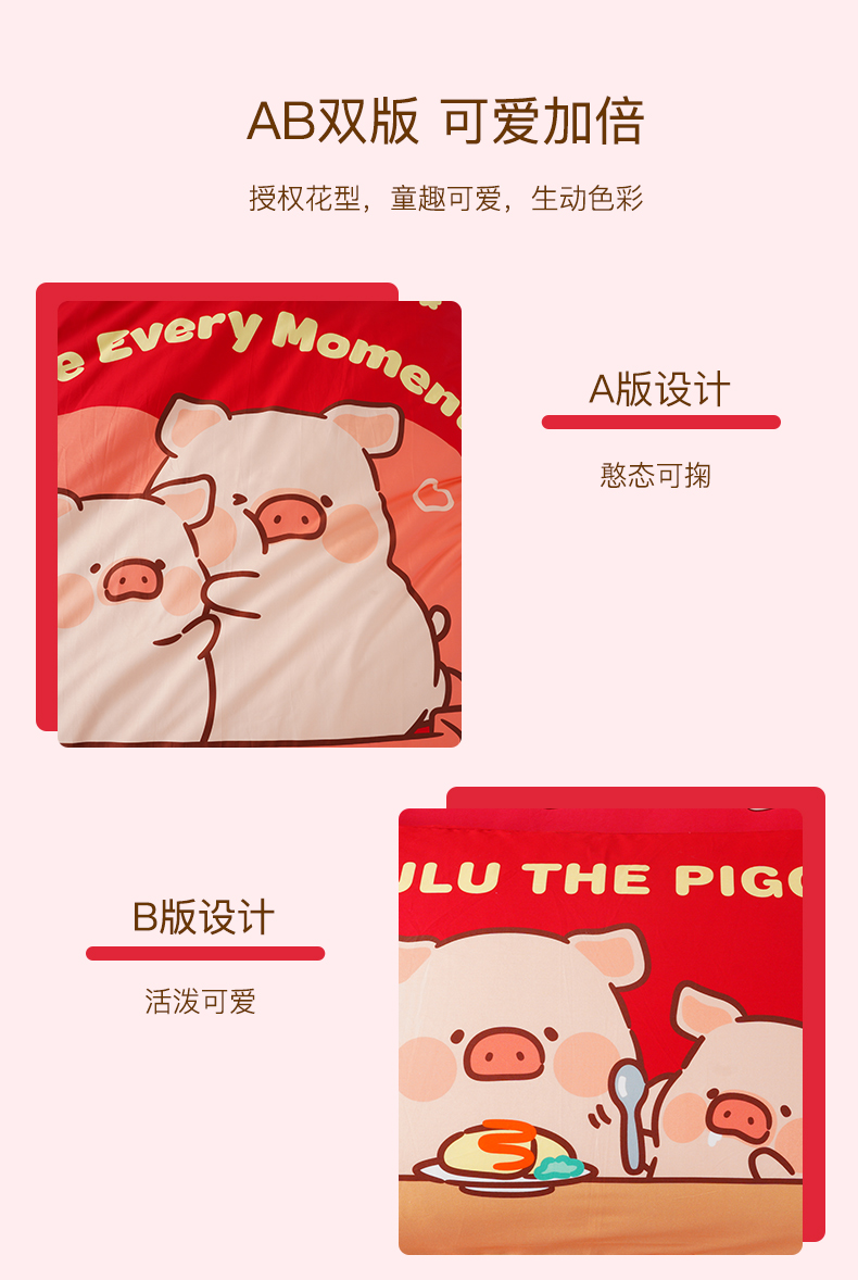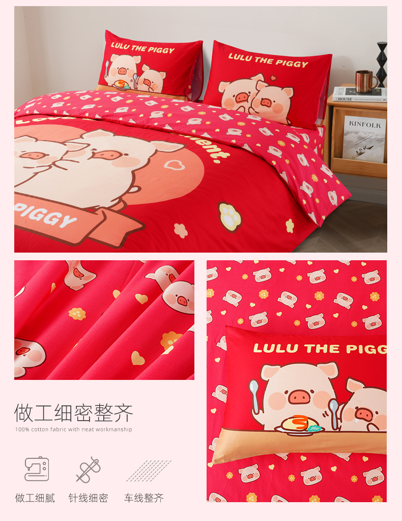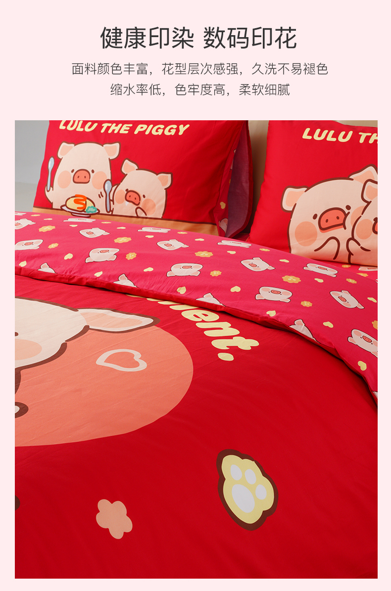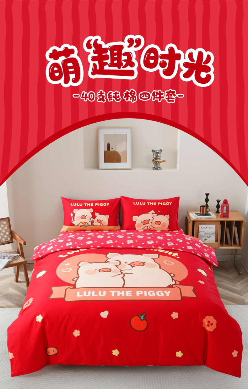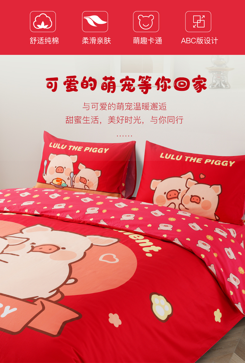 卡撒天娇(CASABLANCA)【LuLu猪IP联名】1.5m床单款四件套(单位/套) 红色 230×235/203×228cm
