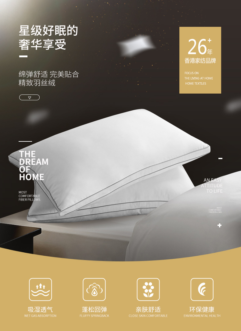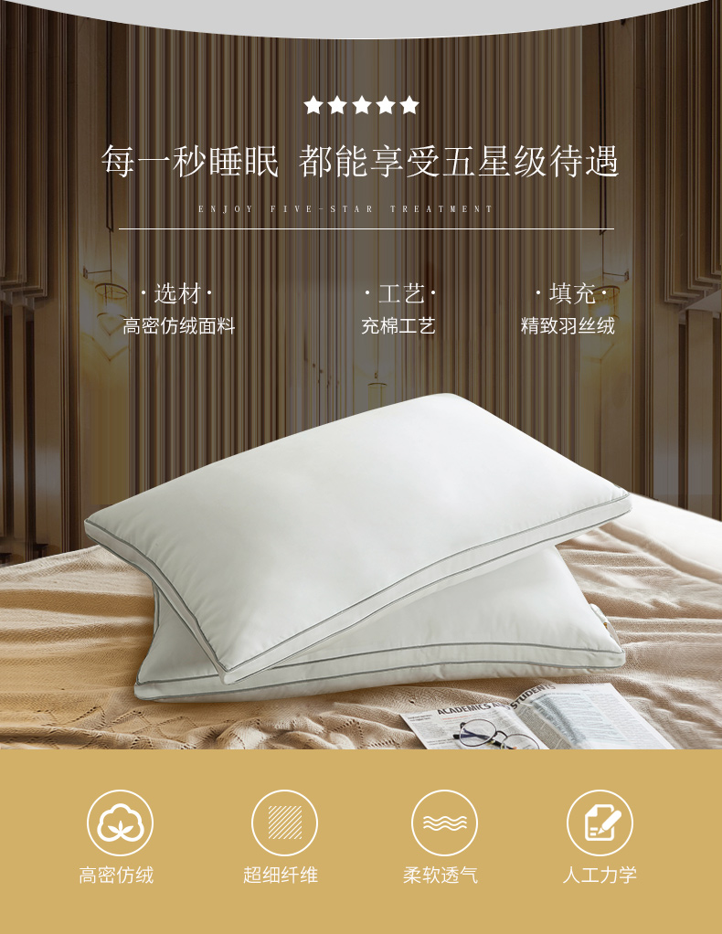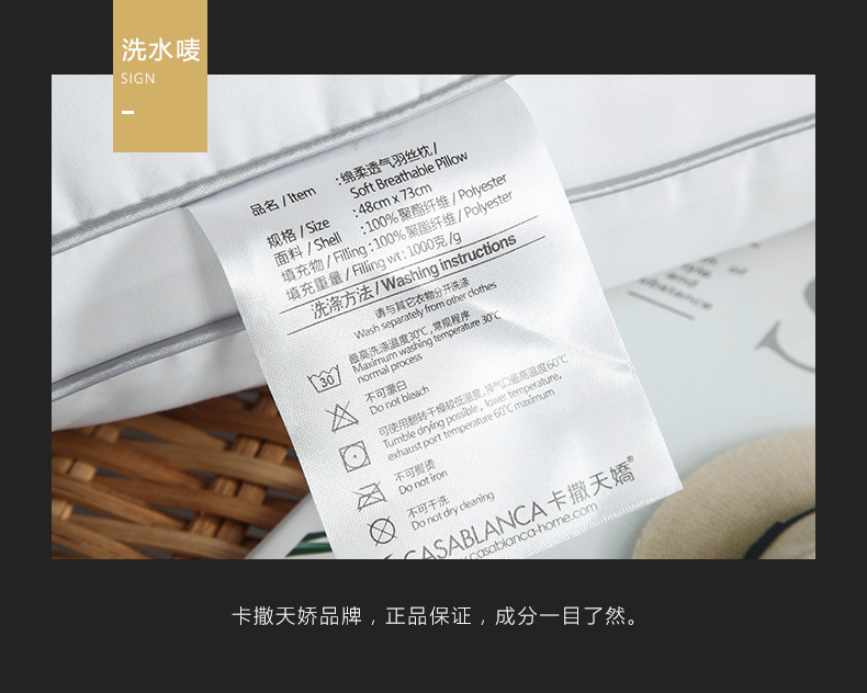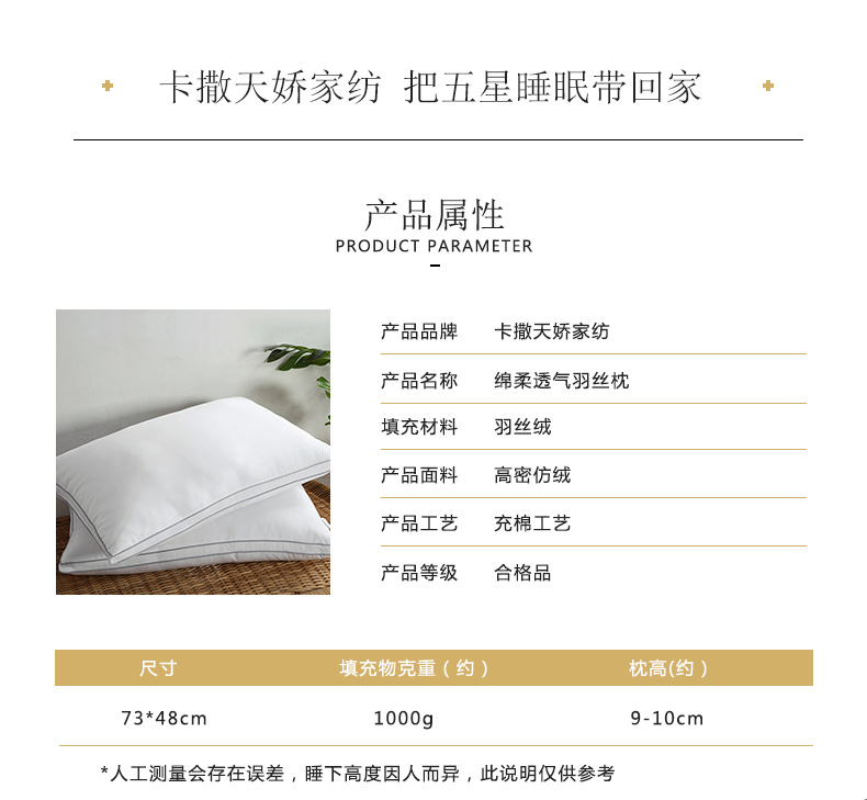 卡撒天娇(CASABLANCA)家纺 舒适绵柔透气羽丝枕48×73cm(单位/个) 白色 白色