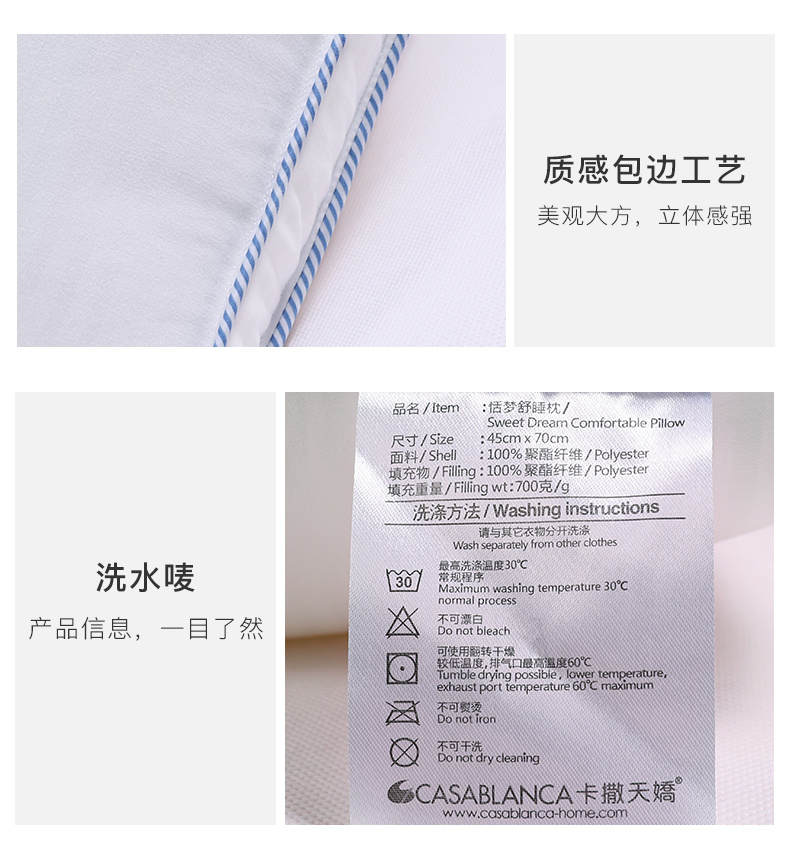 卡撒天娇(CASABLANCA)家纺 柔软羽丝绒恬梦舒睡枕45×70cm(单位/个) 白色 白色