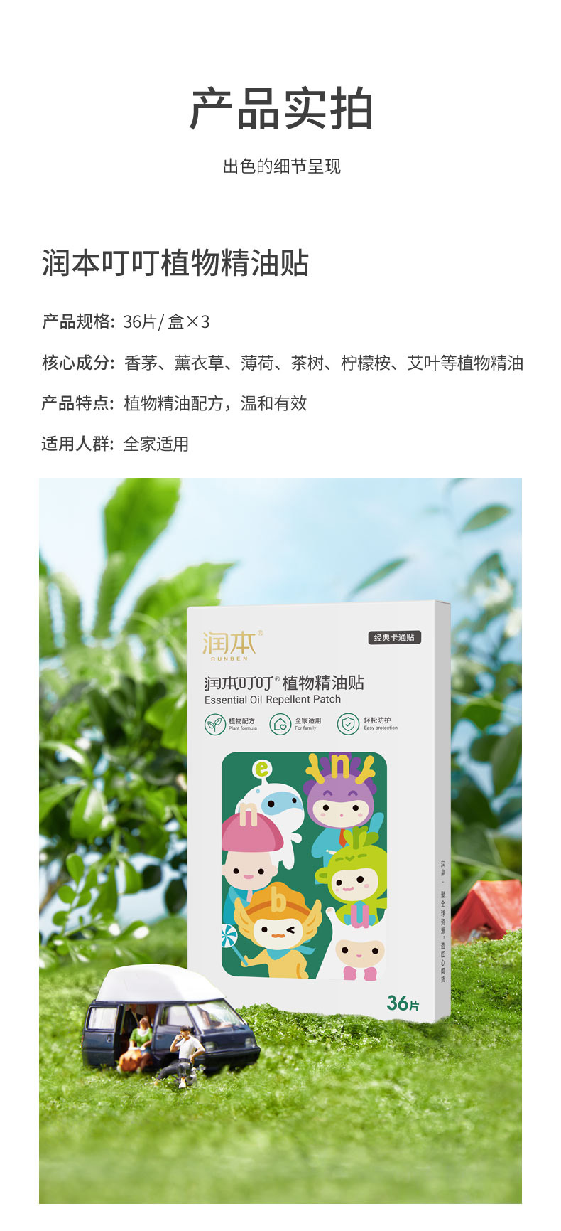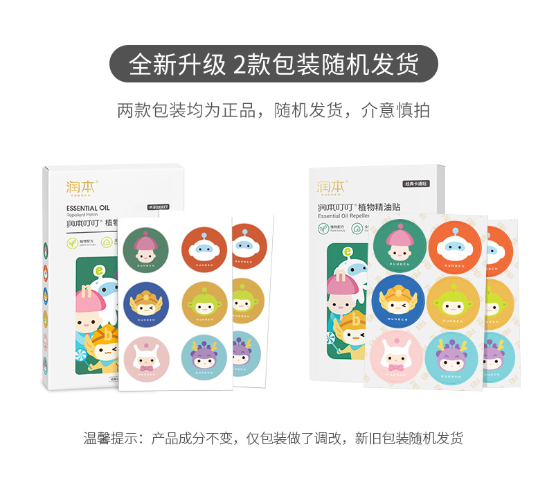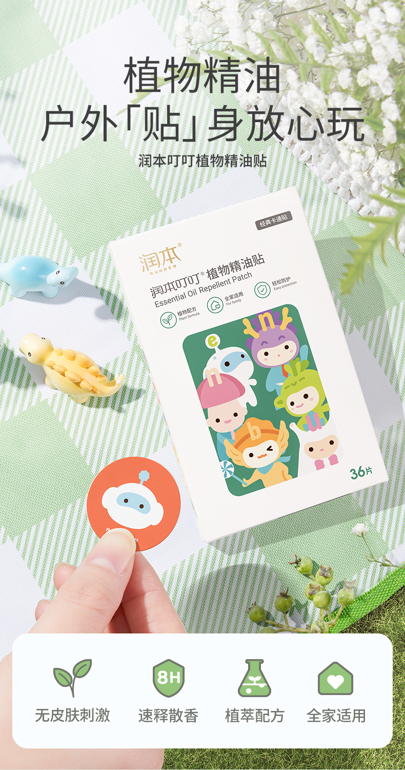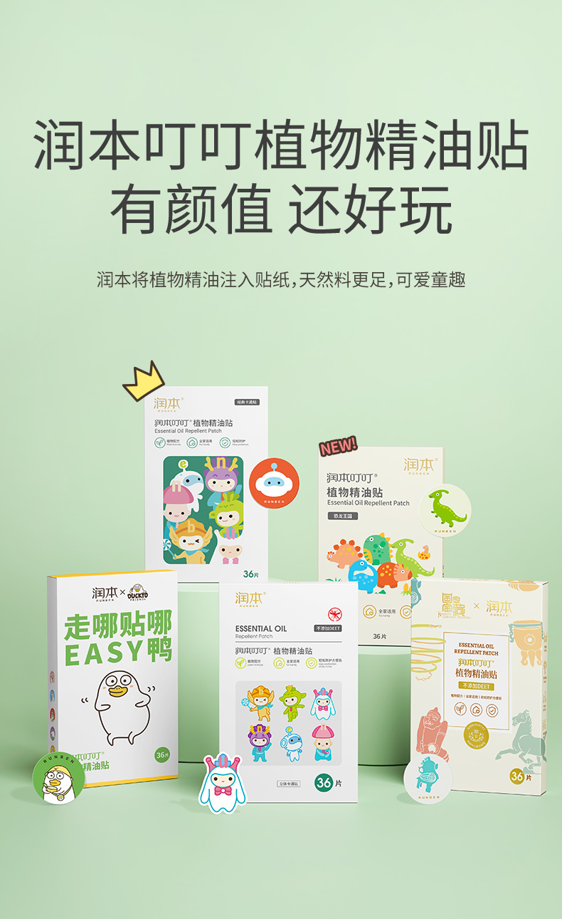 润本(RUNBEN)叮叮植物精油贴 经典卡通贴36片装*3 白色