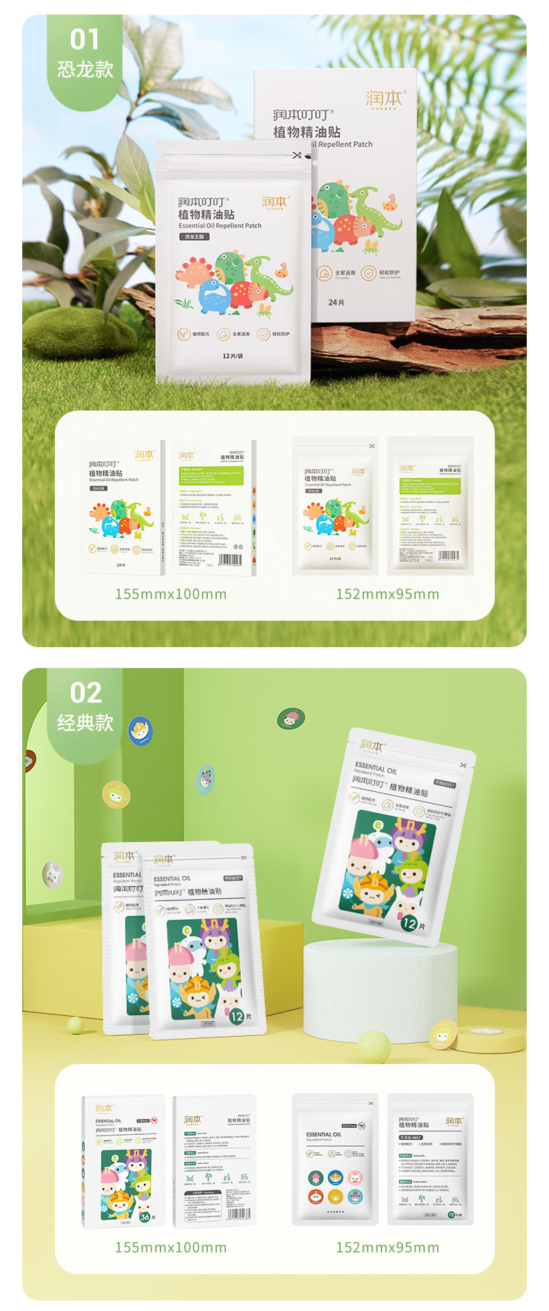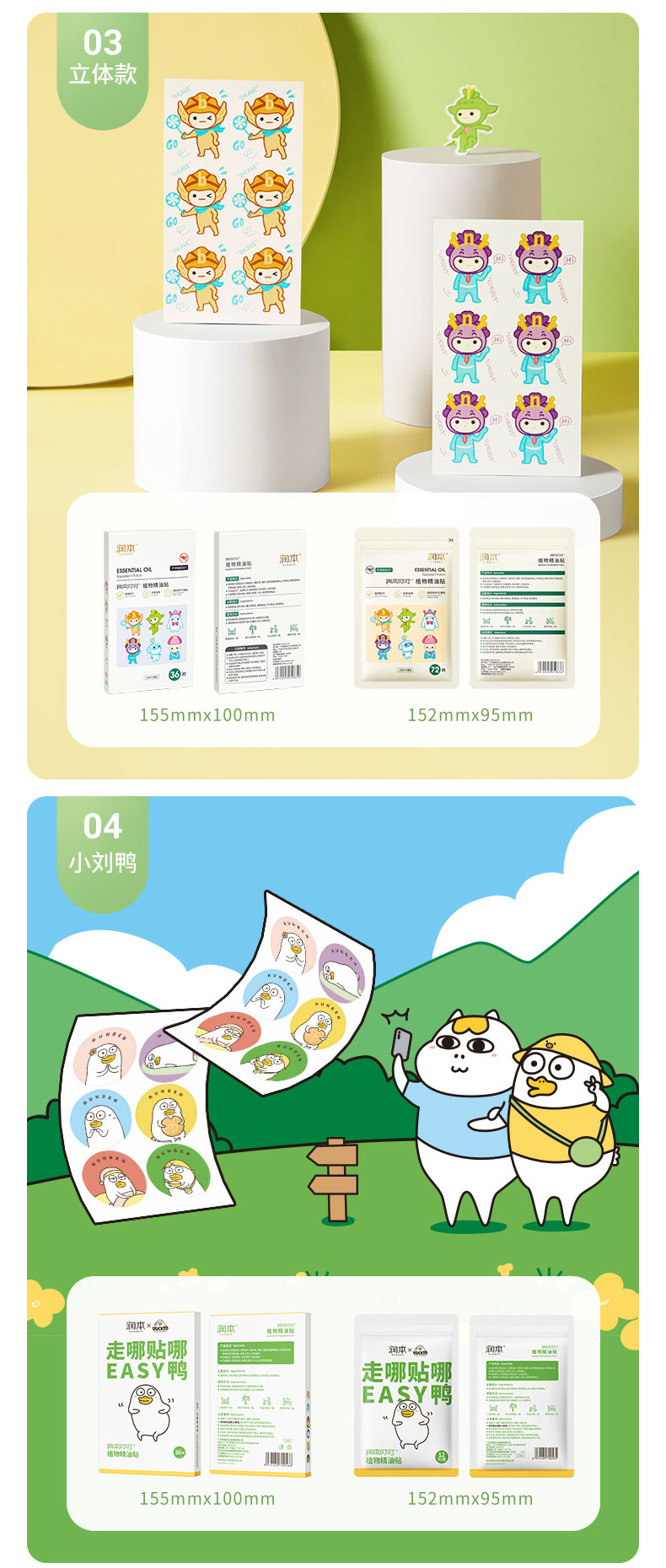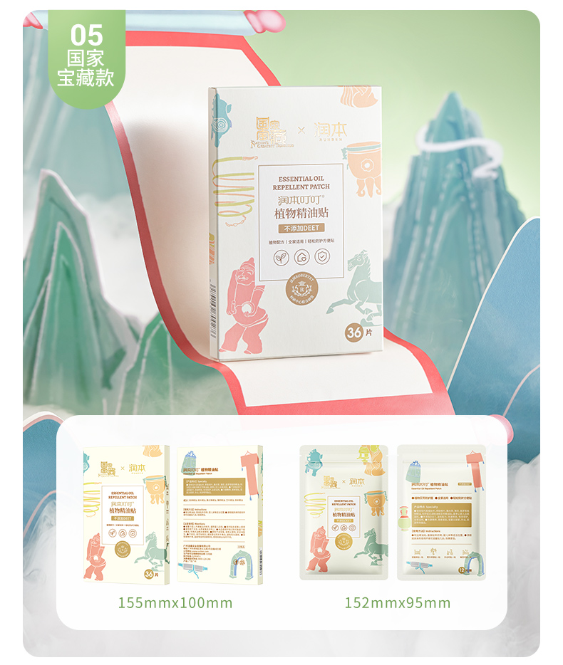 润本(RUNBEN)叮叮植物精油贴 经典卡通贴36片装*3 白色