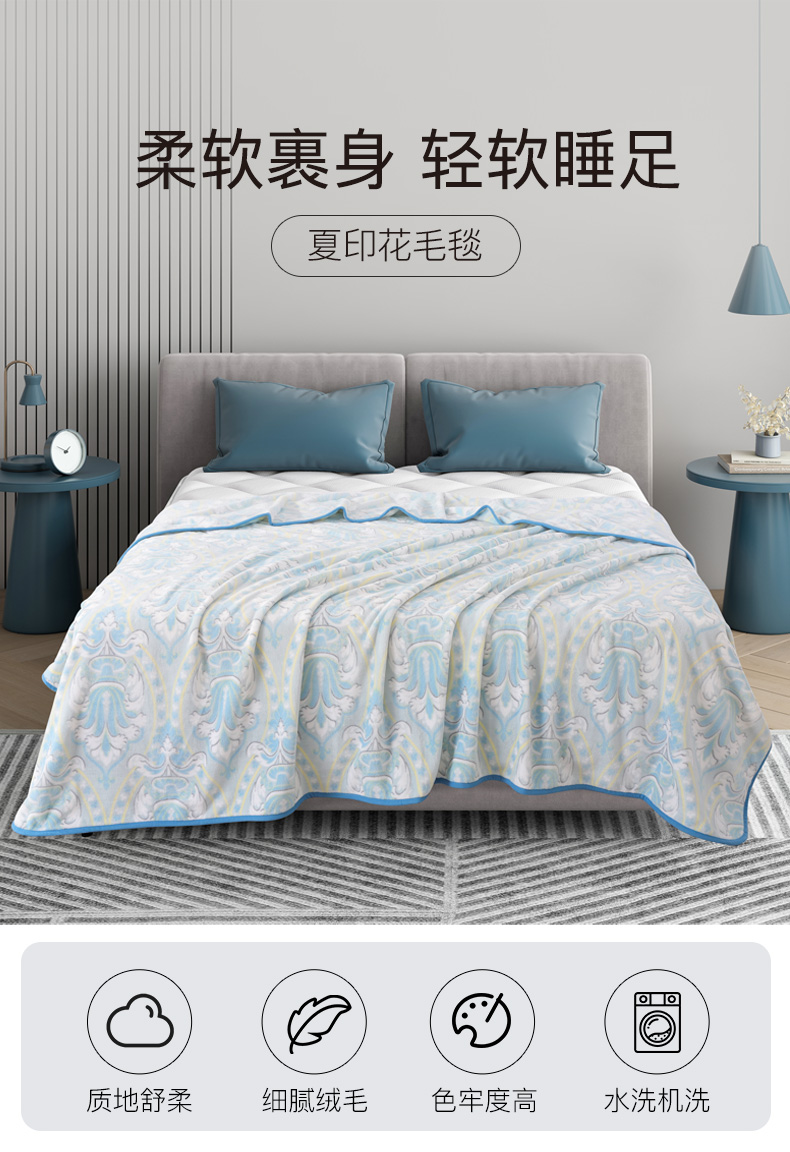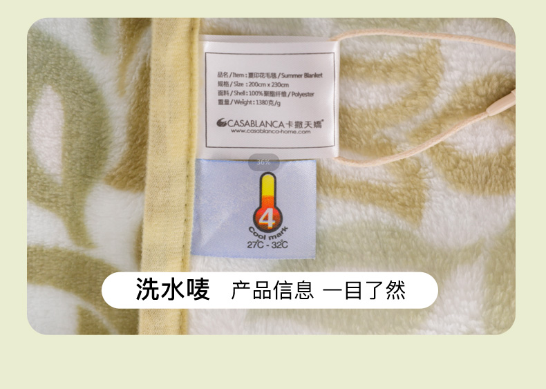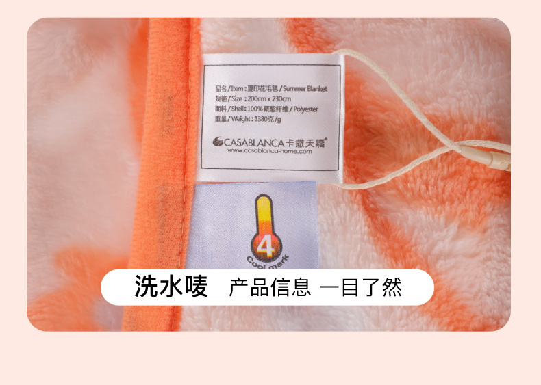 卡撒天娇(CASABLANCA)夏印花法兰绒毛毯/200×230cm/1380g(单位/床) 花色 花色