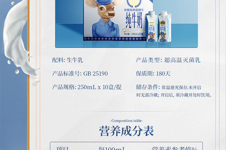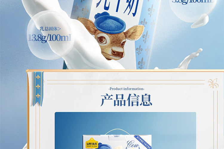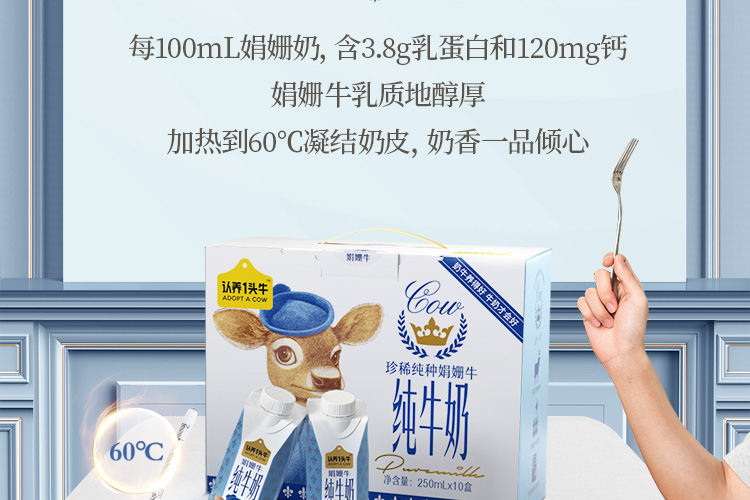 认养一头牛 3.8g优质乳蛋白纯牛奶 娟姗纯牛奶梦幻盖 250ml*10盒 白色(单位:提)