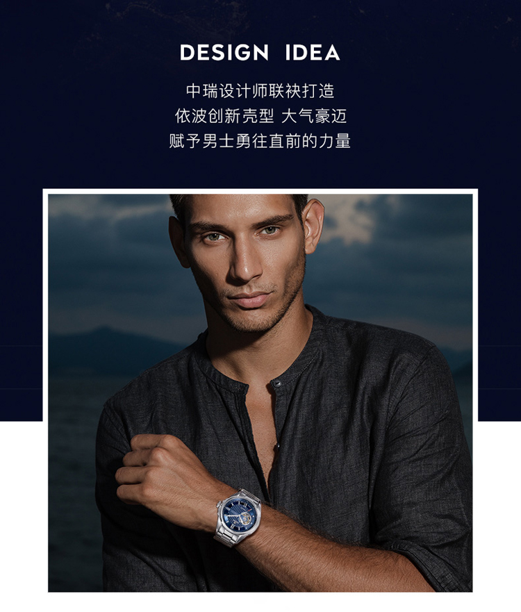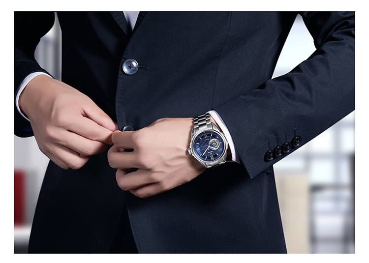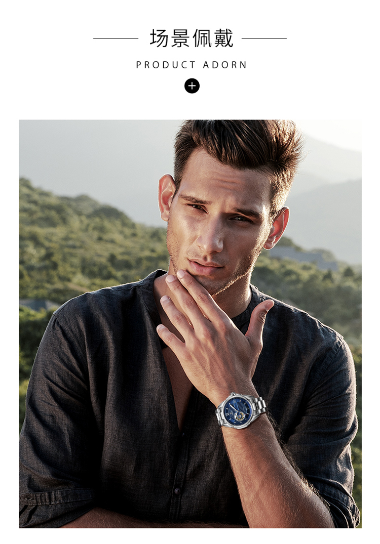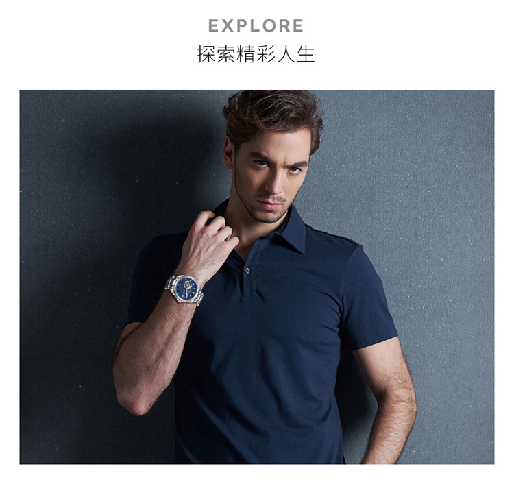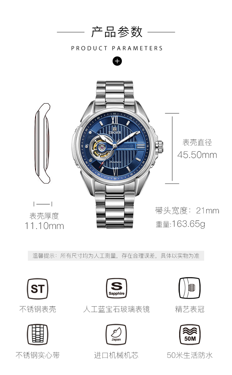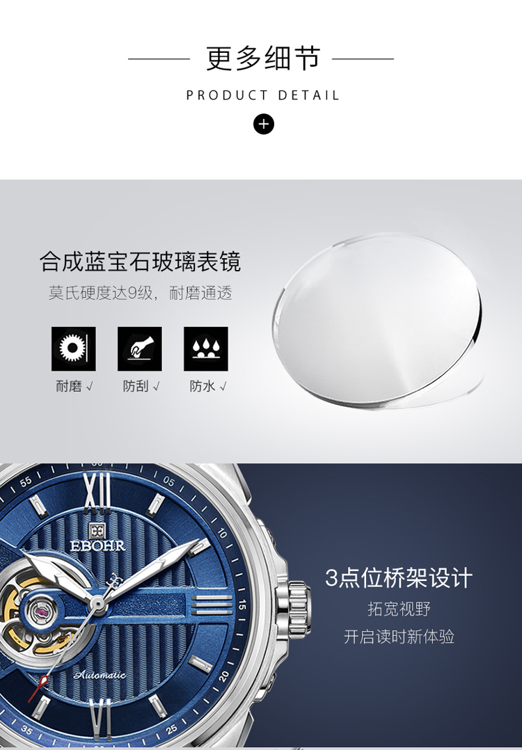 依波(EBOHR) 探索者系列 自动机械手表镂空商务时尚玫金钢带男表17020211(单位1块) 白色