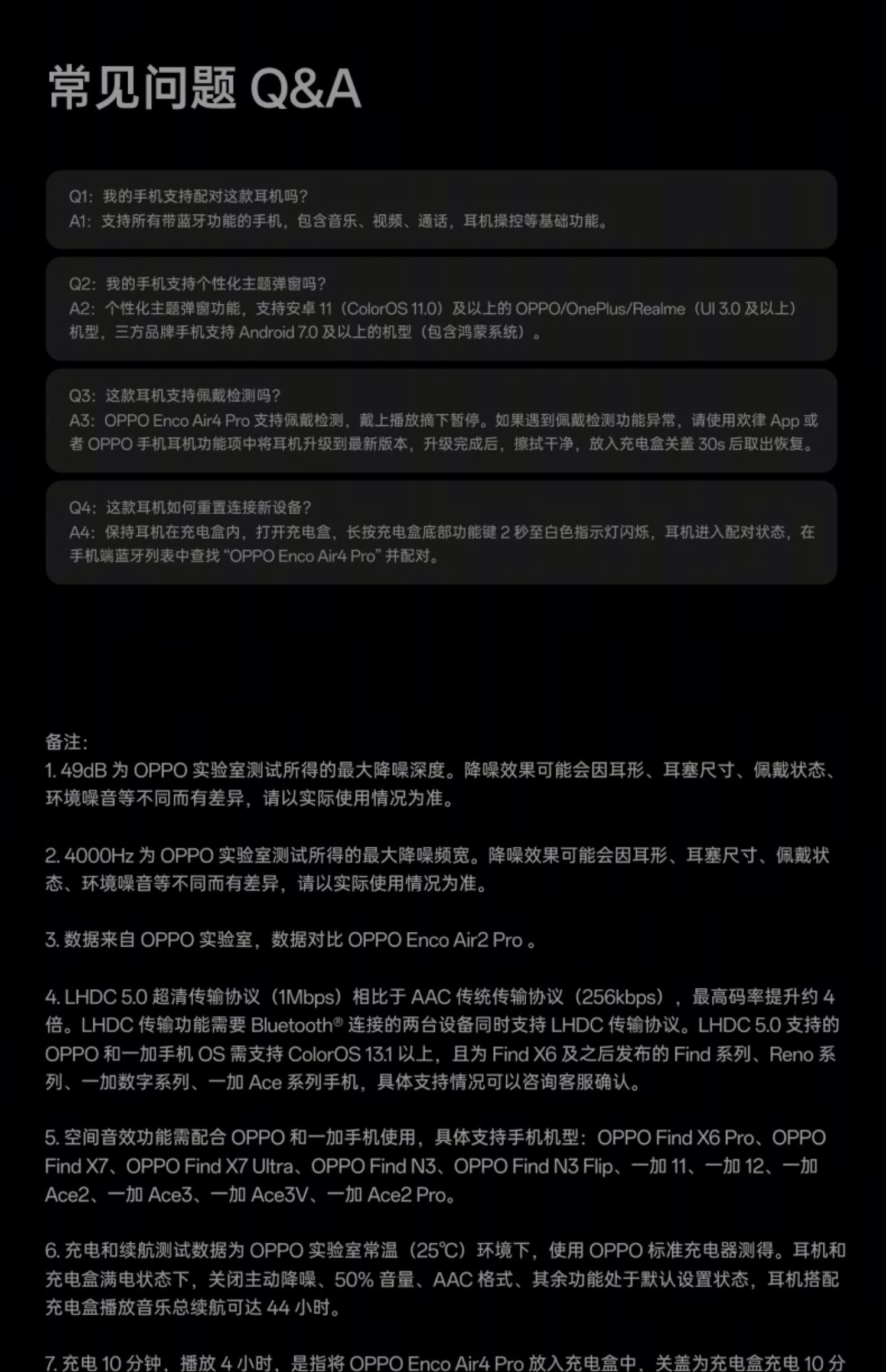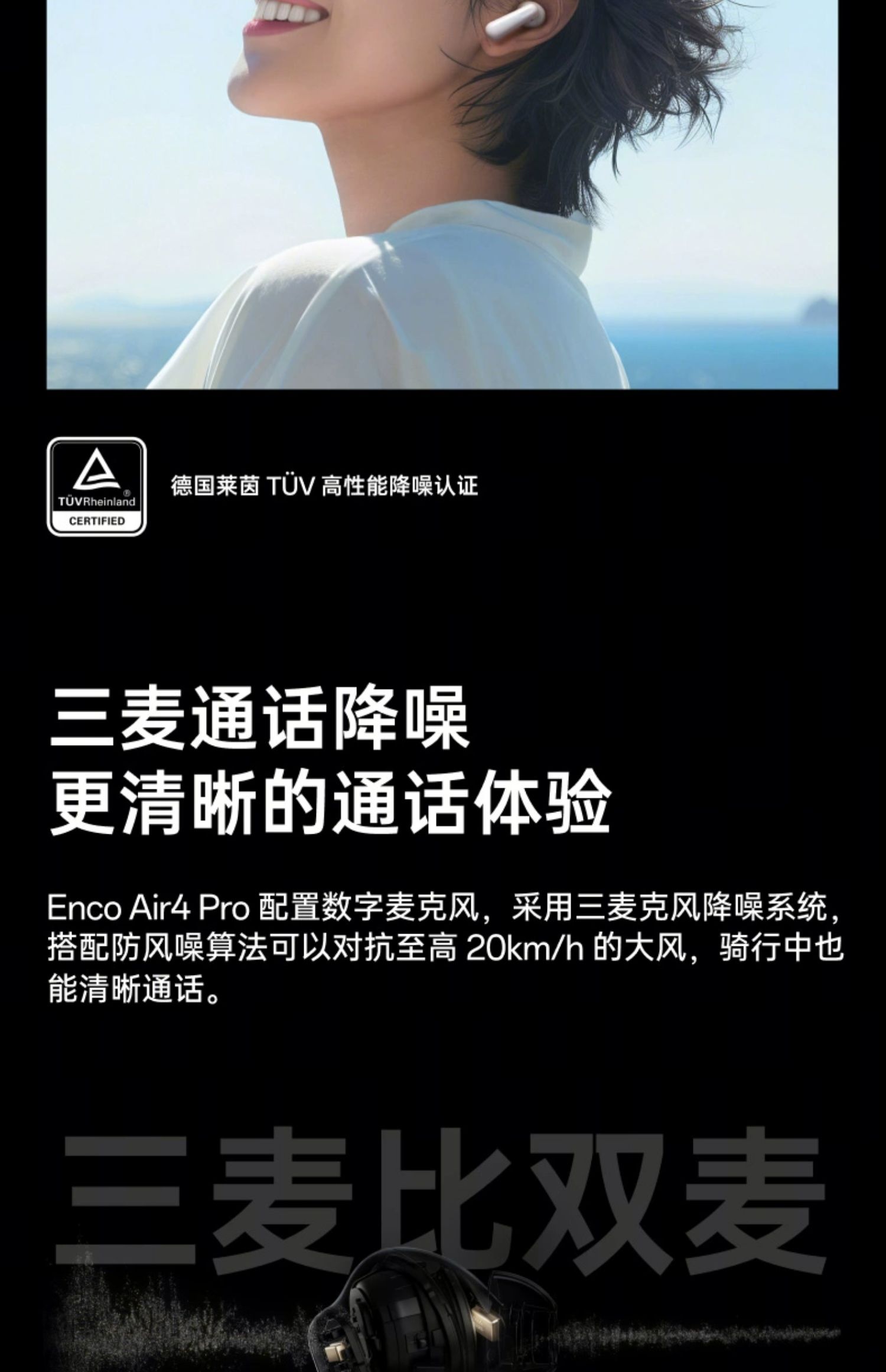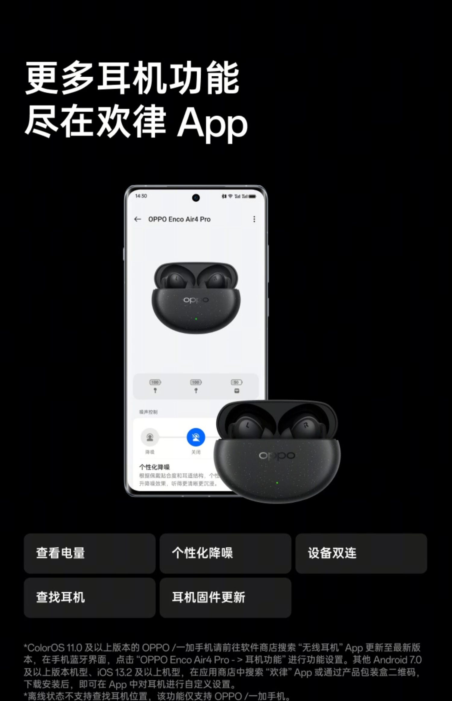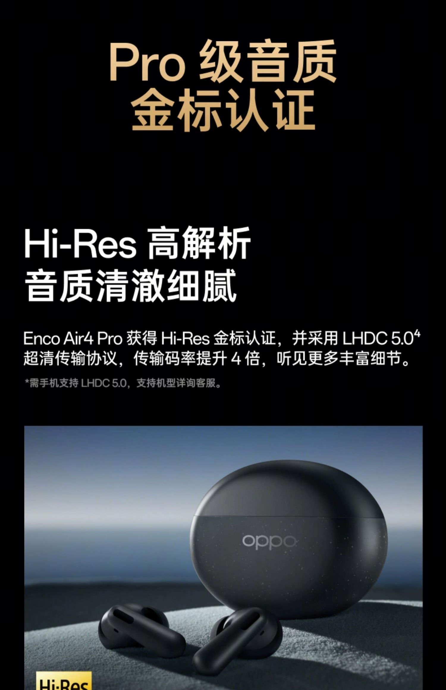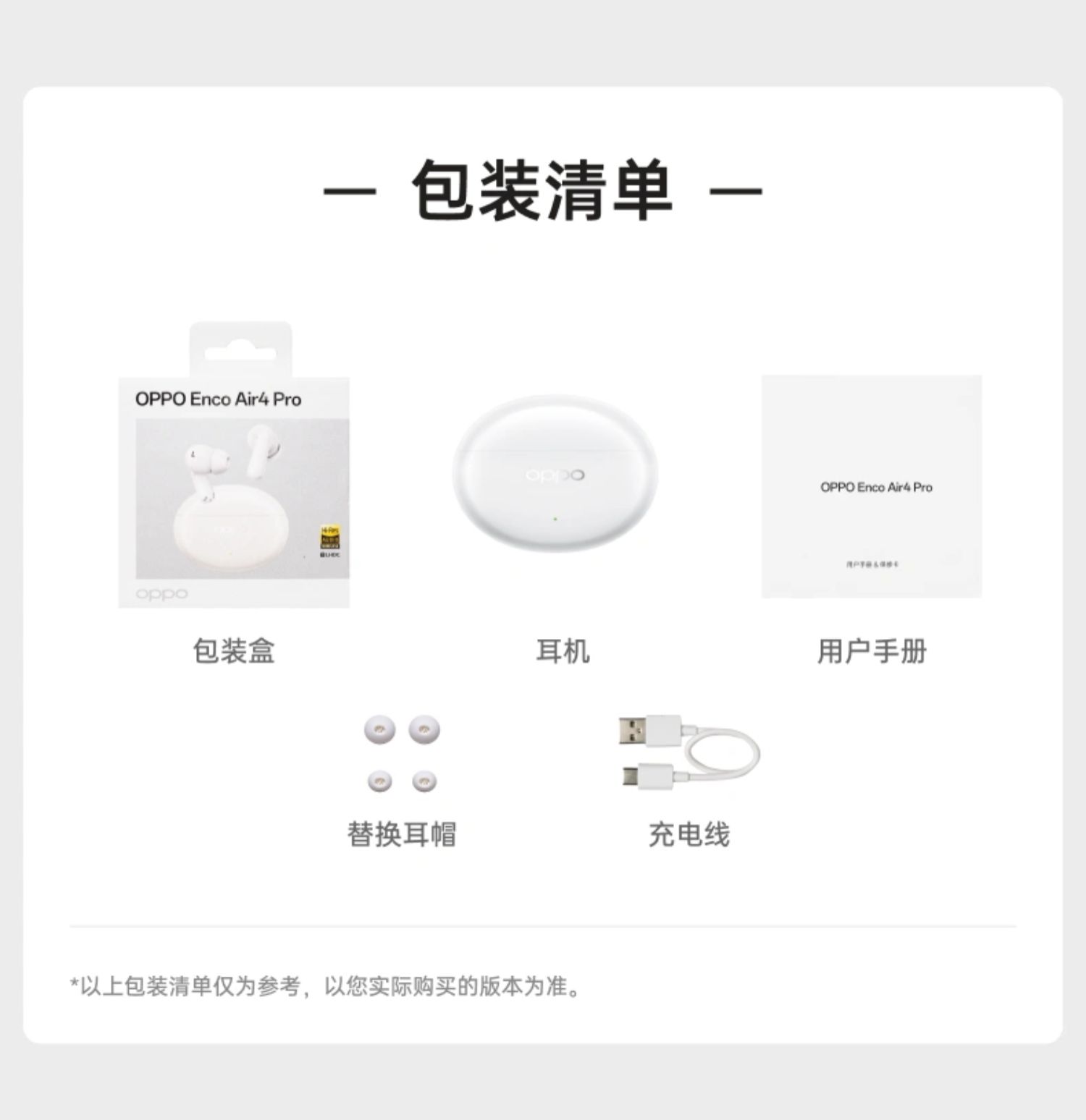OPPO Enco Air4 Pro 真无线降噪蓝牙耳机 入耳式音乐运动跑步游戏耳机(单位:副) 晨曦白