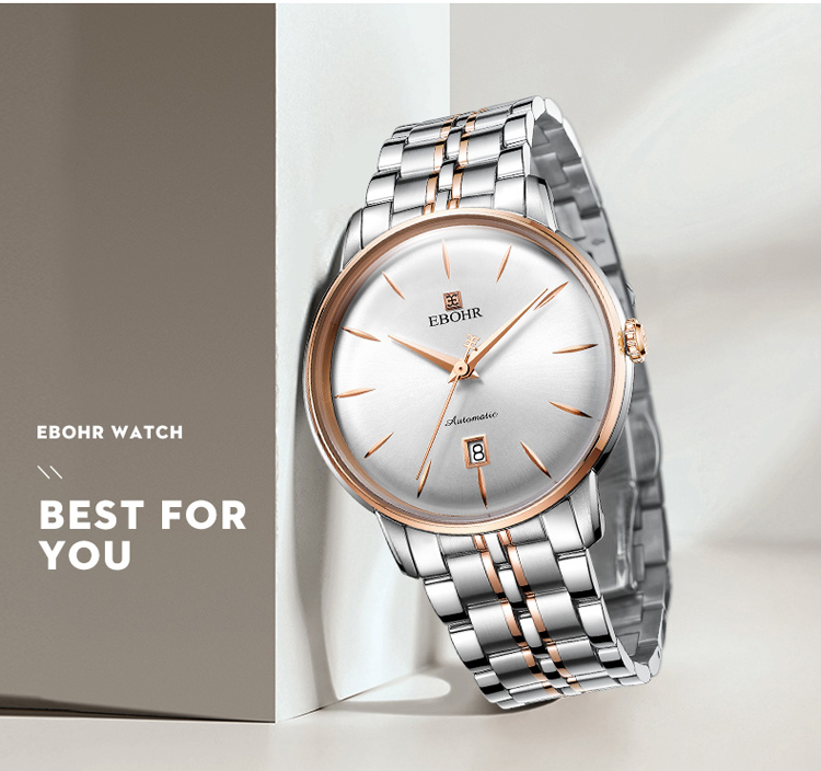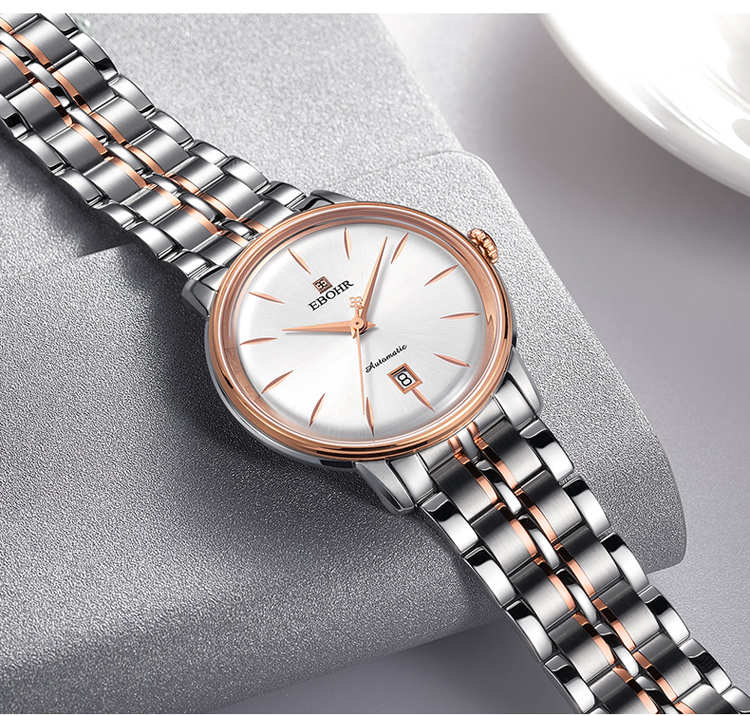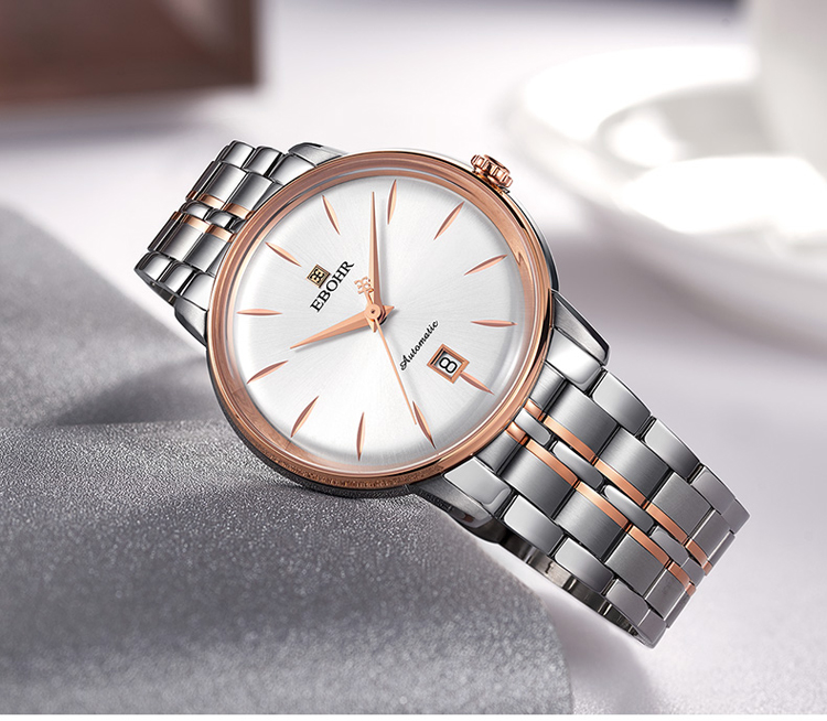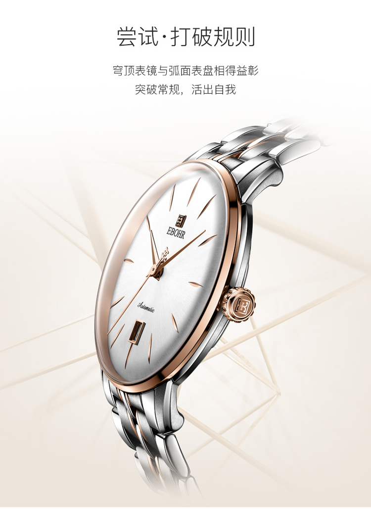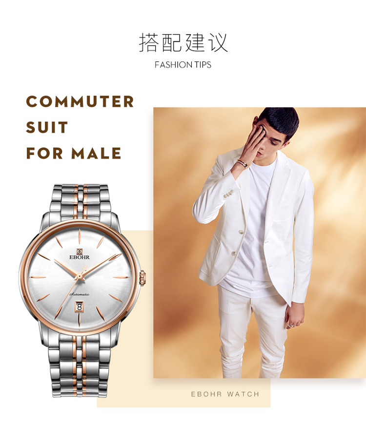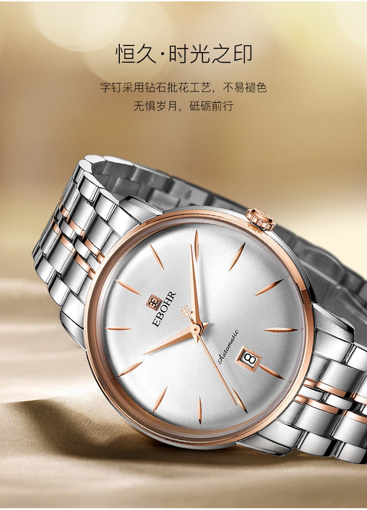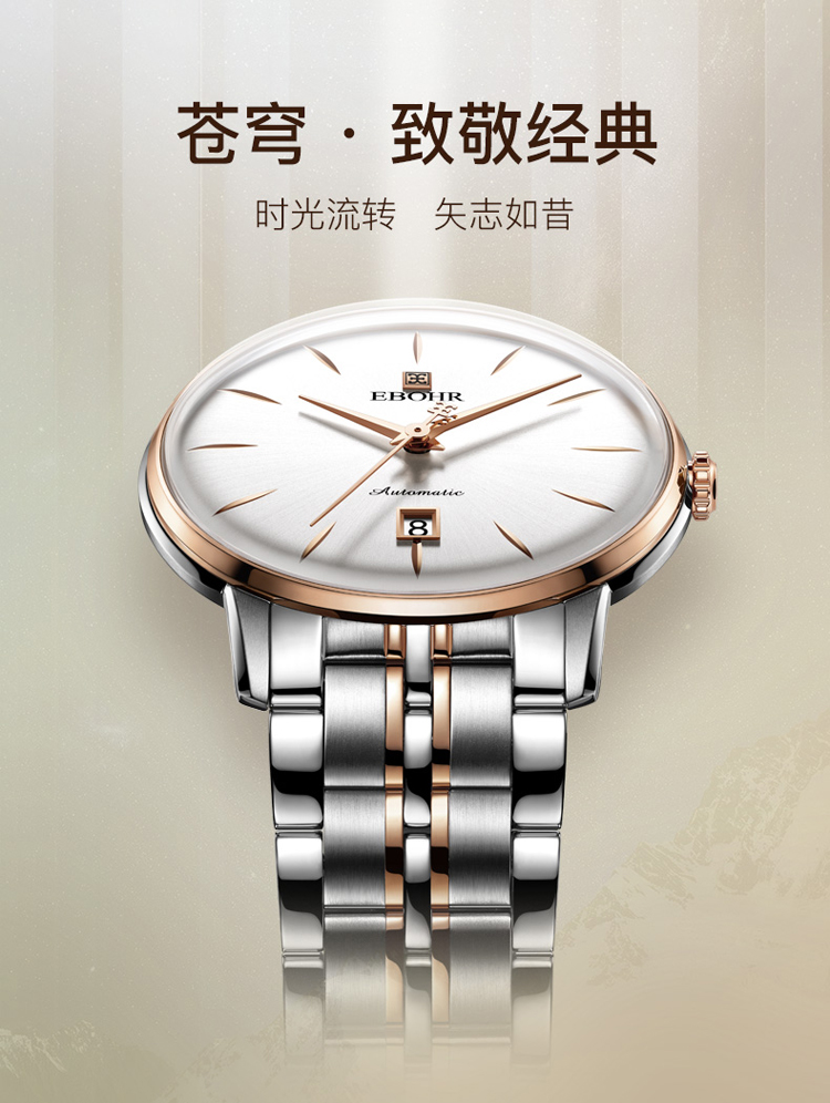 依波(EBOHR) 大师系列 机械手表商务薄形日期显示白盘钢带男表18020112(单位1块) 白色