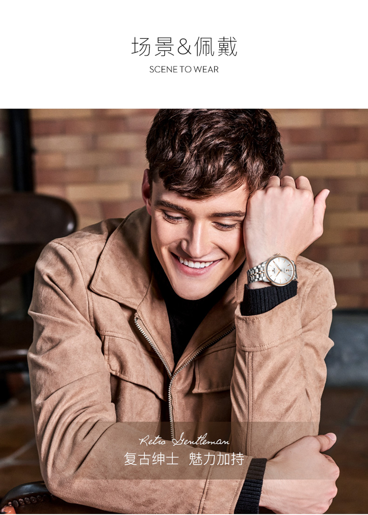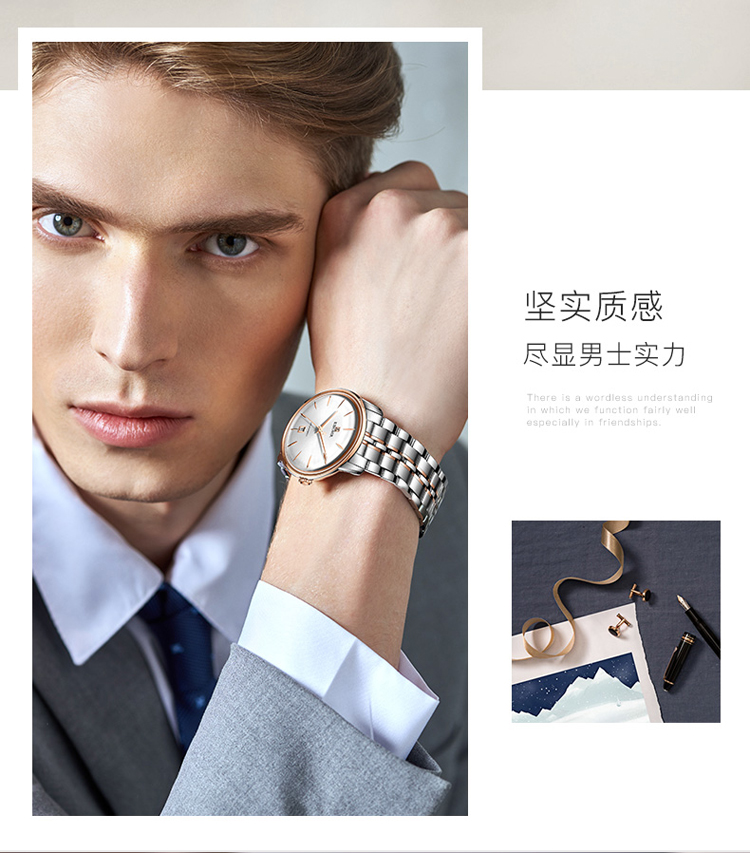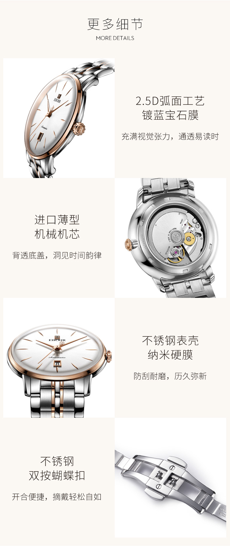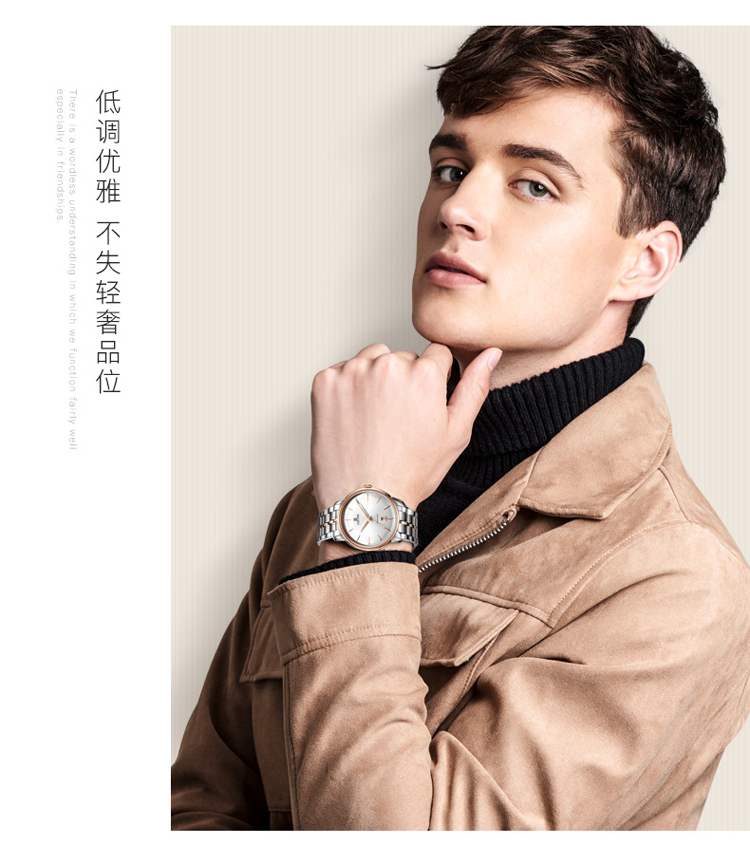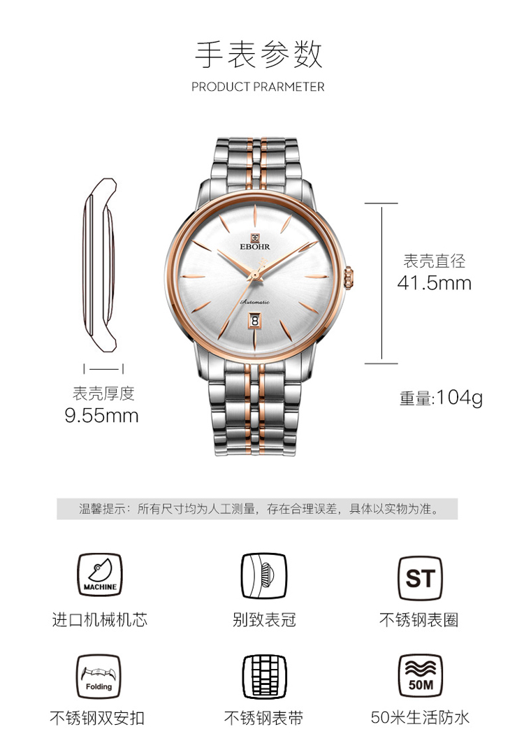 依波(EBOHR) 大师系列 机械手表商务薄形日期显示白盘钢带男表18020112(单位1块) 白色